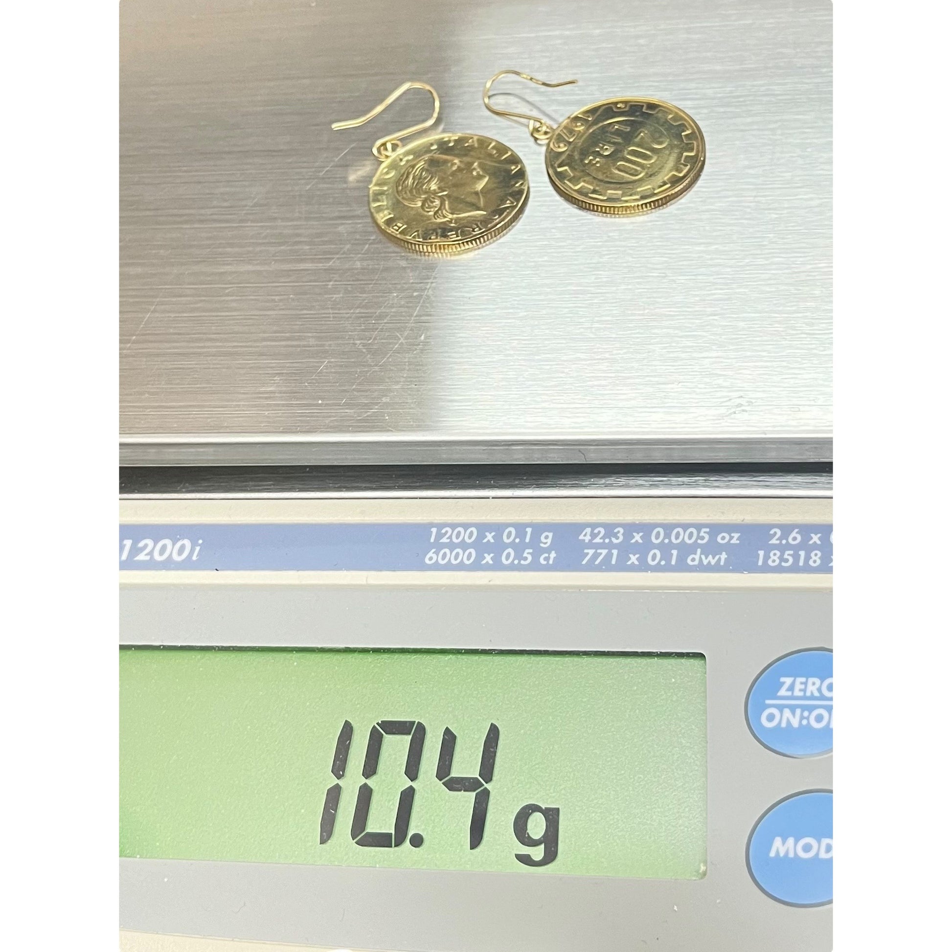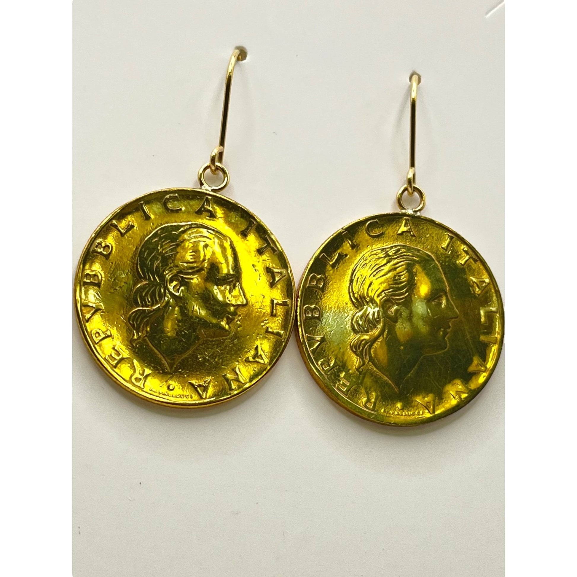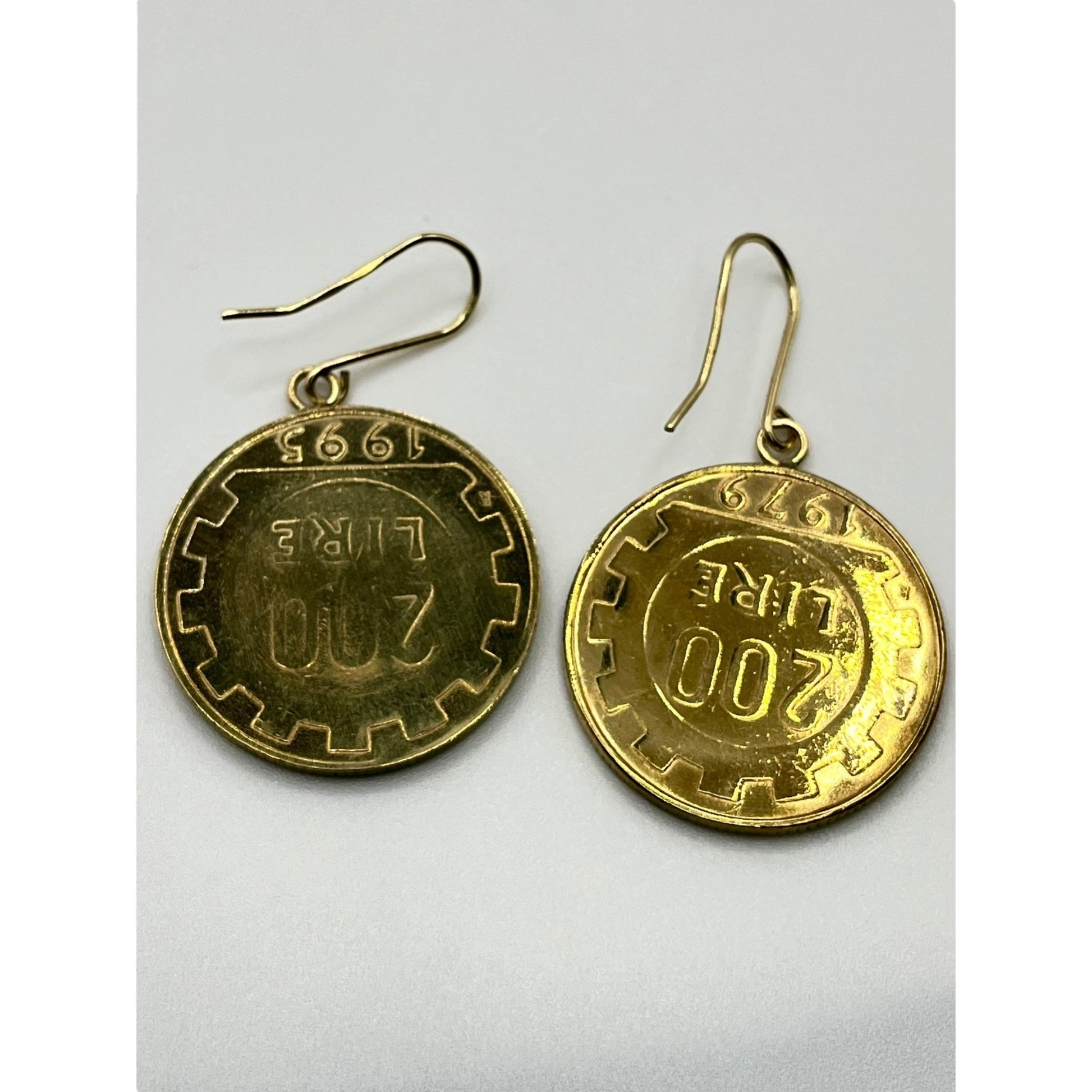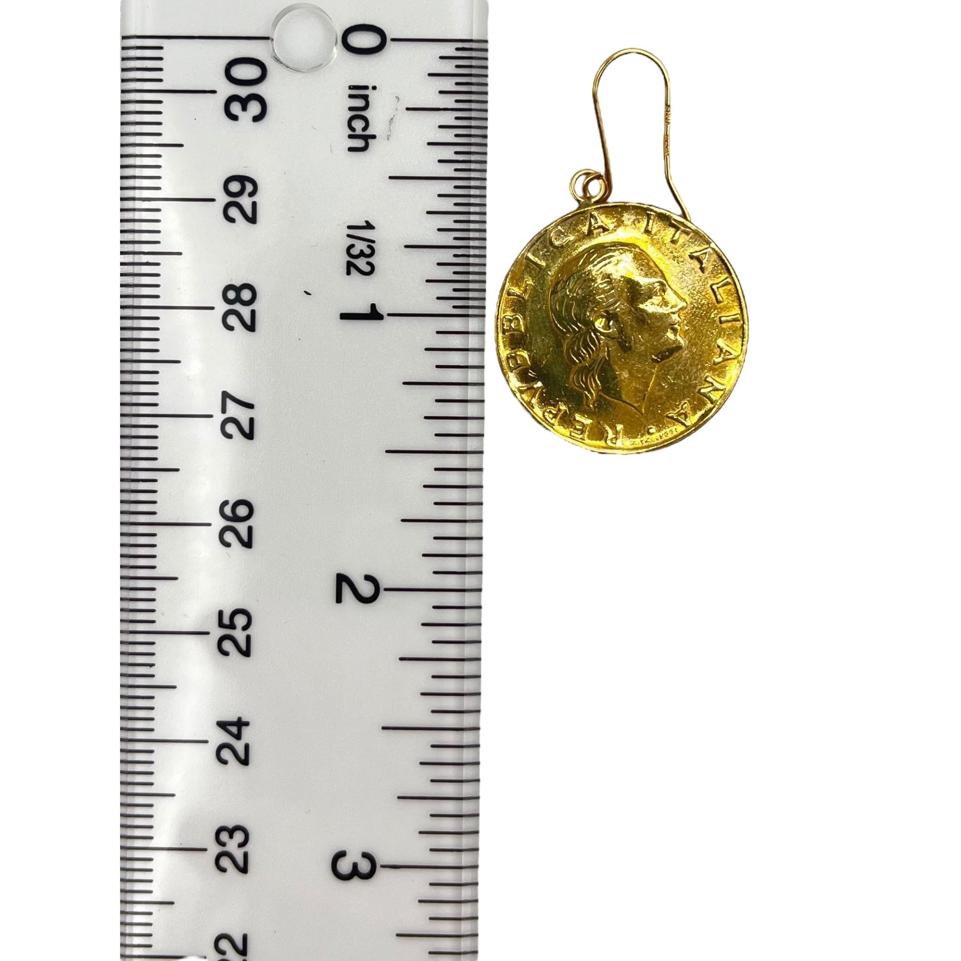 Milor Italy Sterling Gold Vermeil and 18k Gold Hooks Lire Coin Dangle Earrings