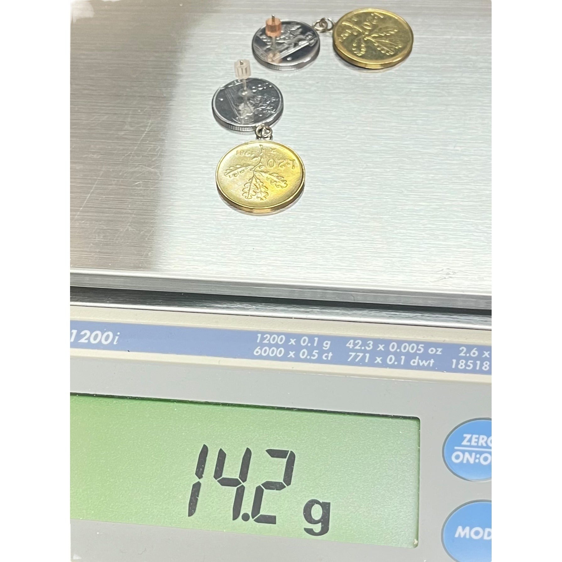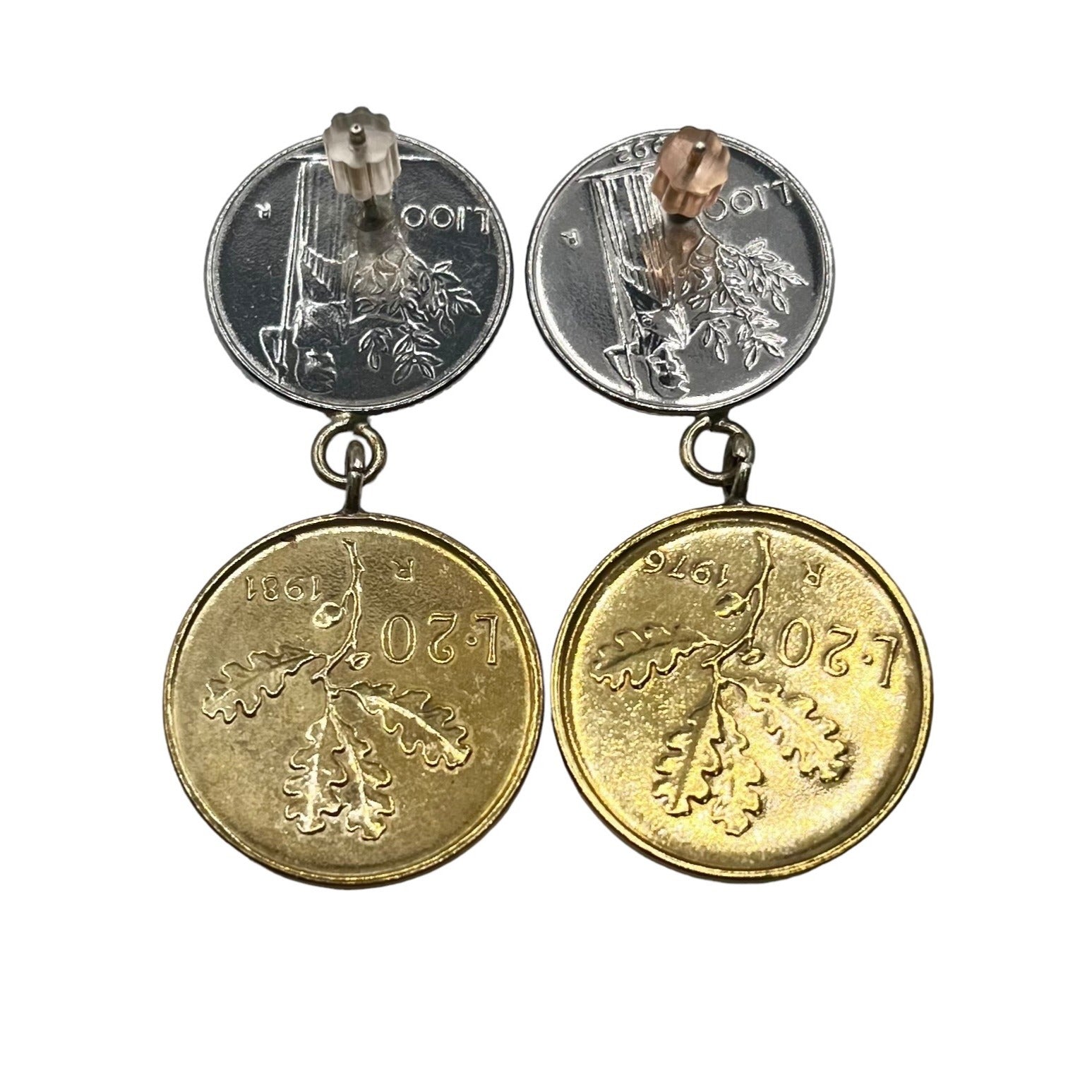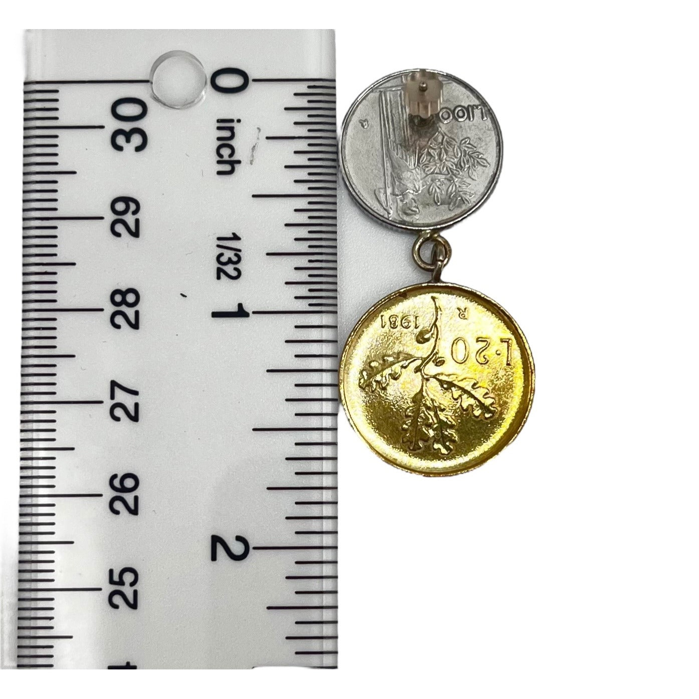 Milor Italy Sterling Gold Vermeil Italian Lire Coin Dangle Drop Earrings