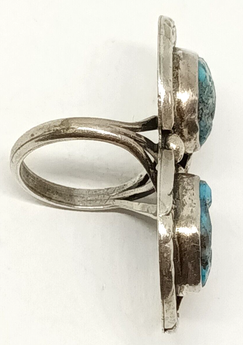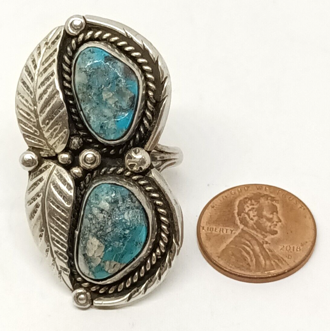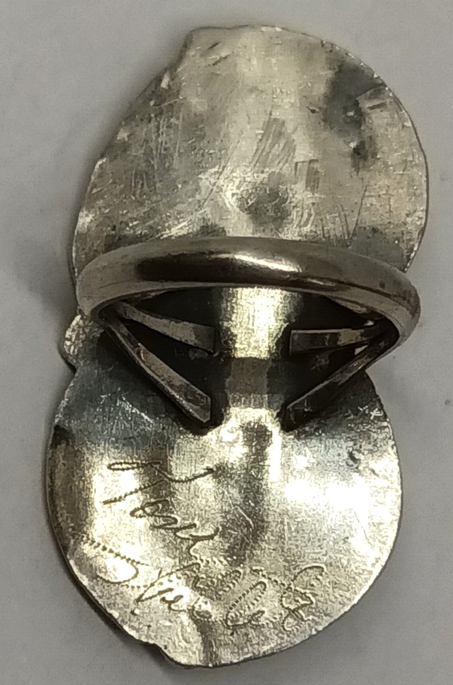 Native American Hand Signed Turquoise & Sterling Silver Ring Size 8.5, 14.5 g