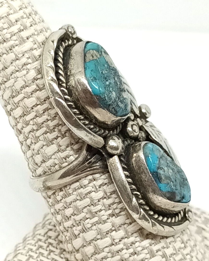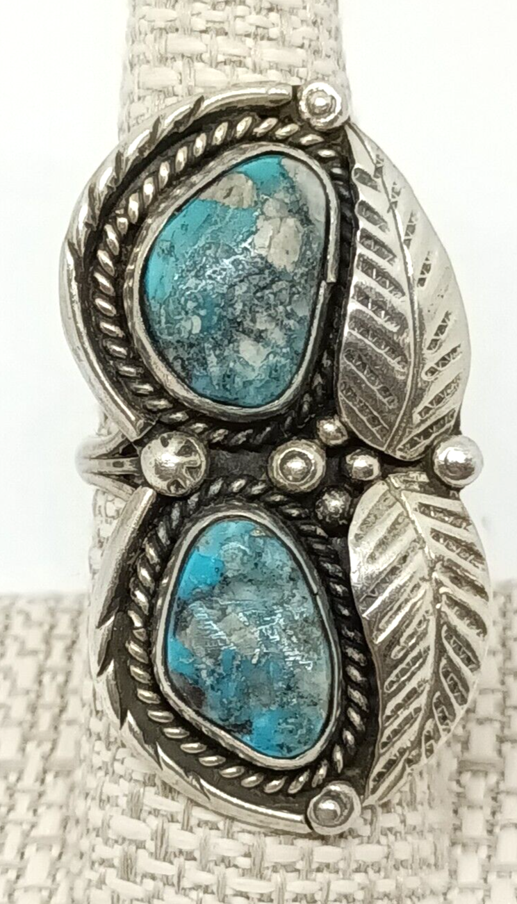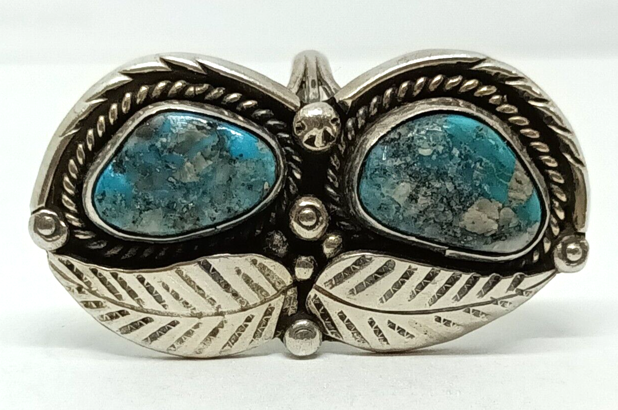 Native American Hand Signed Turquoise & Sterling Silver Ring Size 8.5, 14.5 g