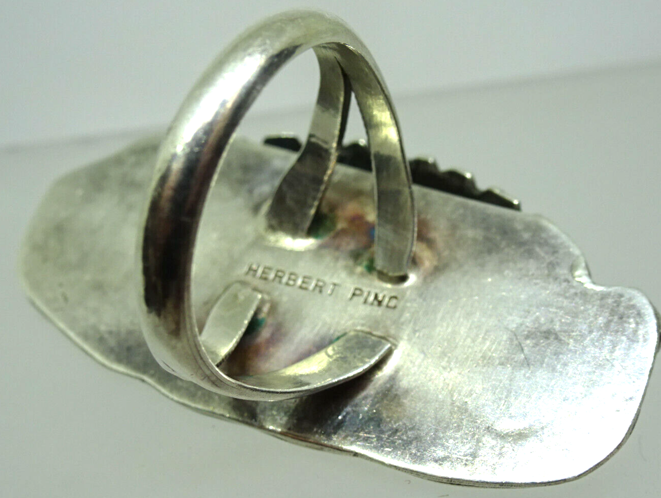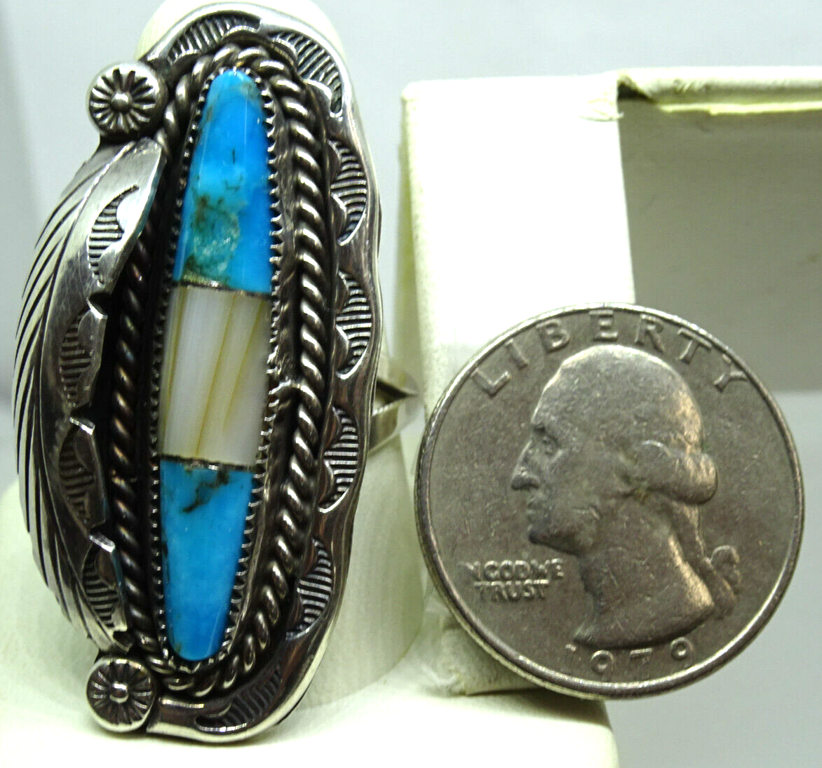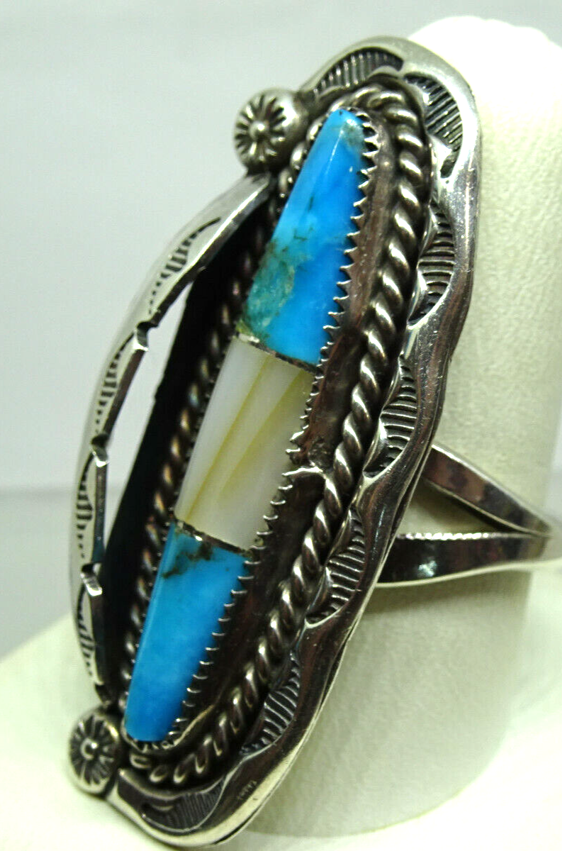 Native American Herbert Pinc Navajo Sterling, Turquoise, MOP Ring, Signed