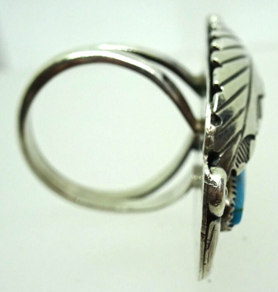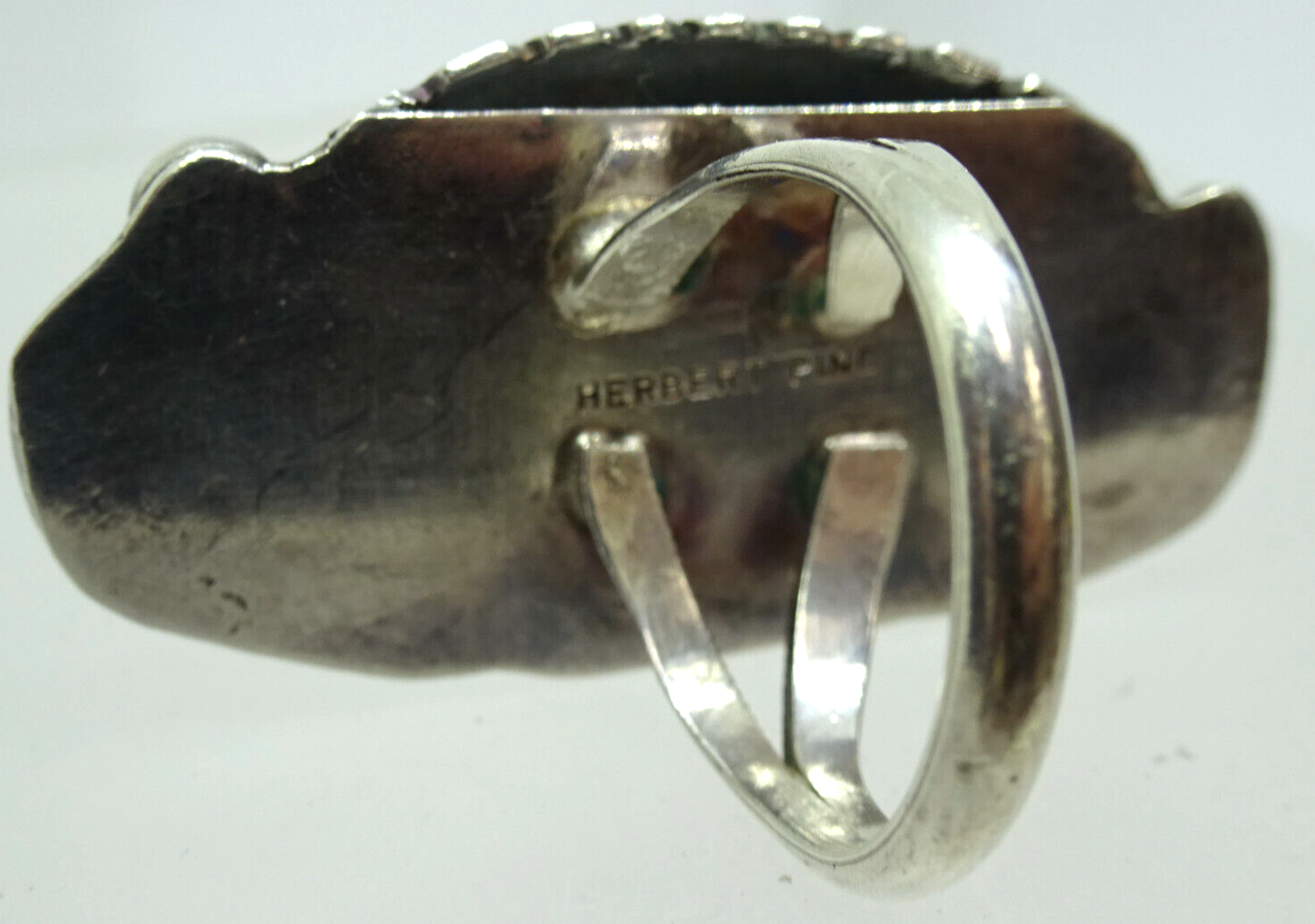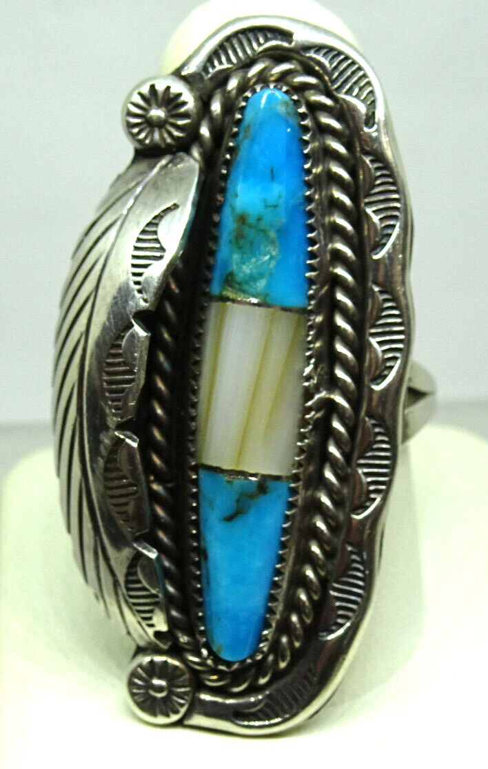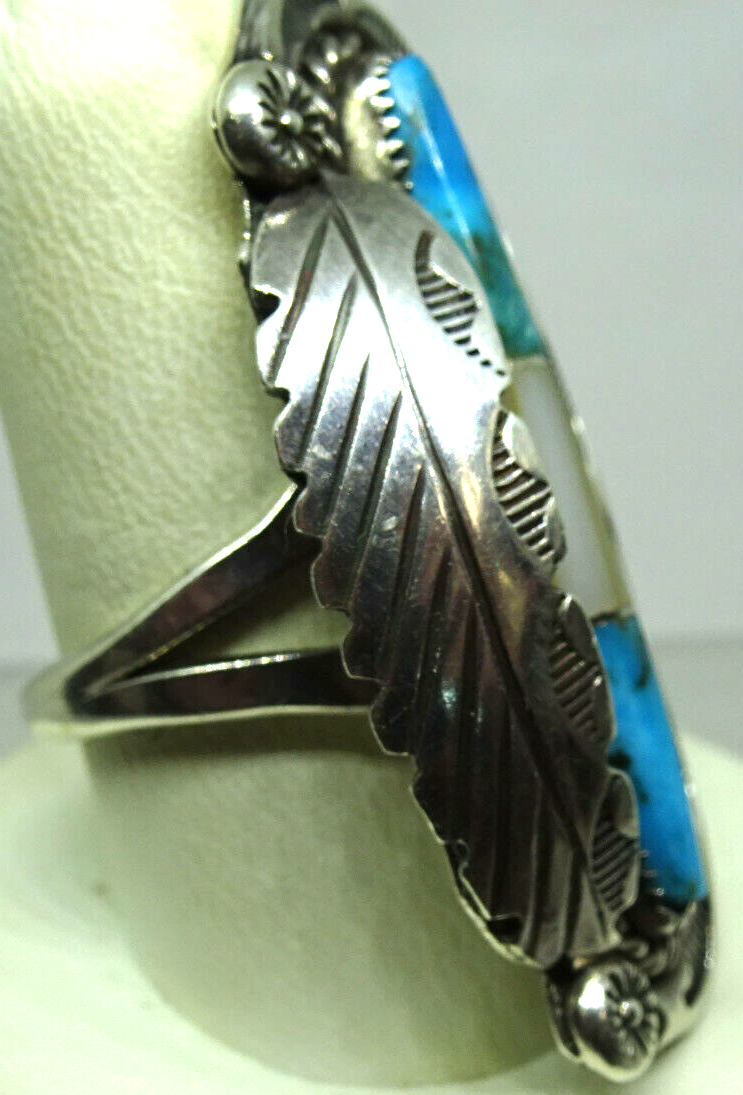 Native American Herbert Pinc Navajo Sterling, Turquoise, MOP Ring, Signed