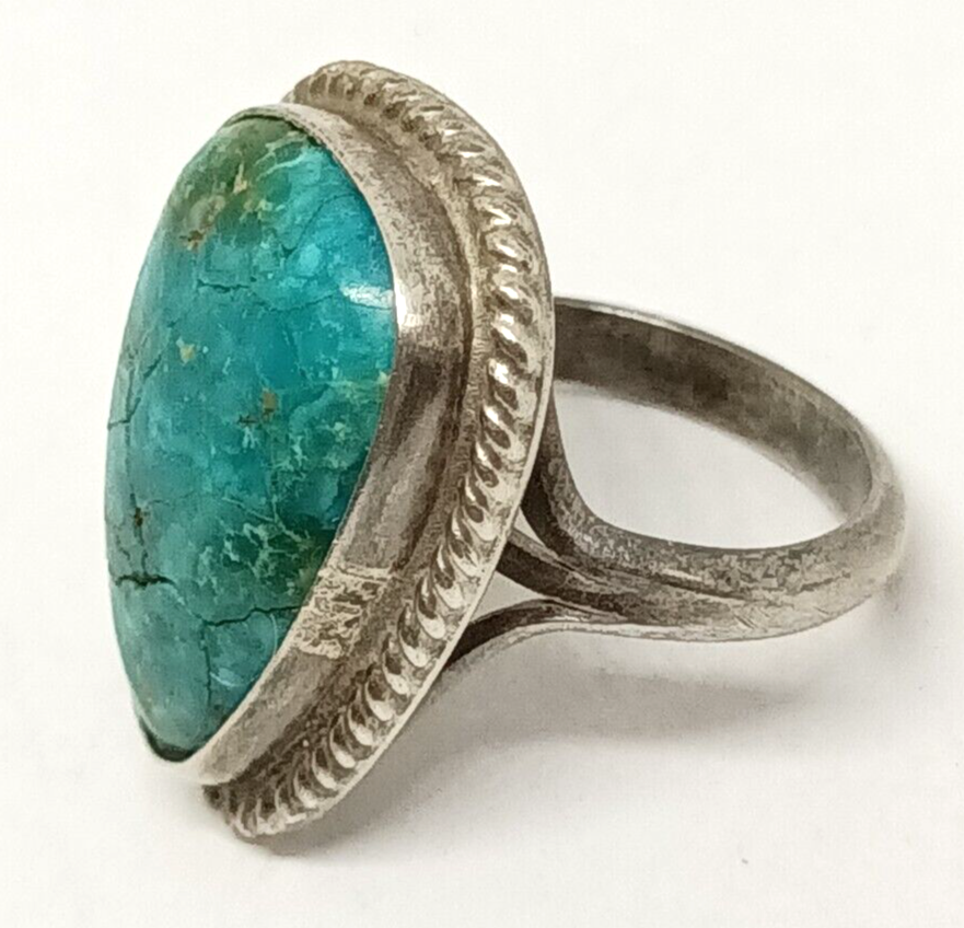 Native American Sterling Silver & Turquoise Ring Size 5, 7.8 grams