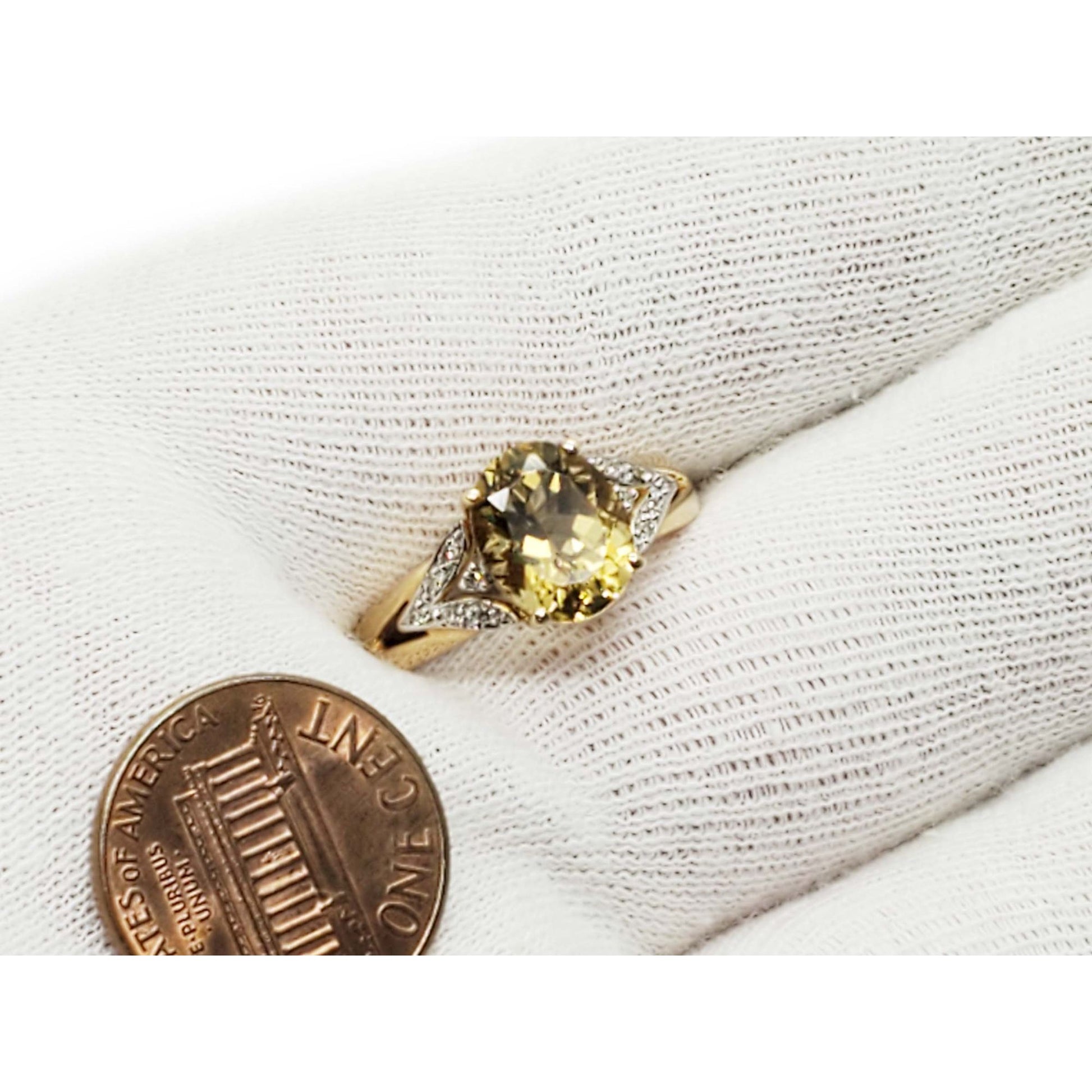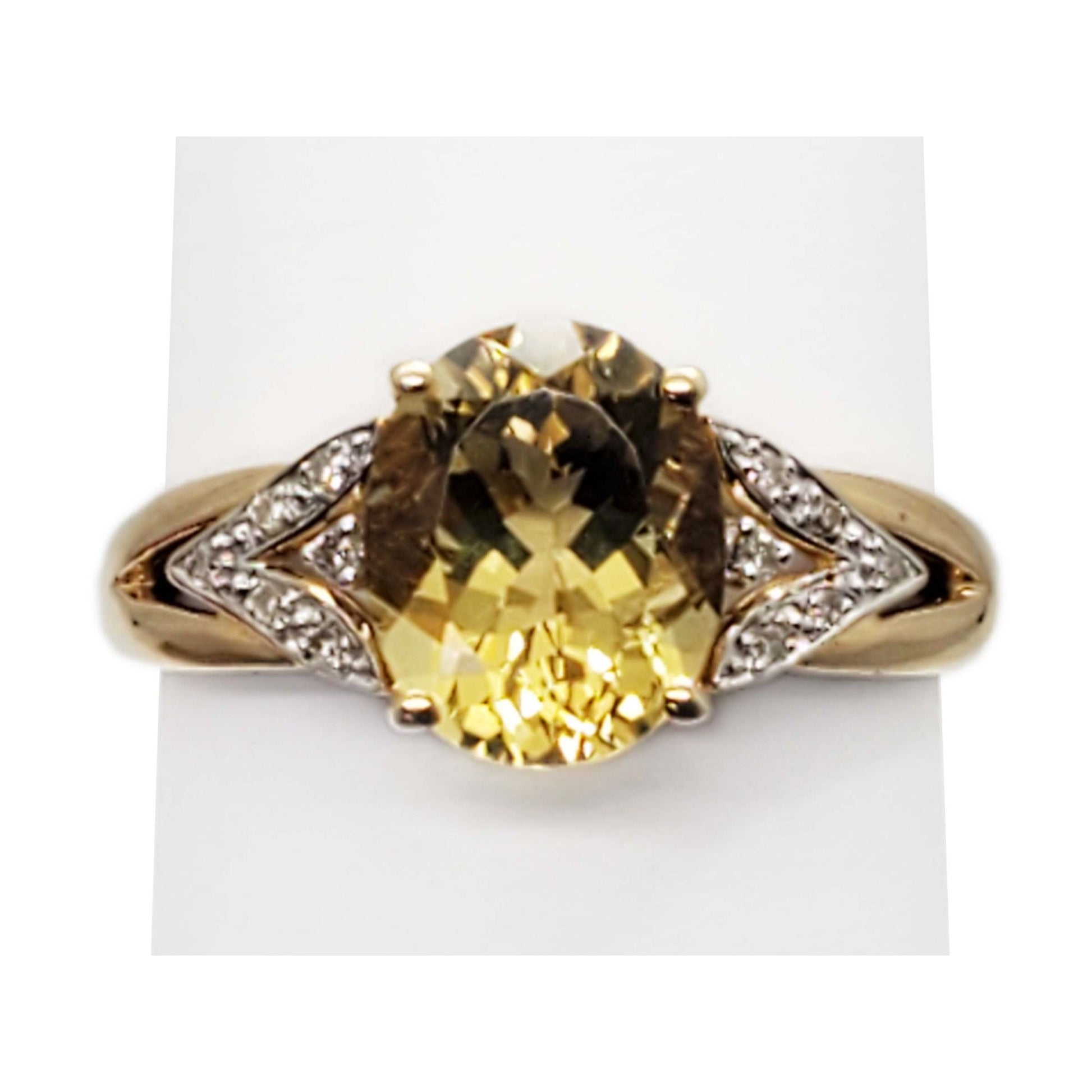 Natural Oval Citrine & Diamond Accent Ring 14k Gold Size 9