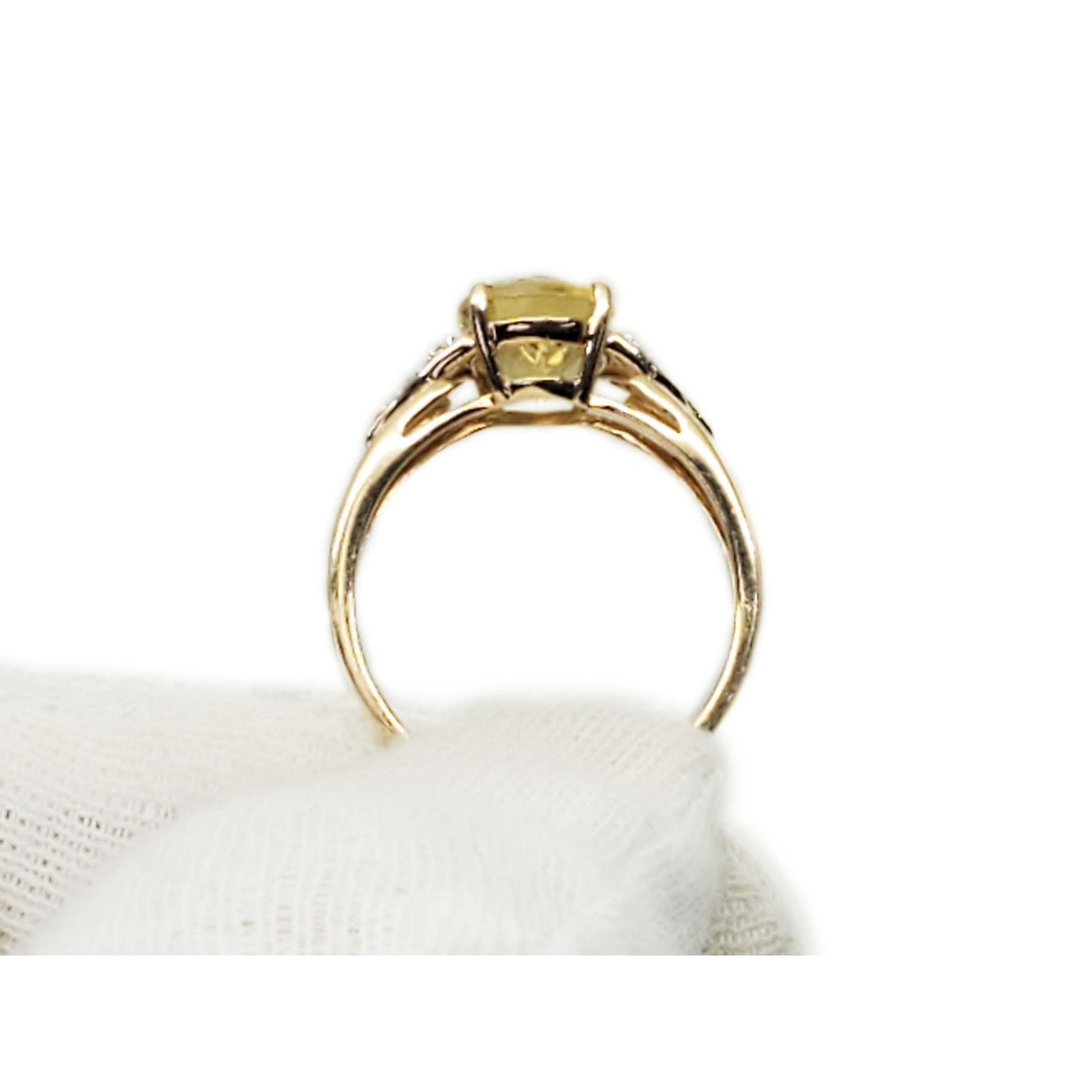 Ladies citrine and diamond accent ring in 14k yellow gold.