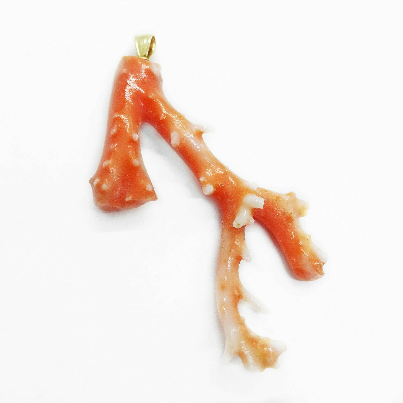 Natural Rose Pink Angel Skin Coral Branch Pendant 14k Gold