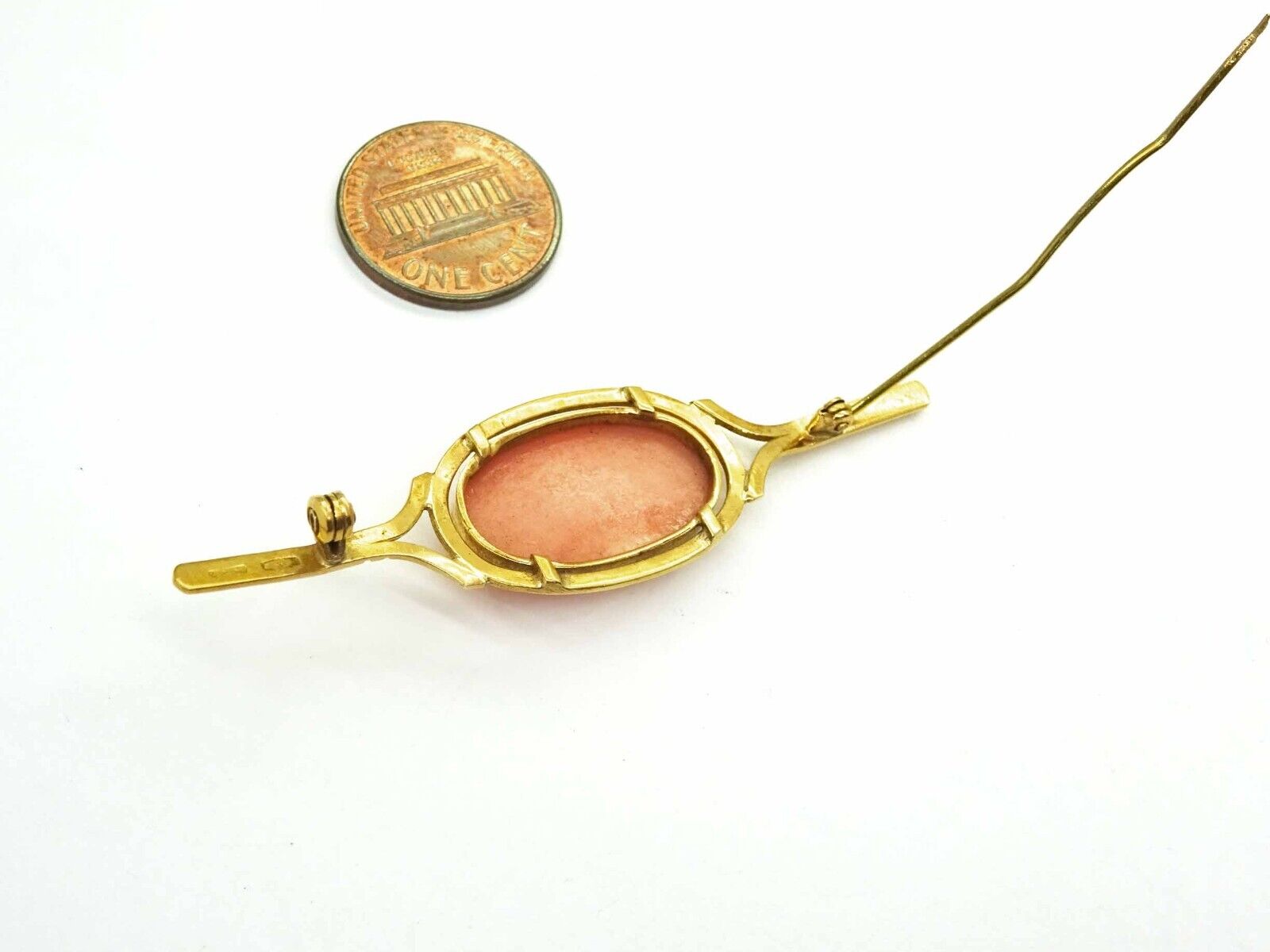 Natural Salmon Pink Coral Oval Cabochon Pin 18k Gold