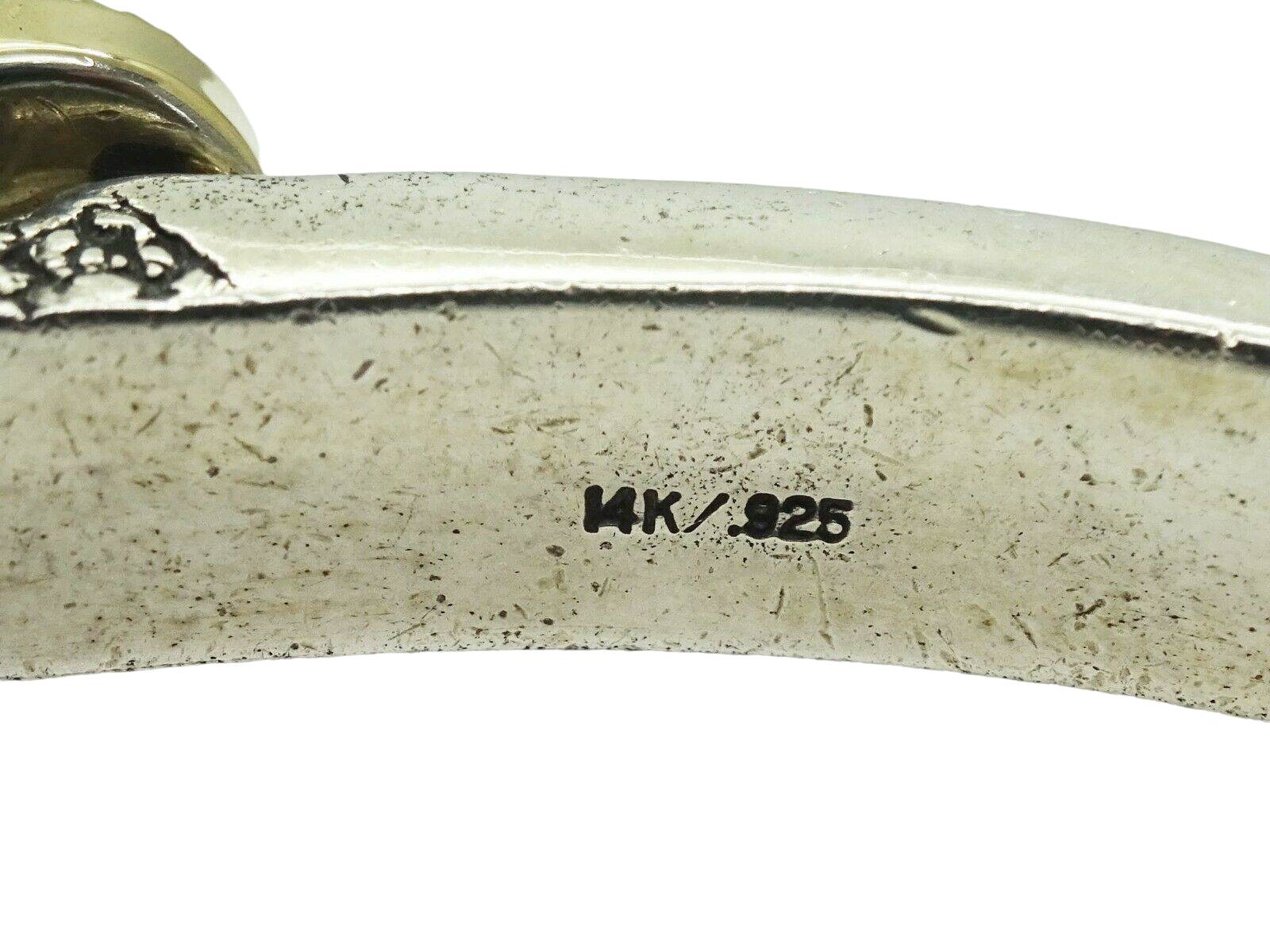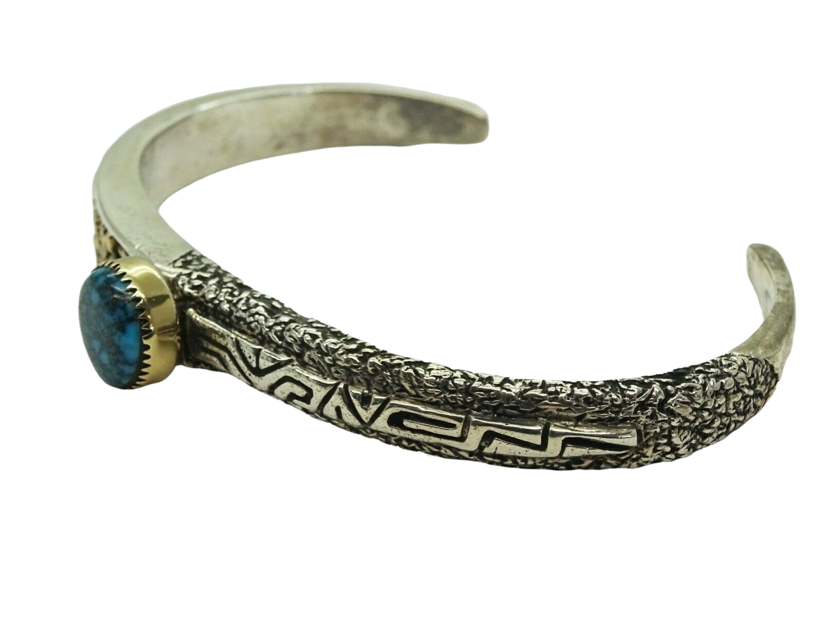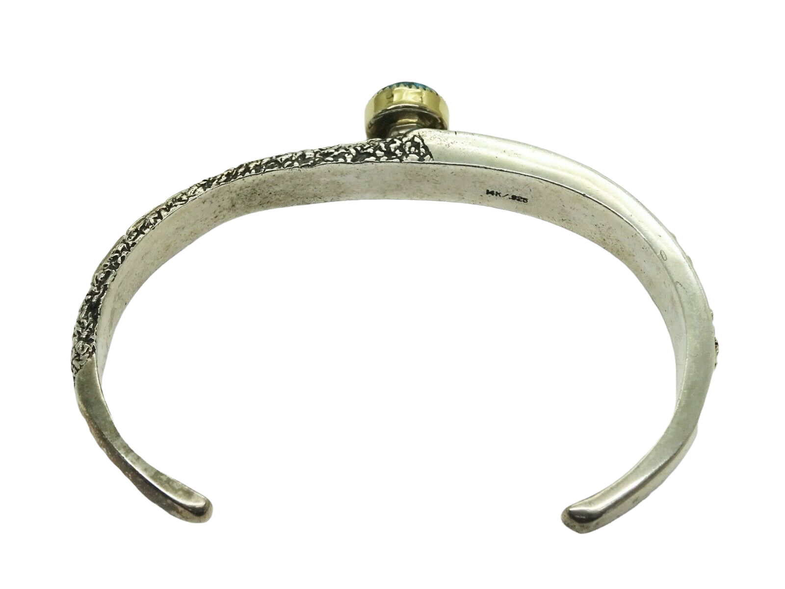 Natural Spiderweb Turquoise Cuff Bracelet Sterling Silver w/14k Gold Accents