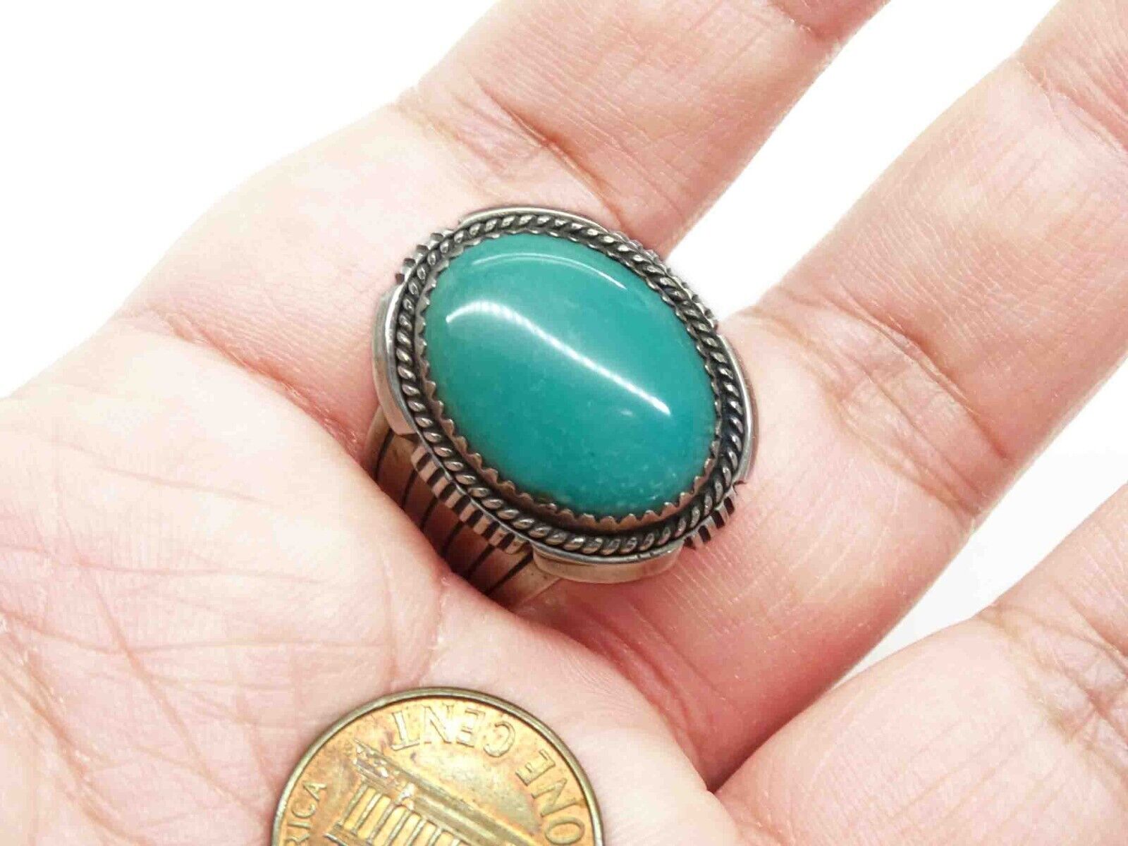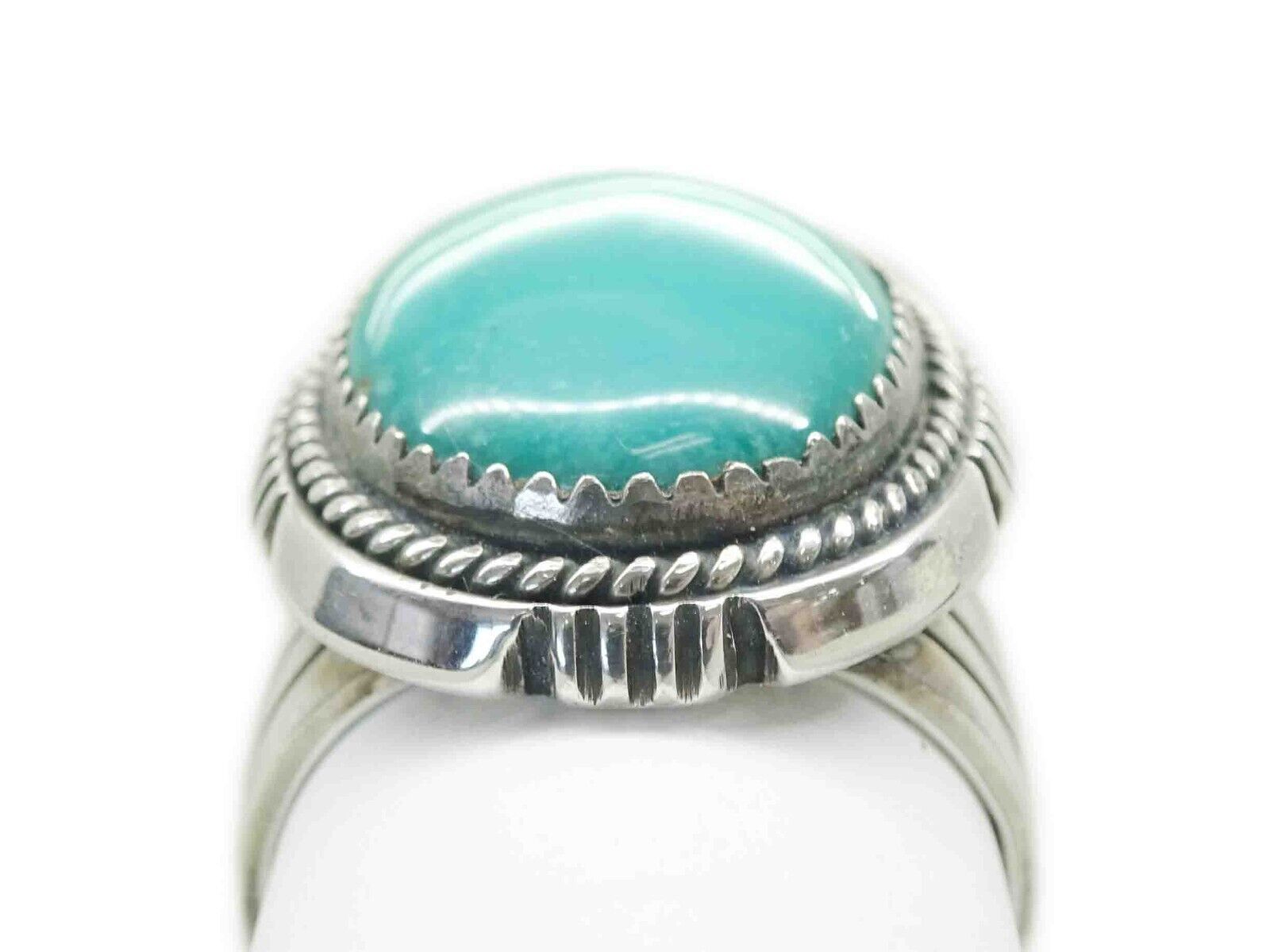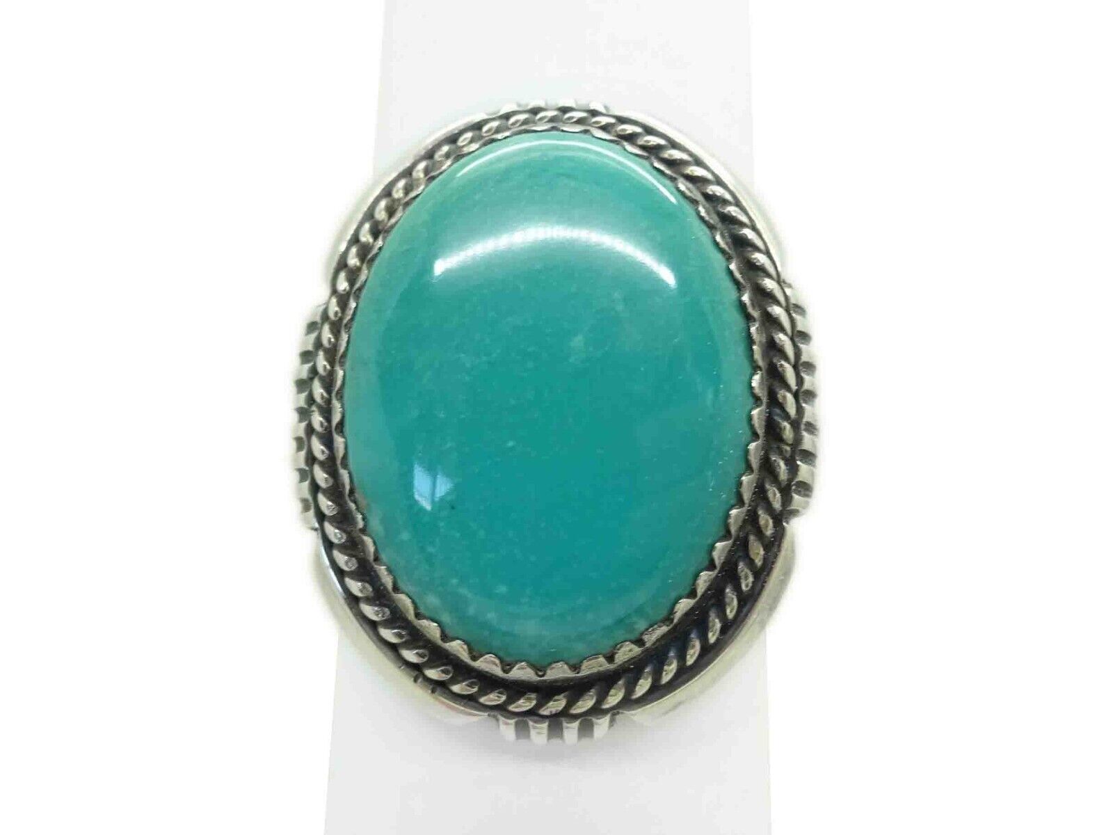 Navajo Artisan Denetdale Oval Turquoise Cabochon Ring Sterling Silver Size 9.5