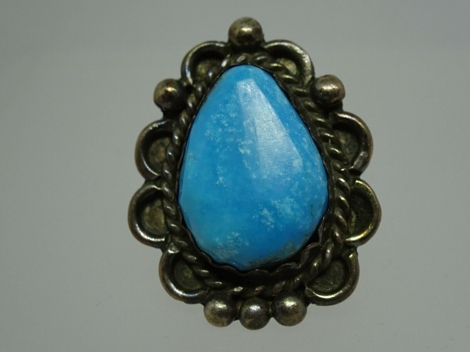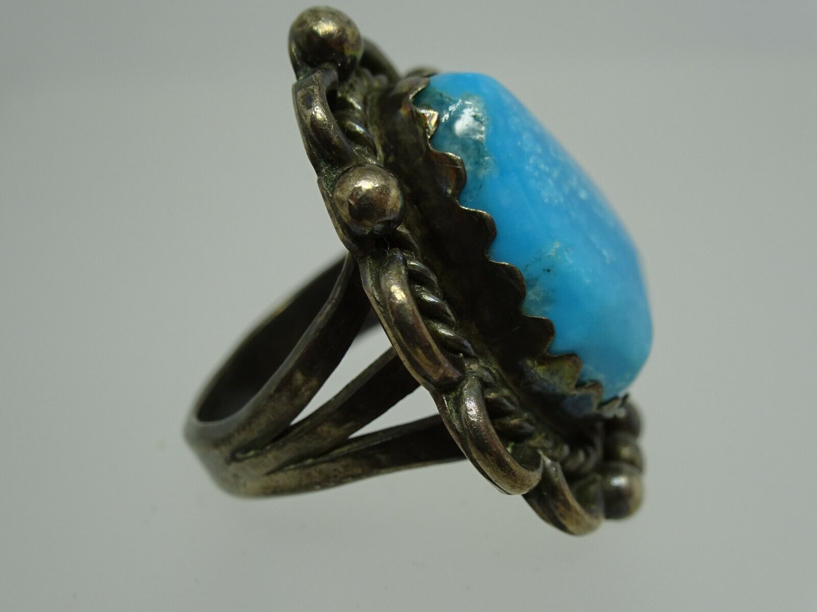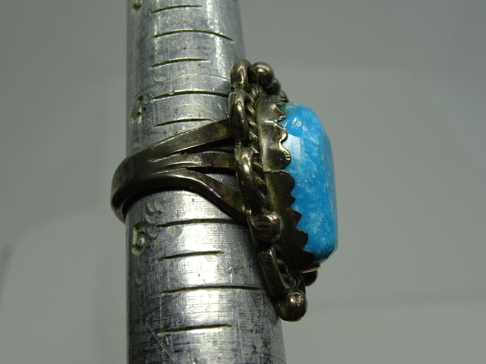 Old Pawn Native American Navajo Sterling Turquoise Ring Sawtooth Bezel Size 4.5