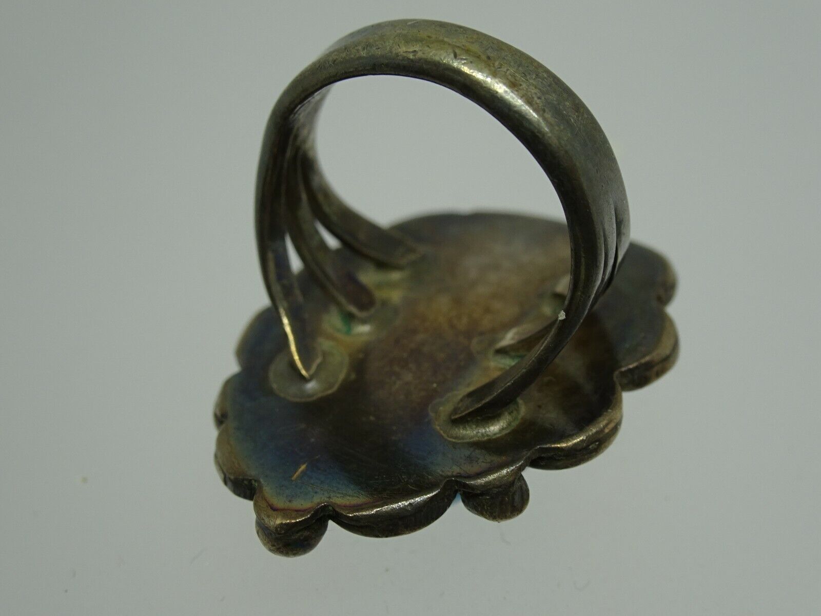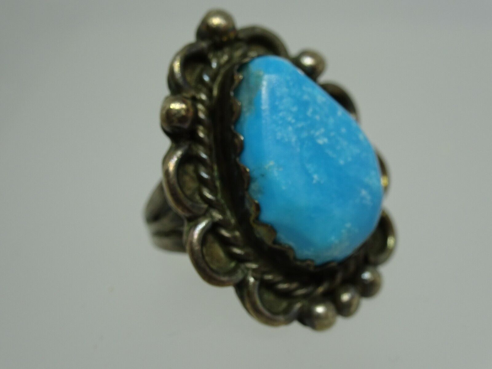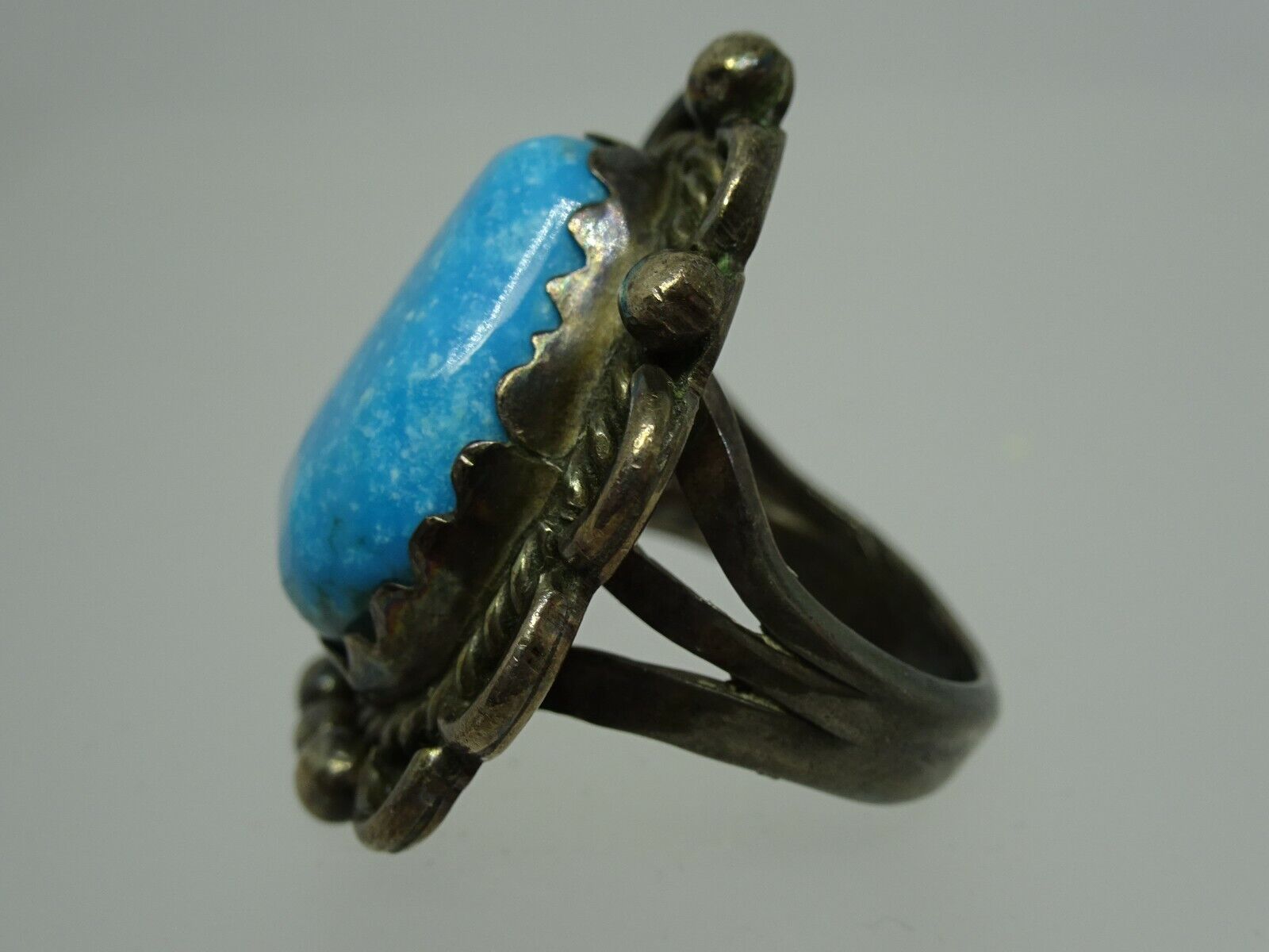 Old Pawn Native American Navajo Sterling Turquoise Ring Sawtooth Bezel Size 4.5
