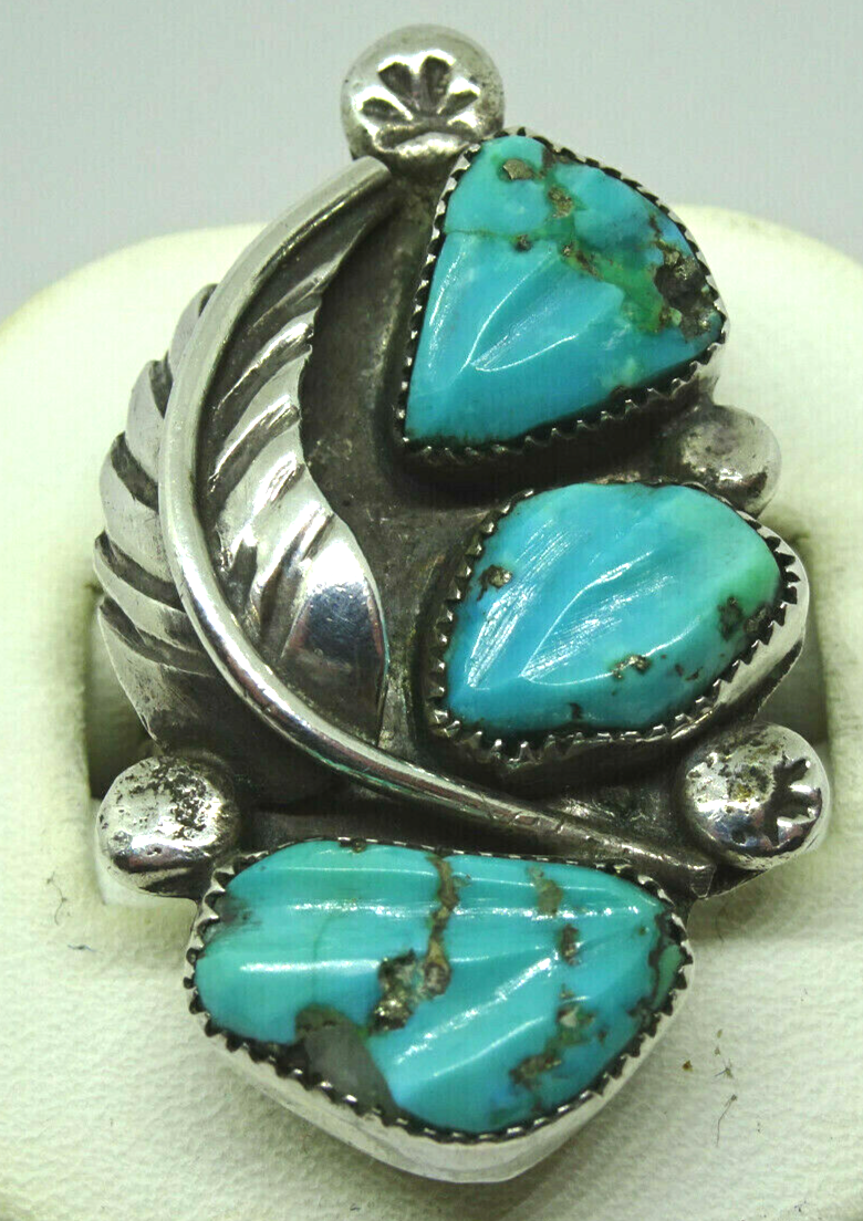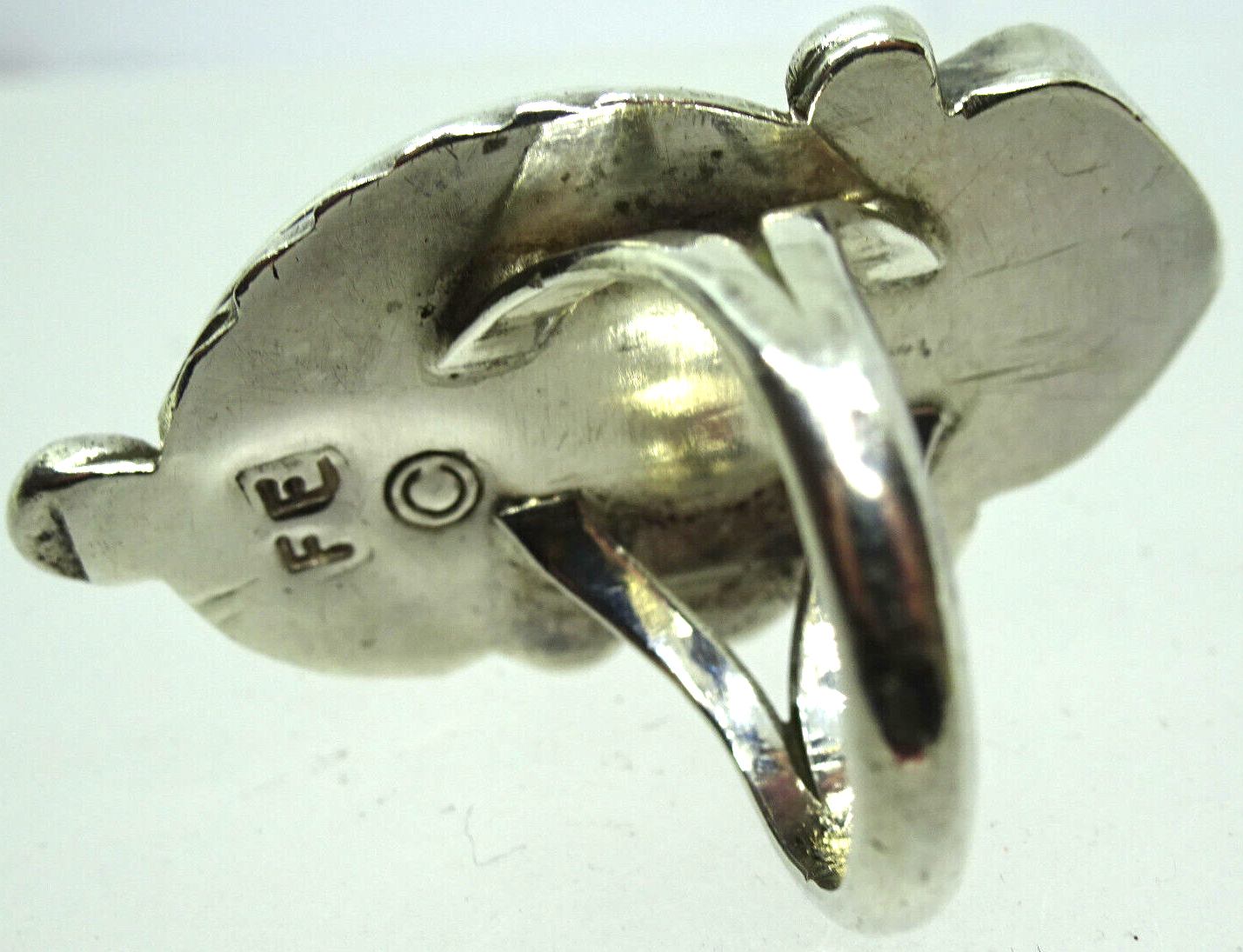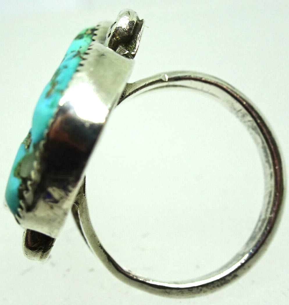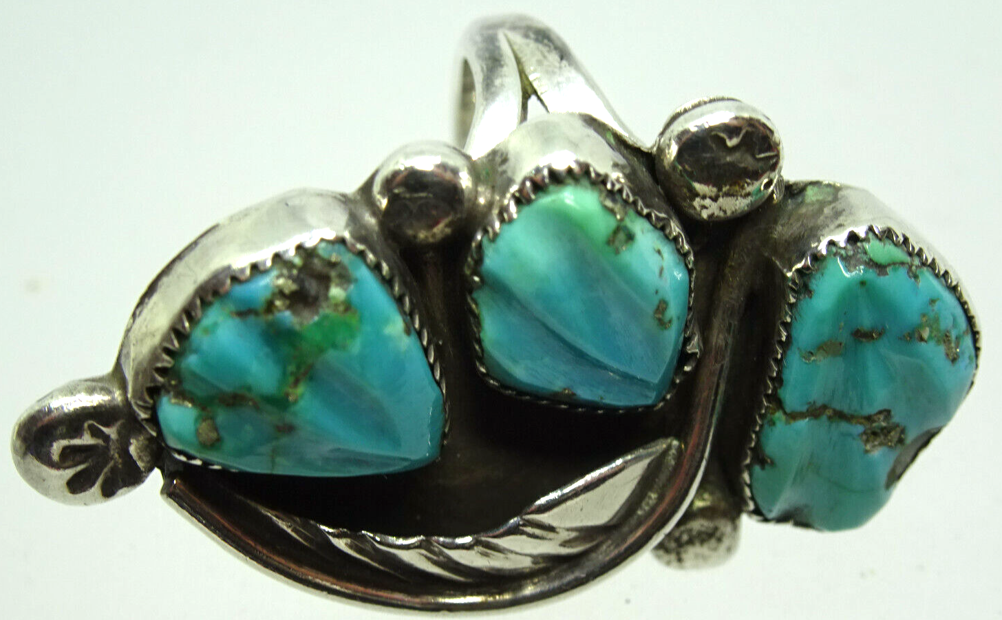 Old Pawn SIGNED ZUNI Sterling Silver & Turquoise Ring, FE Signed, Sz. 6.5