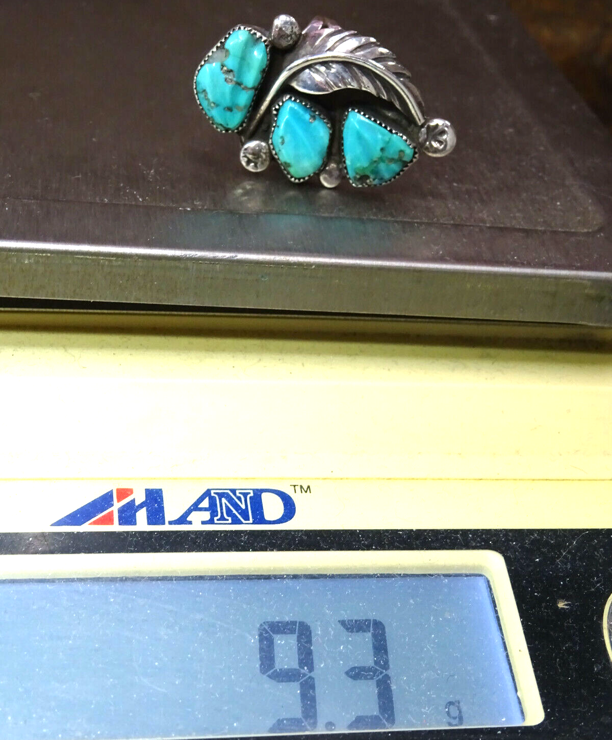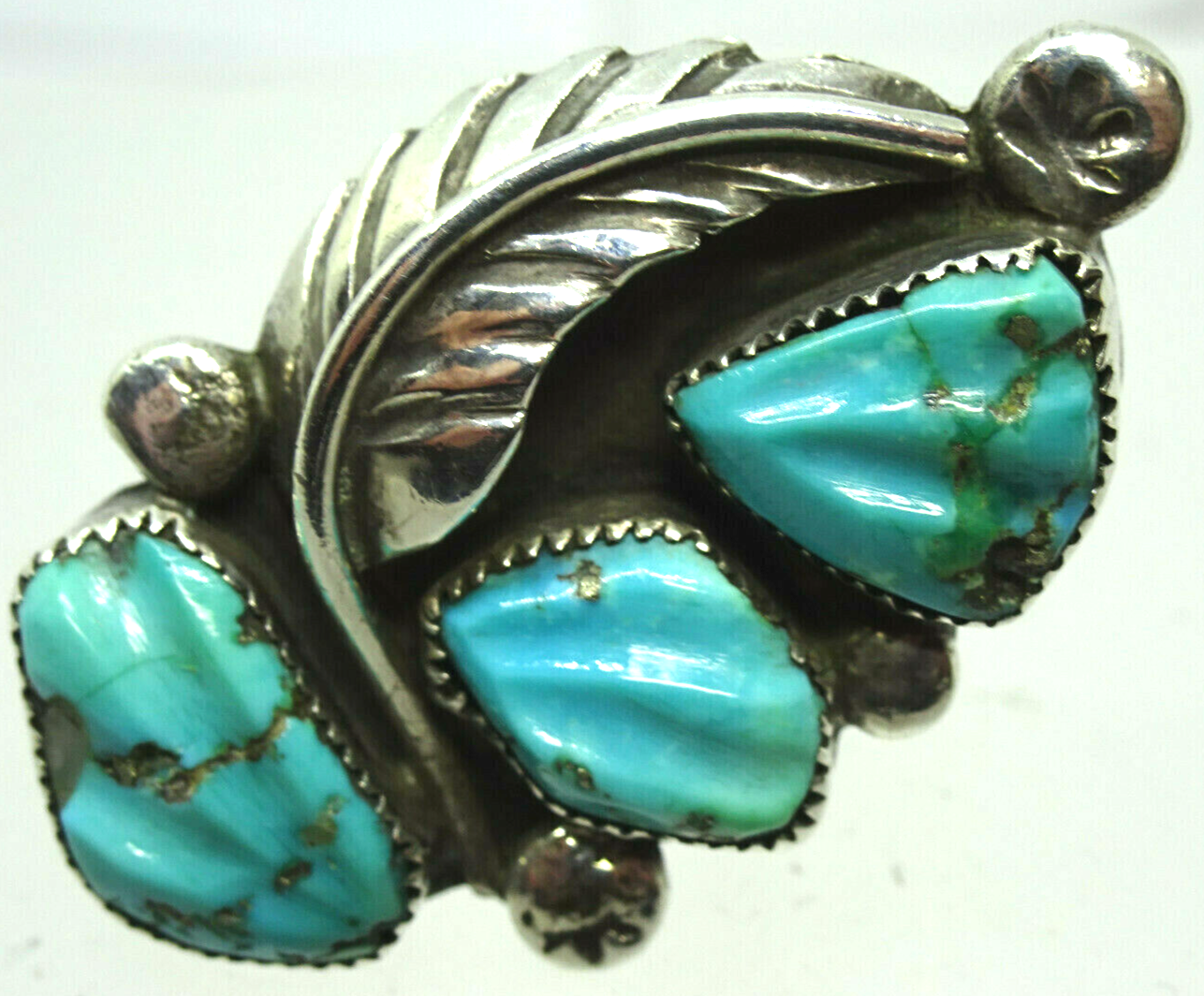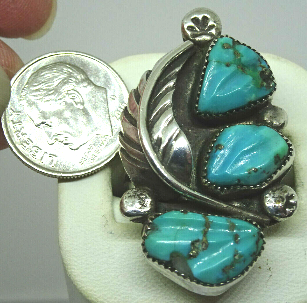 Old Pawn SIGNED ZUNI Sterling Silver & Turquoise Ring, FE Signed, Sz. 6.5