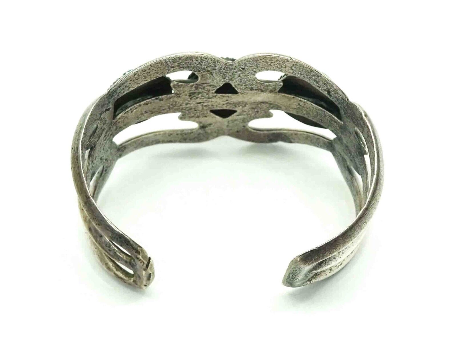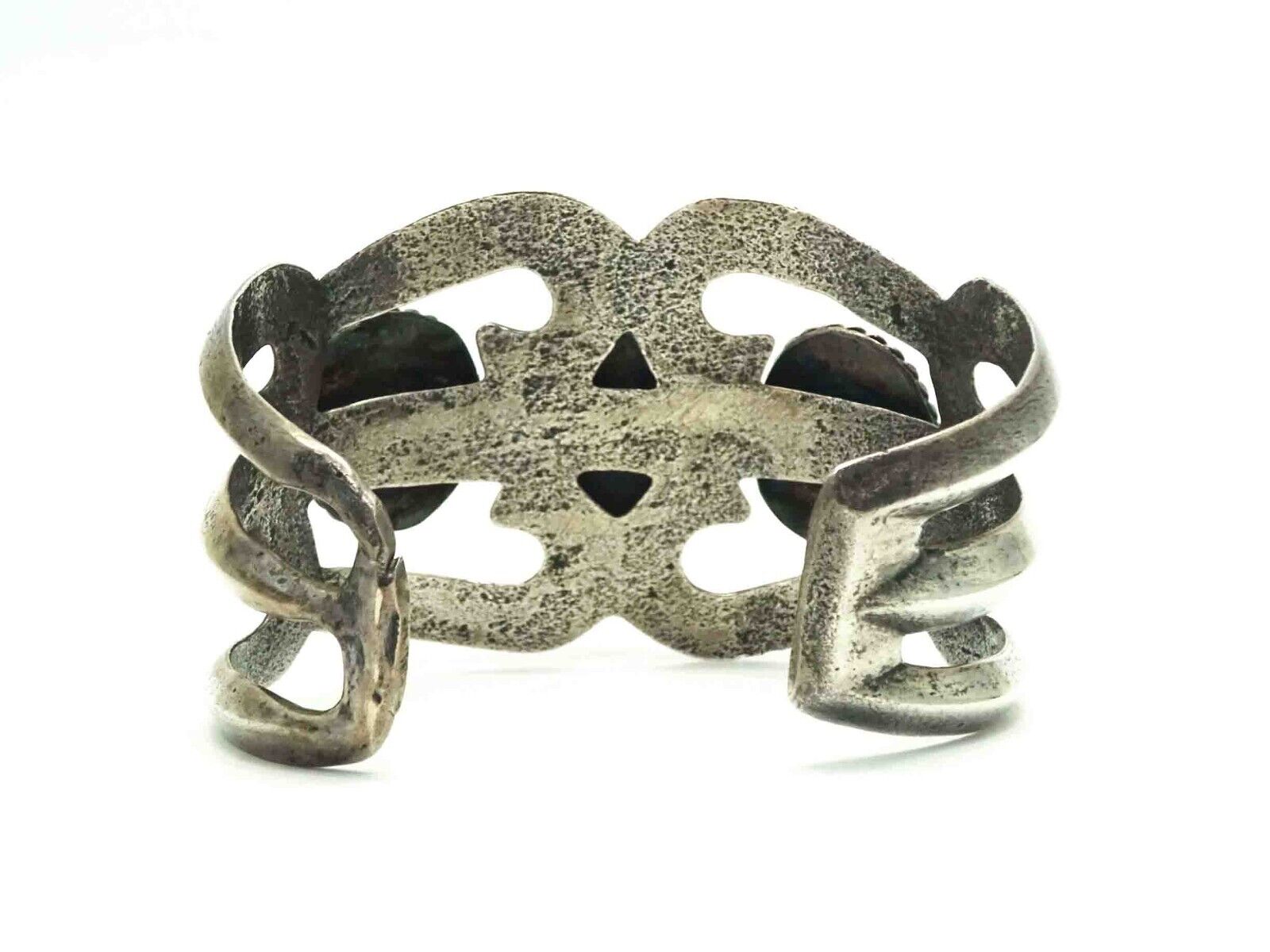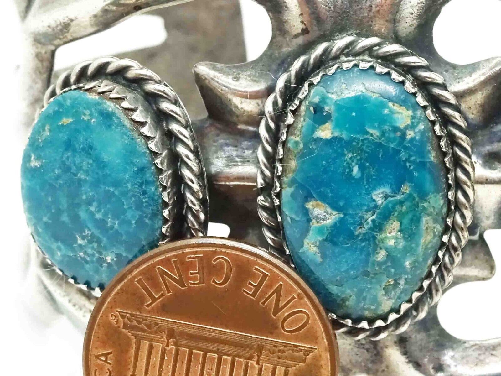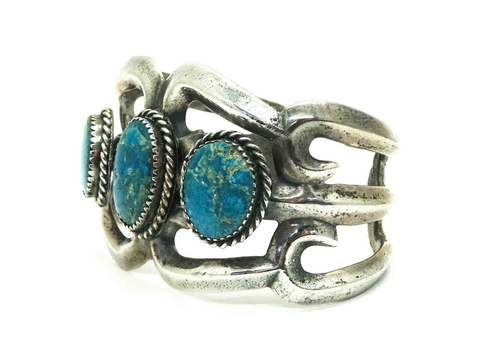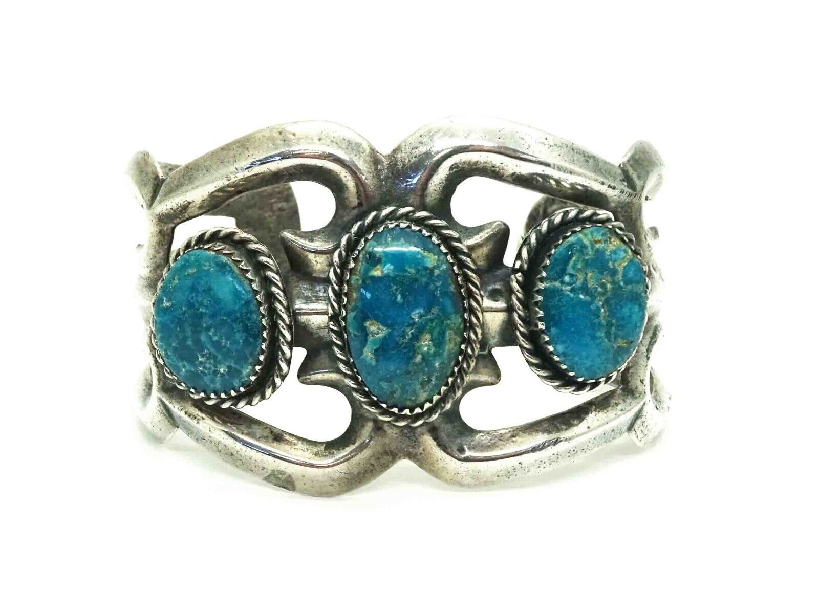 Old Pawn Southwest 3-Stone Turquoise Openwork Cuff Bracelet Sterling Silver