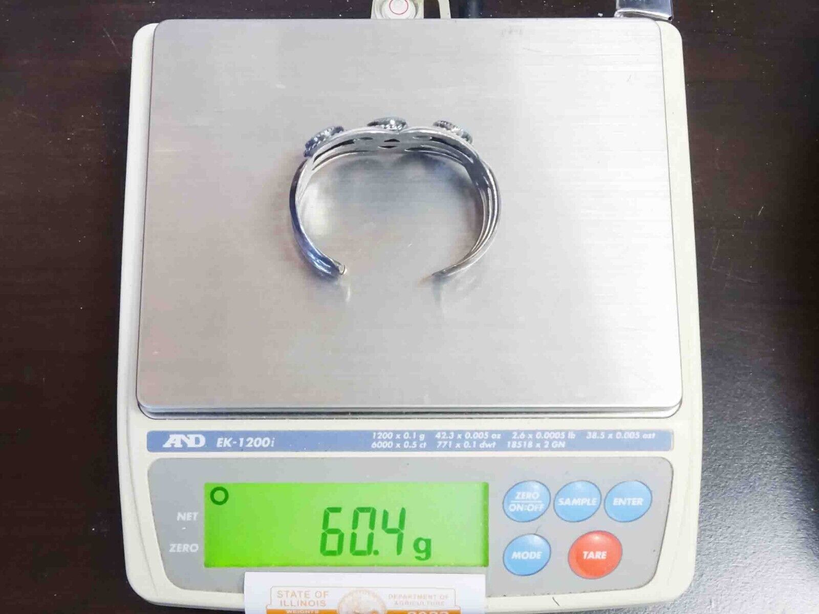 Bracelet width in front is about 40mm, and narrows to about 18mm at the ends.