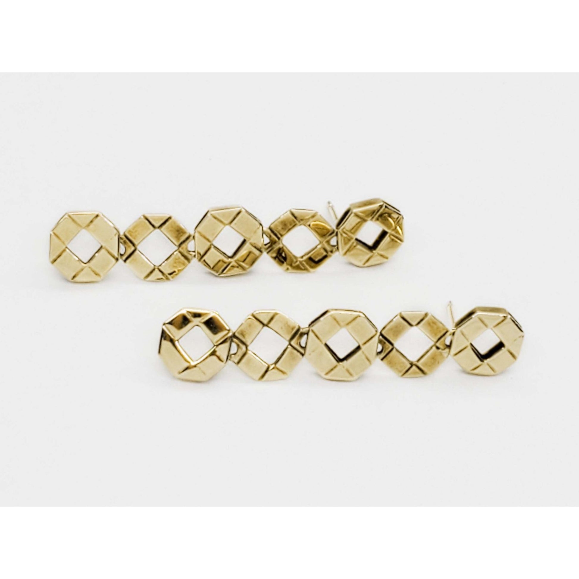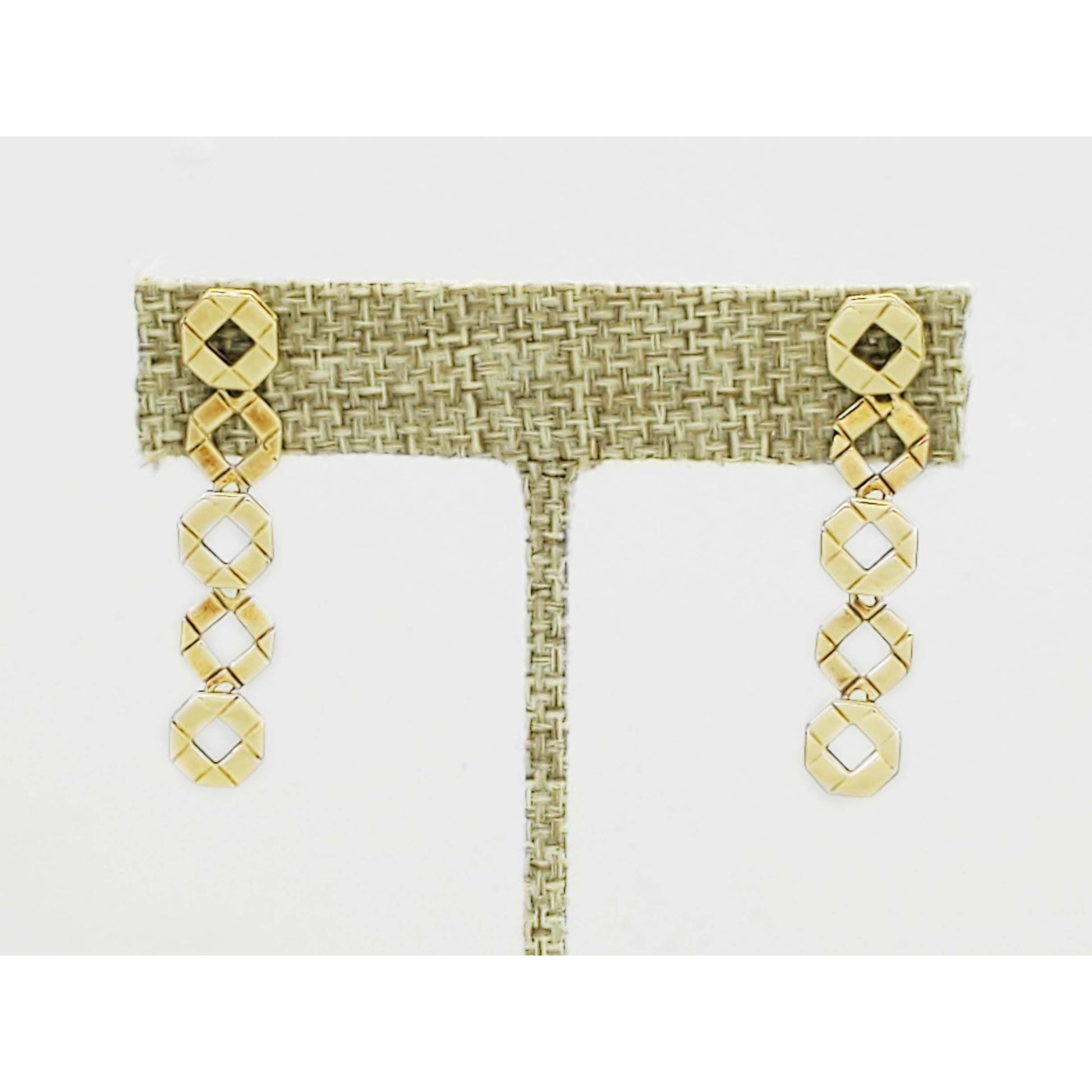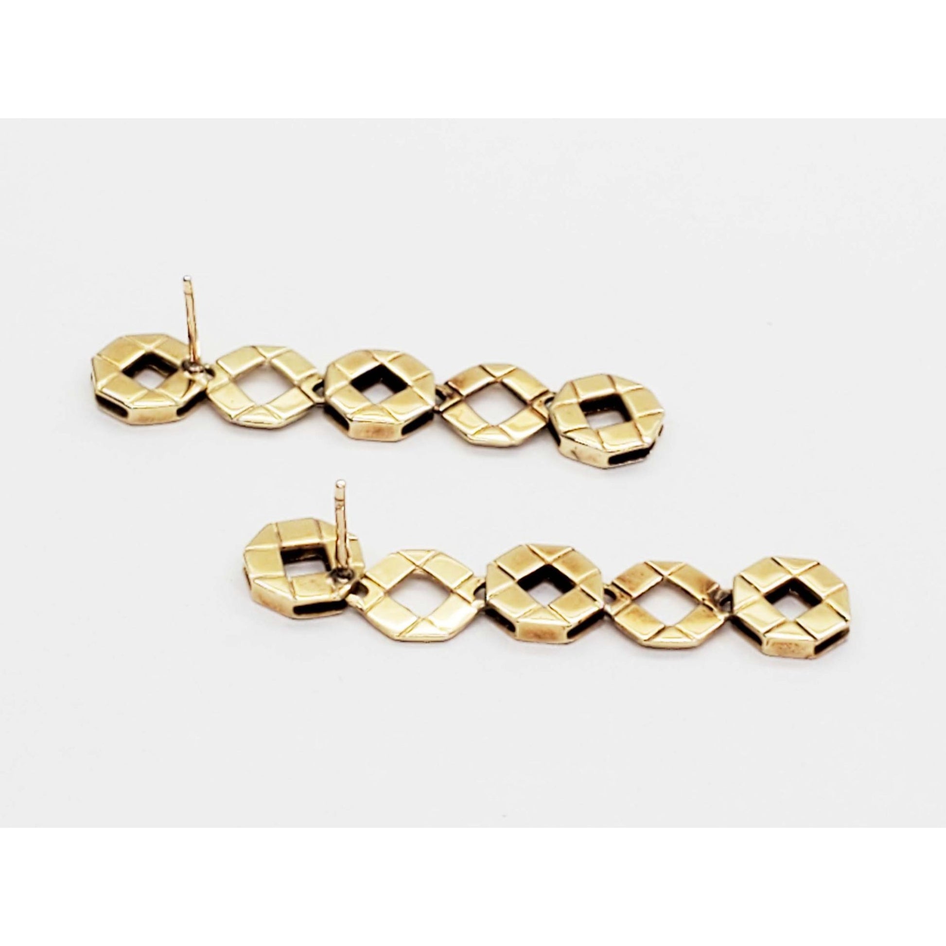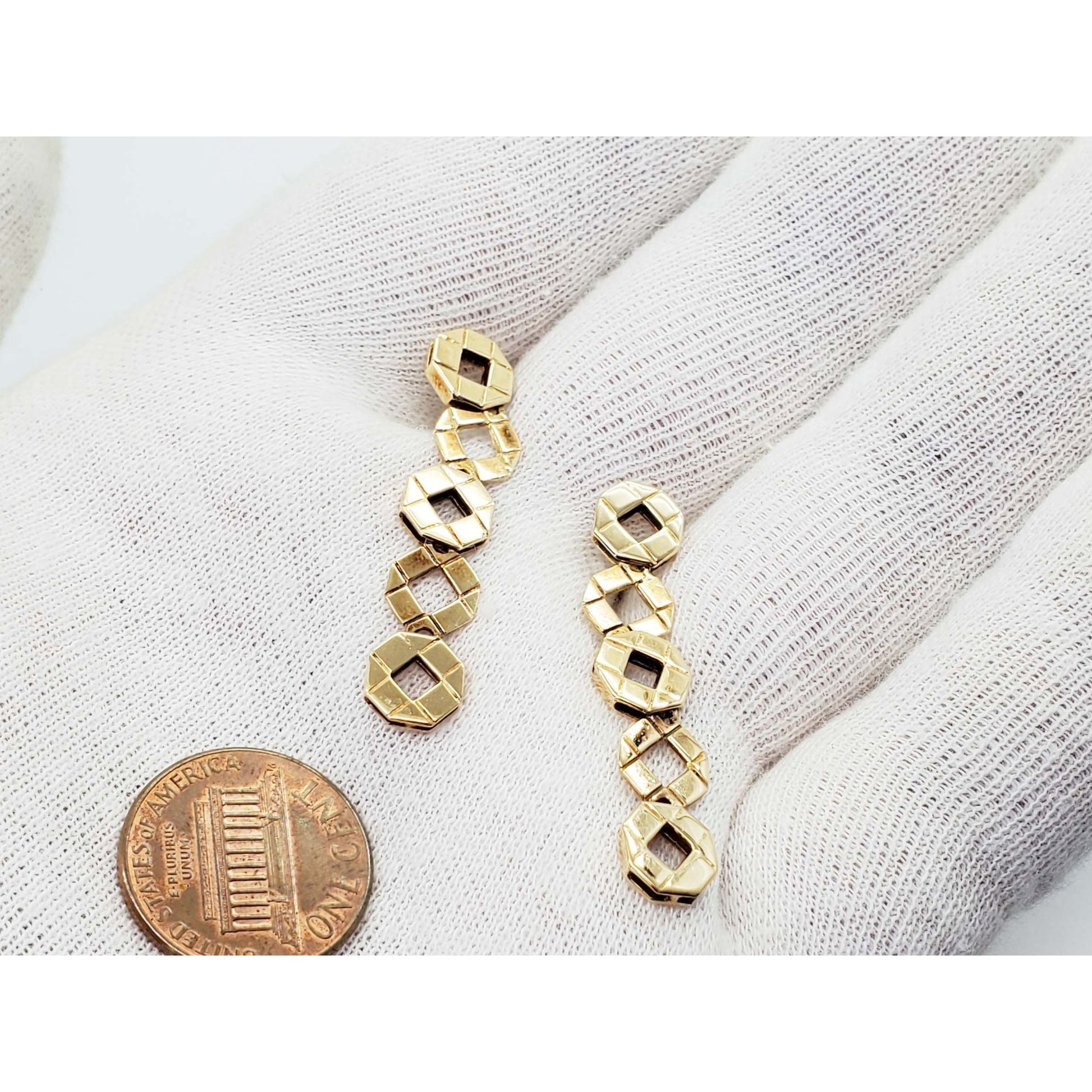 Pair of open octagon link dangle earrings in 14k yellow gold.