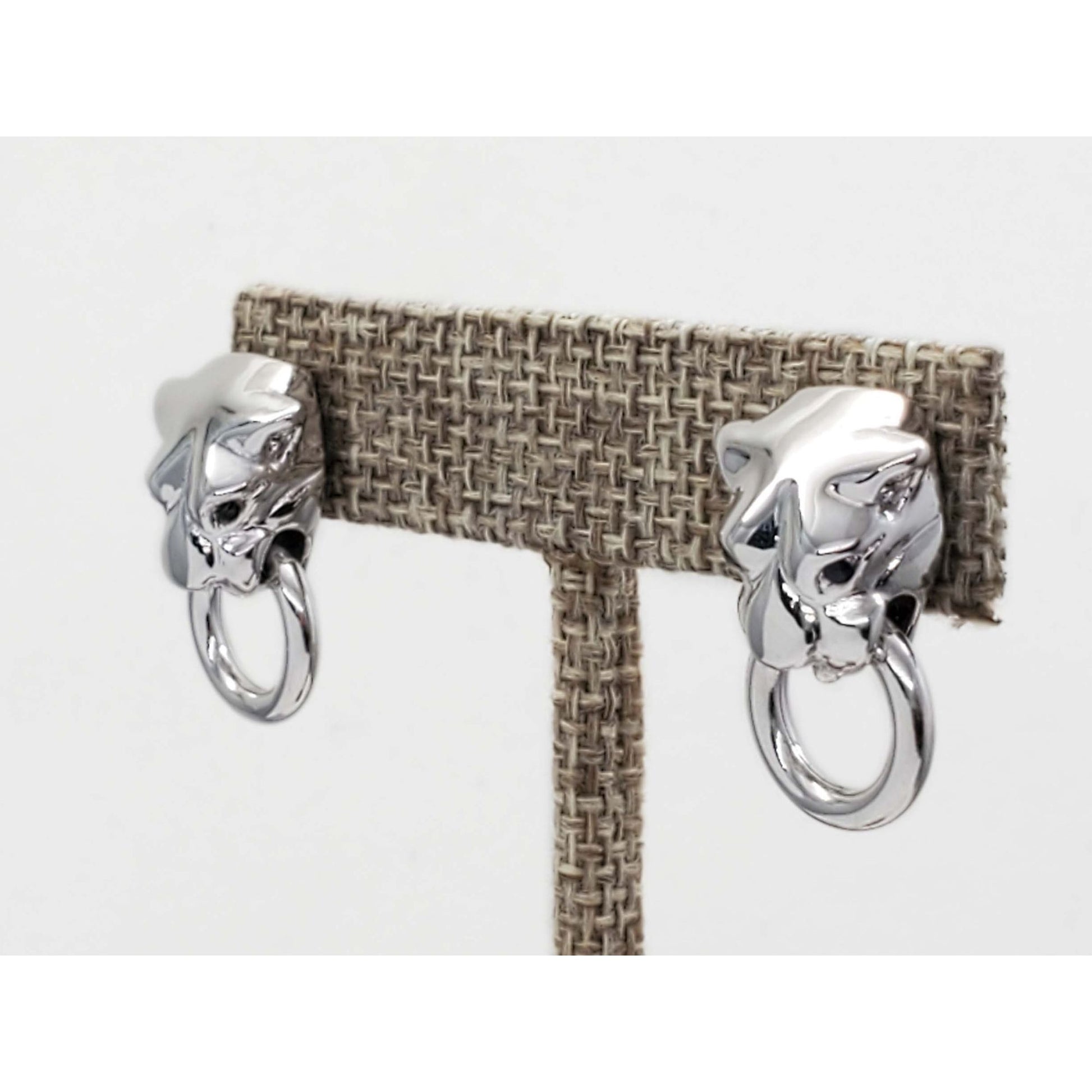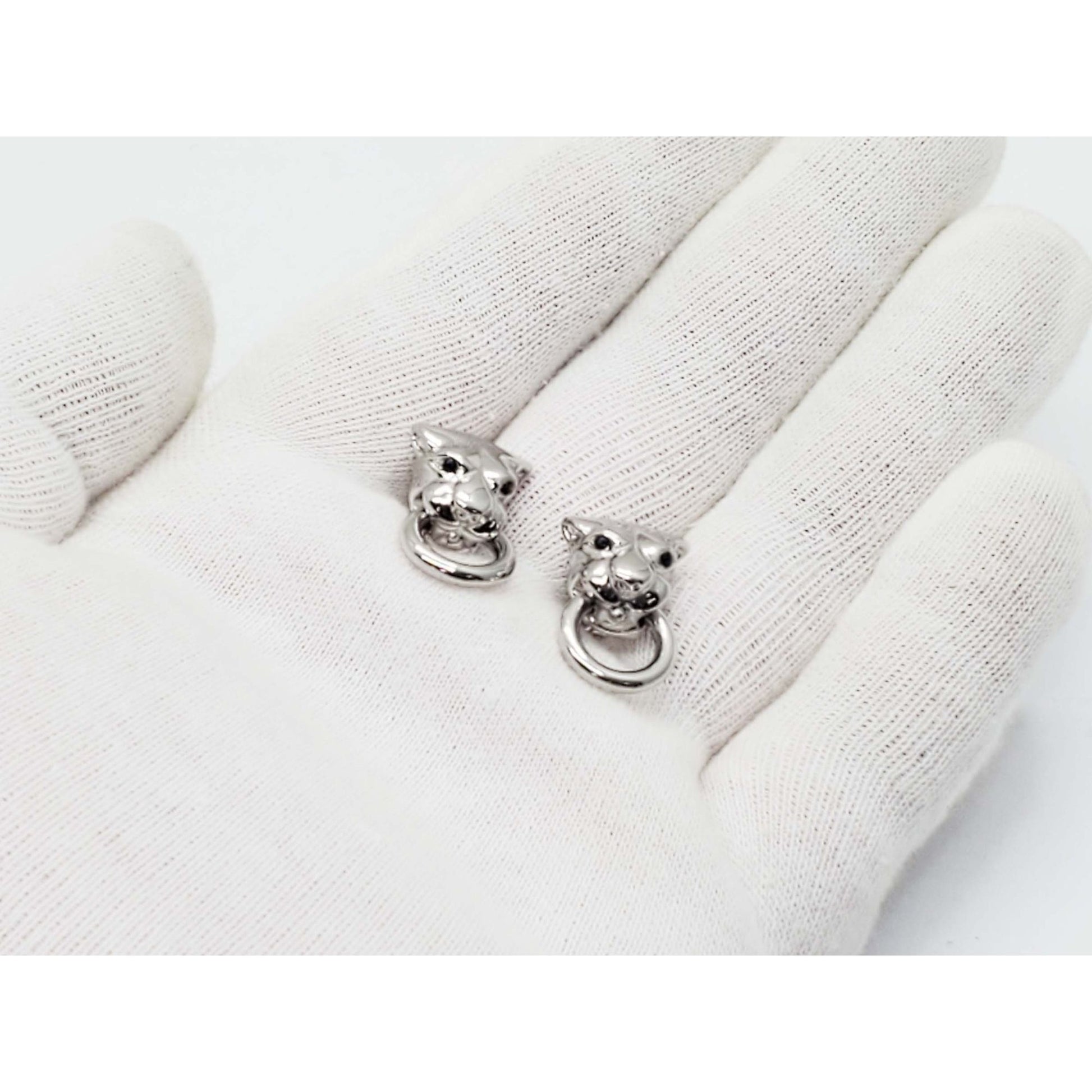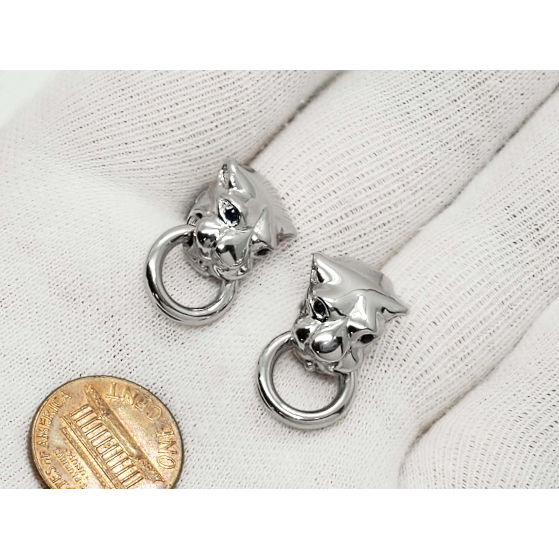 Panther or Dog Head Dangle Earrings Sapphire Eyes 18k White Gold