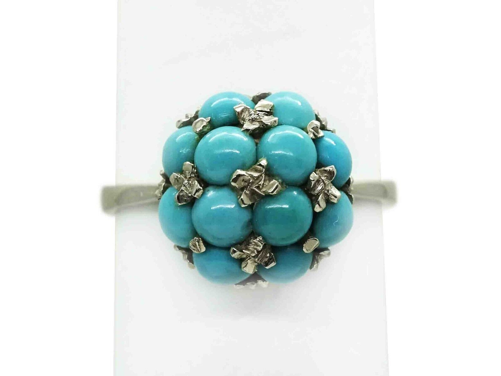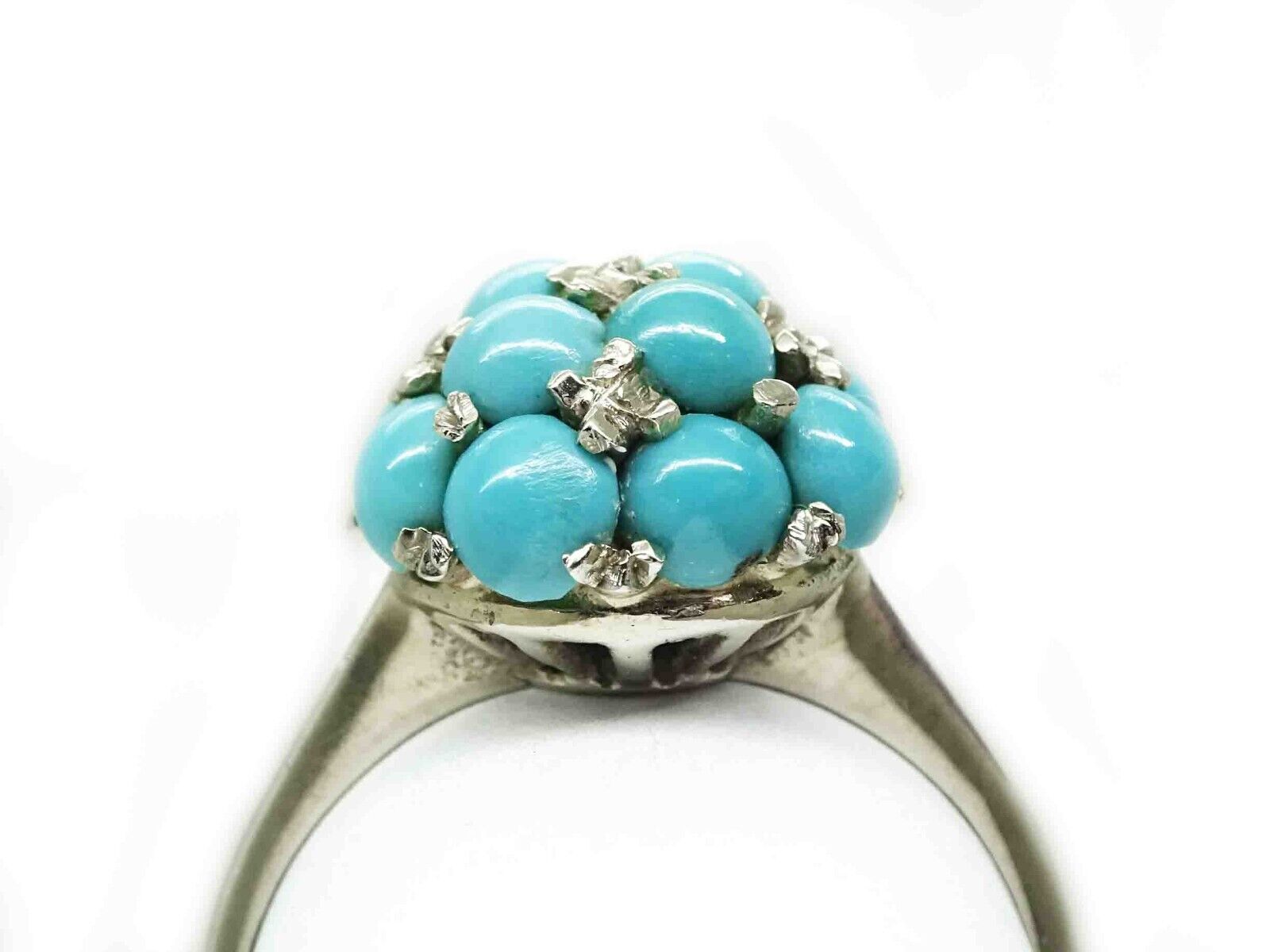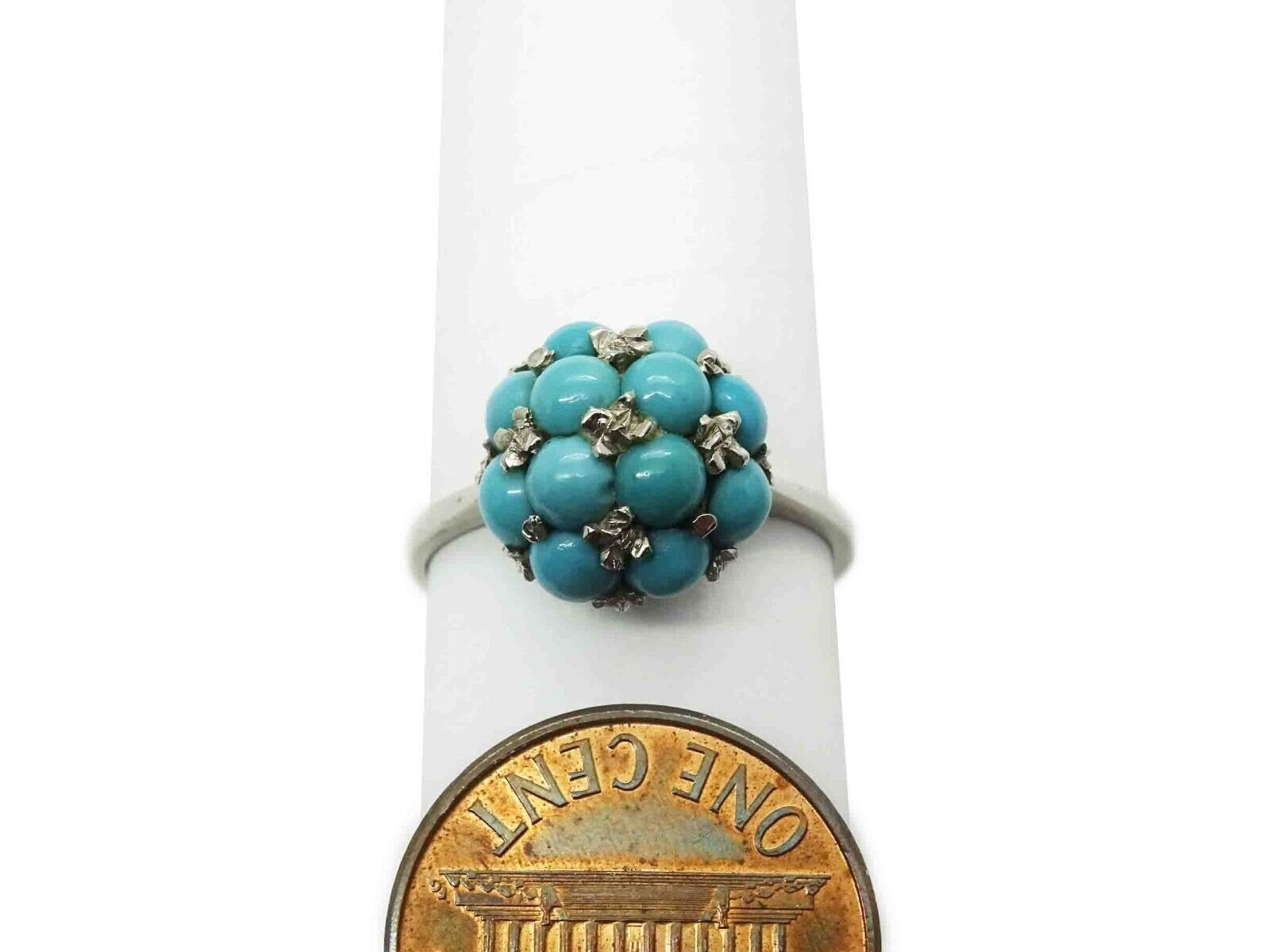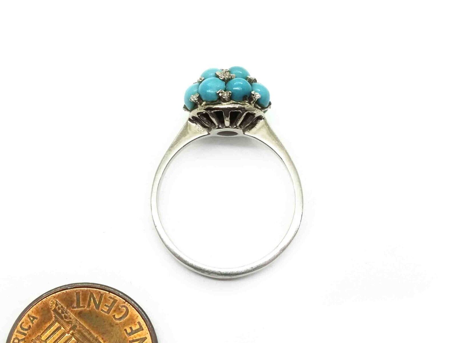 Persian Robin's Egg Blue Turquoise Cluster Pave Set Ring 18k White Gold Sz 7.25