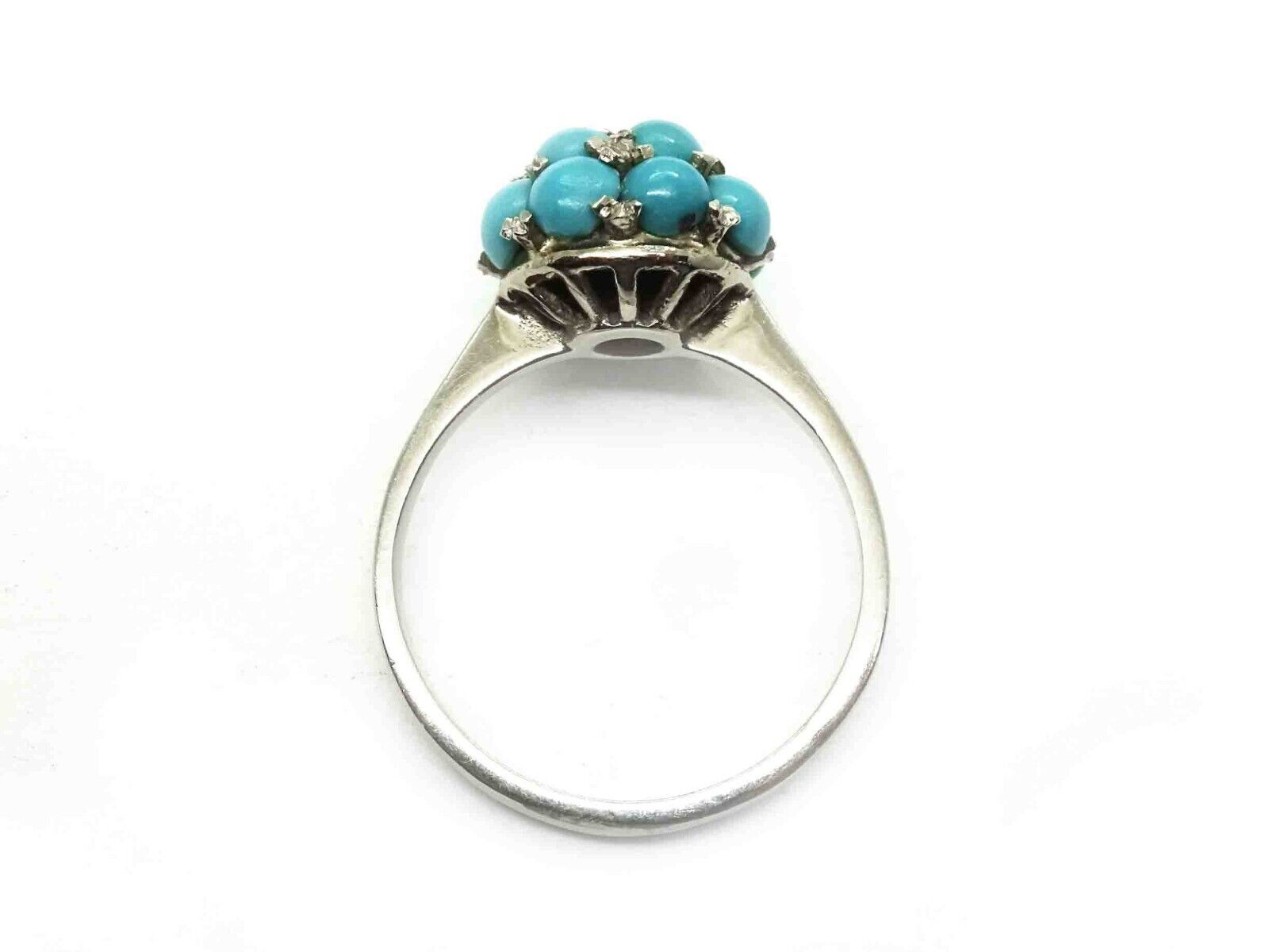 Beautiful Persian robin’s egg blue turquoise cluster pave set ring in 18k white gold.