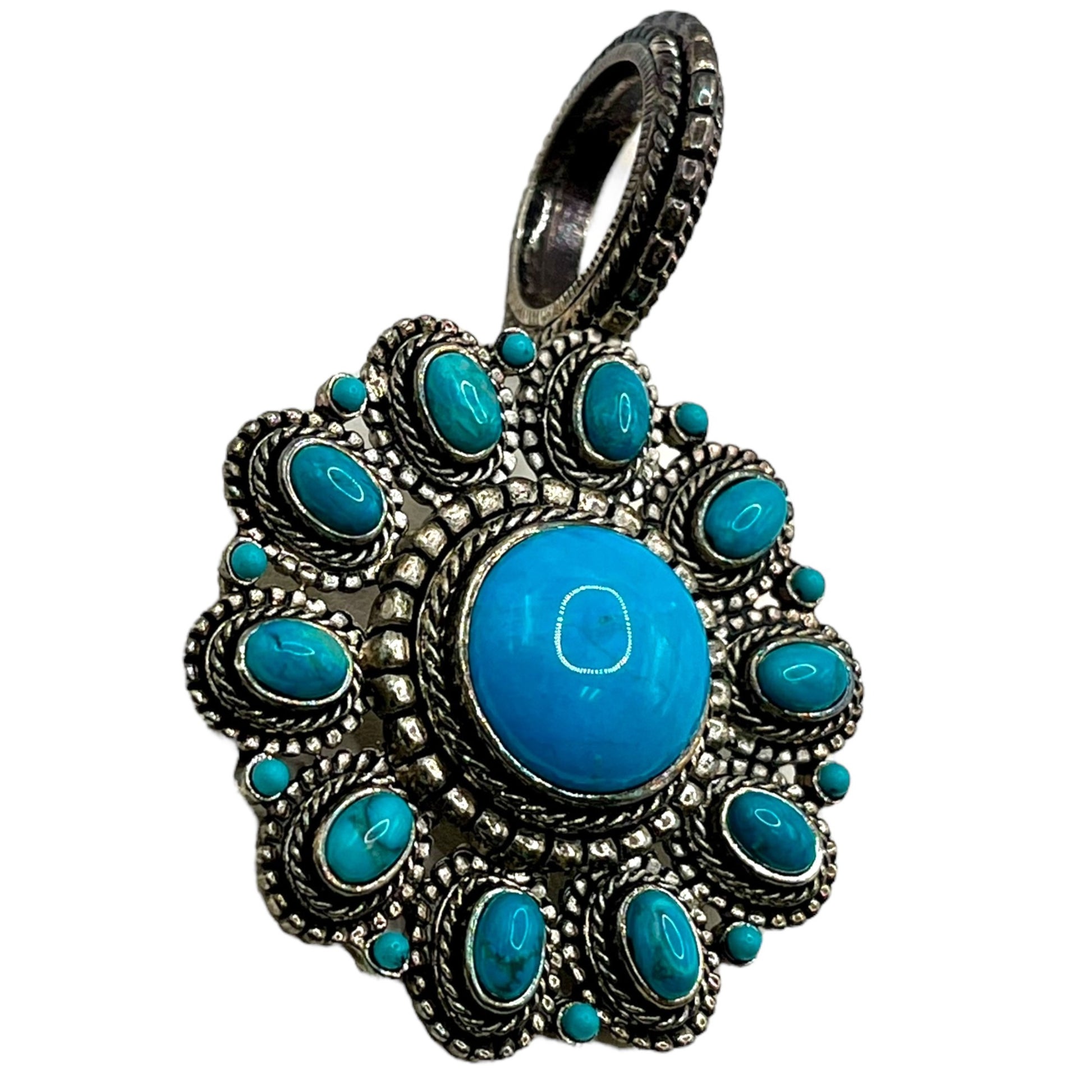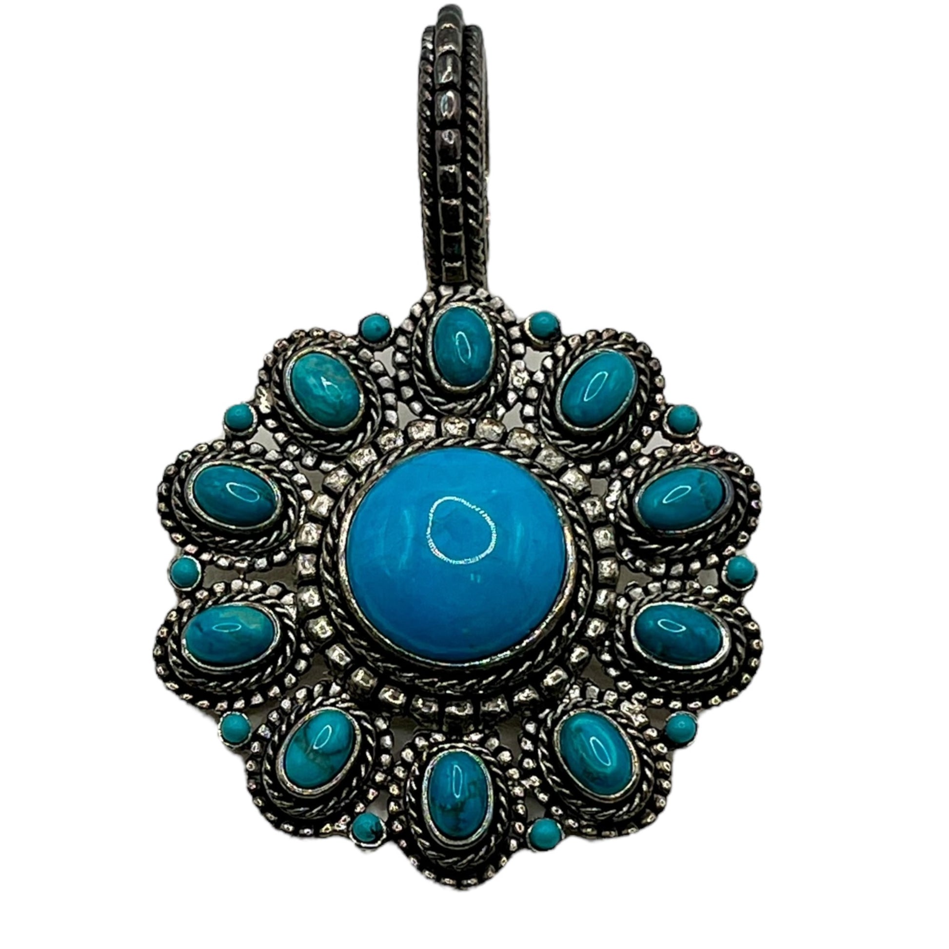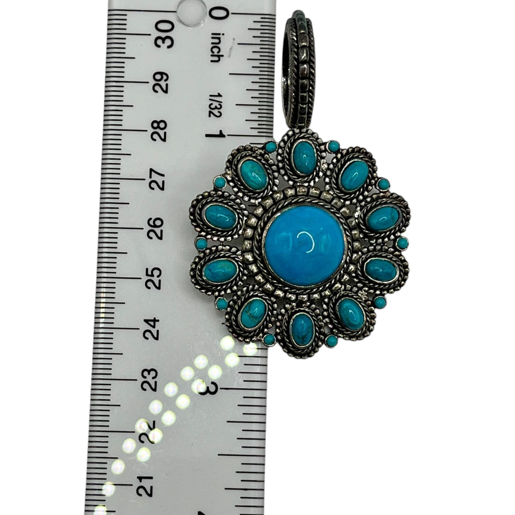 R.J. Graziano Faux Turquoise Silver Plated Pendant Flower Southwestern Bohemian