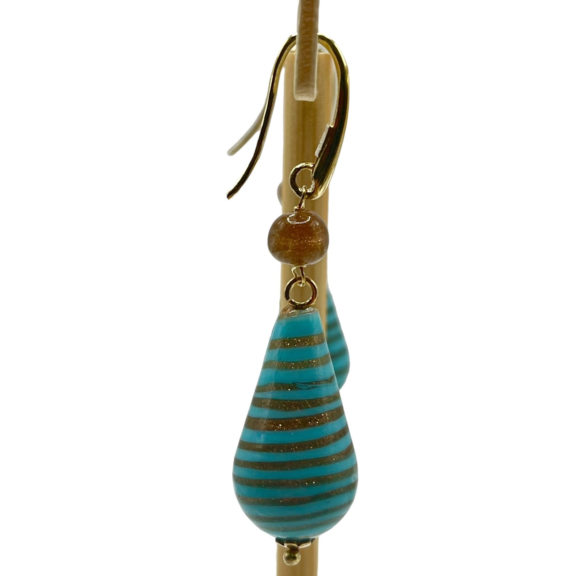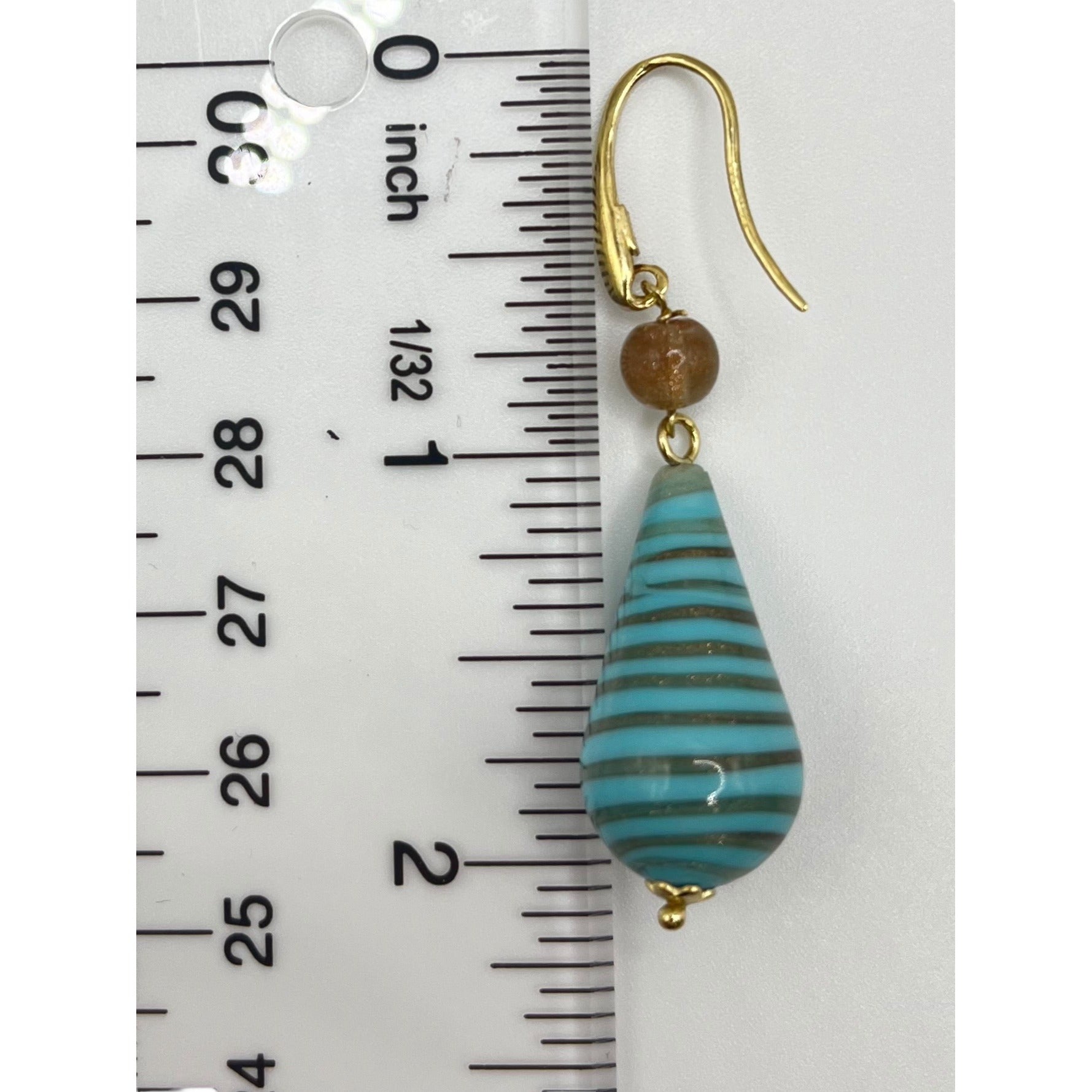 RCI Sterling Silver Gold Layered Teardrop Venetian Glass Dangle Earrings Italy