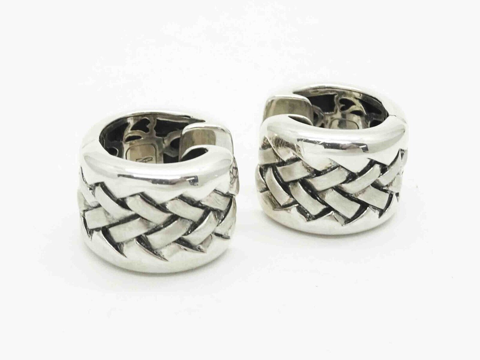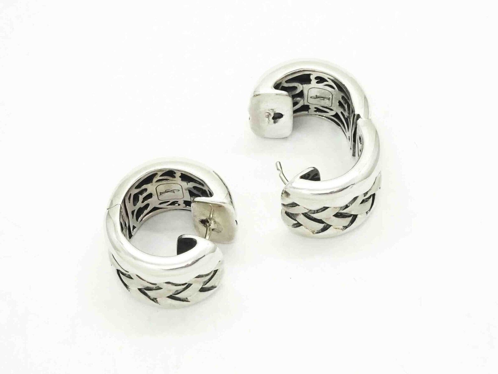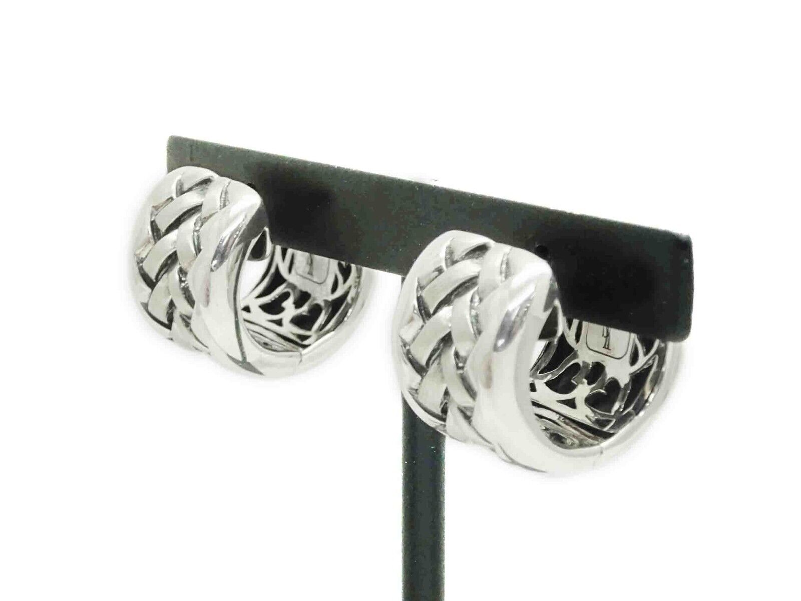 Scott Kay designer basket weave heart filigree huggie hoop earrings in sterling silver.