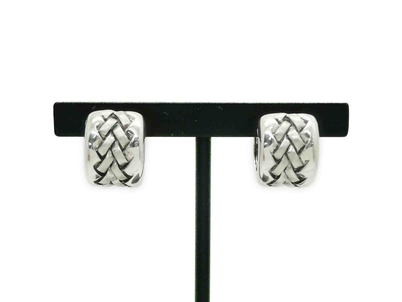 Scott Kay Designer Basket Weave Heart Filigree Huggie Earrings Sterling Silver