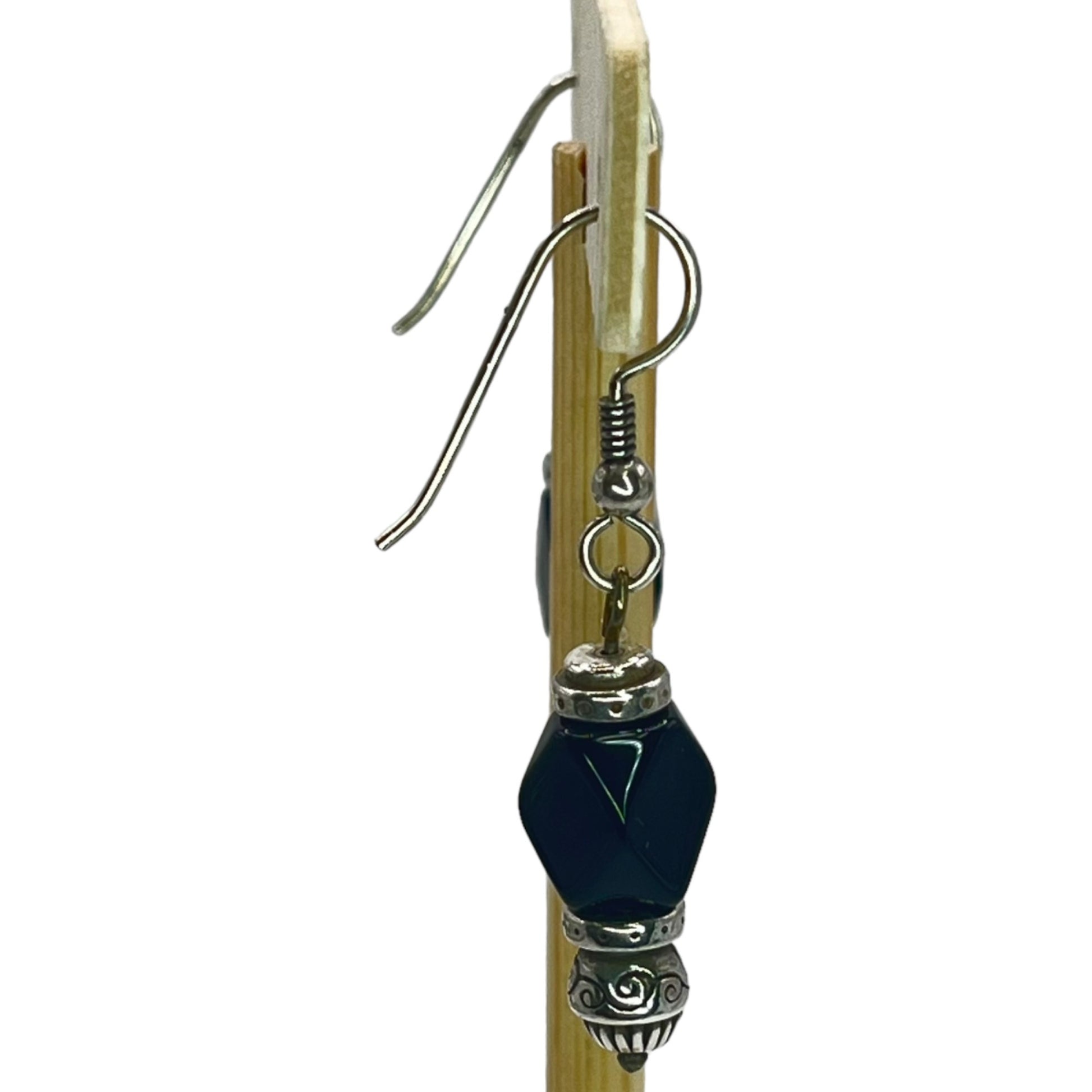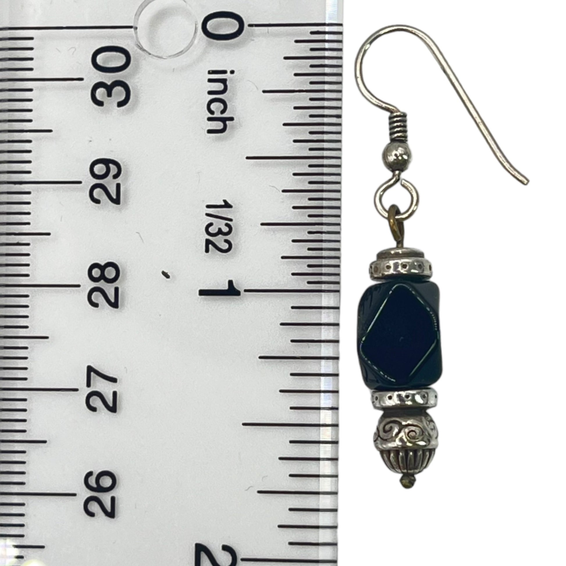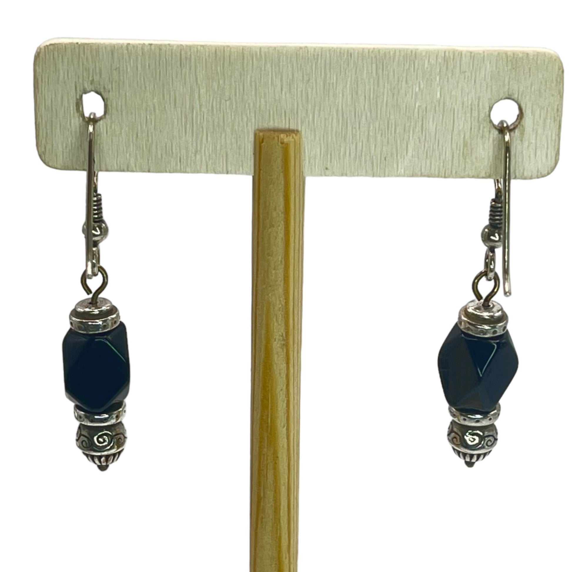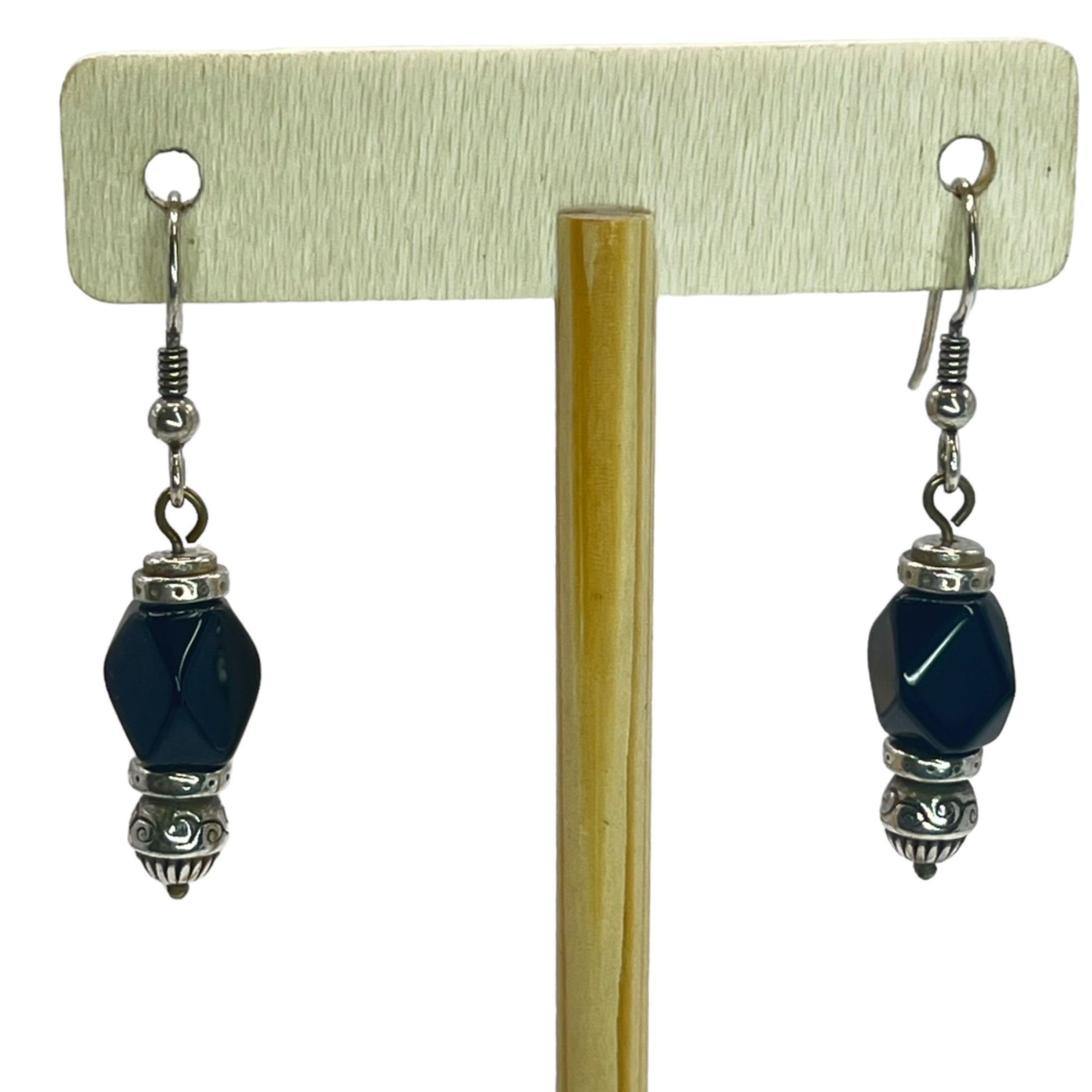 Silver Beaded Black Womens Dangle Drop Earrings Artisian Bohemian Boho