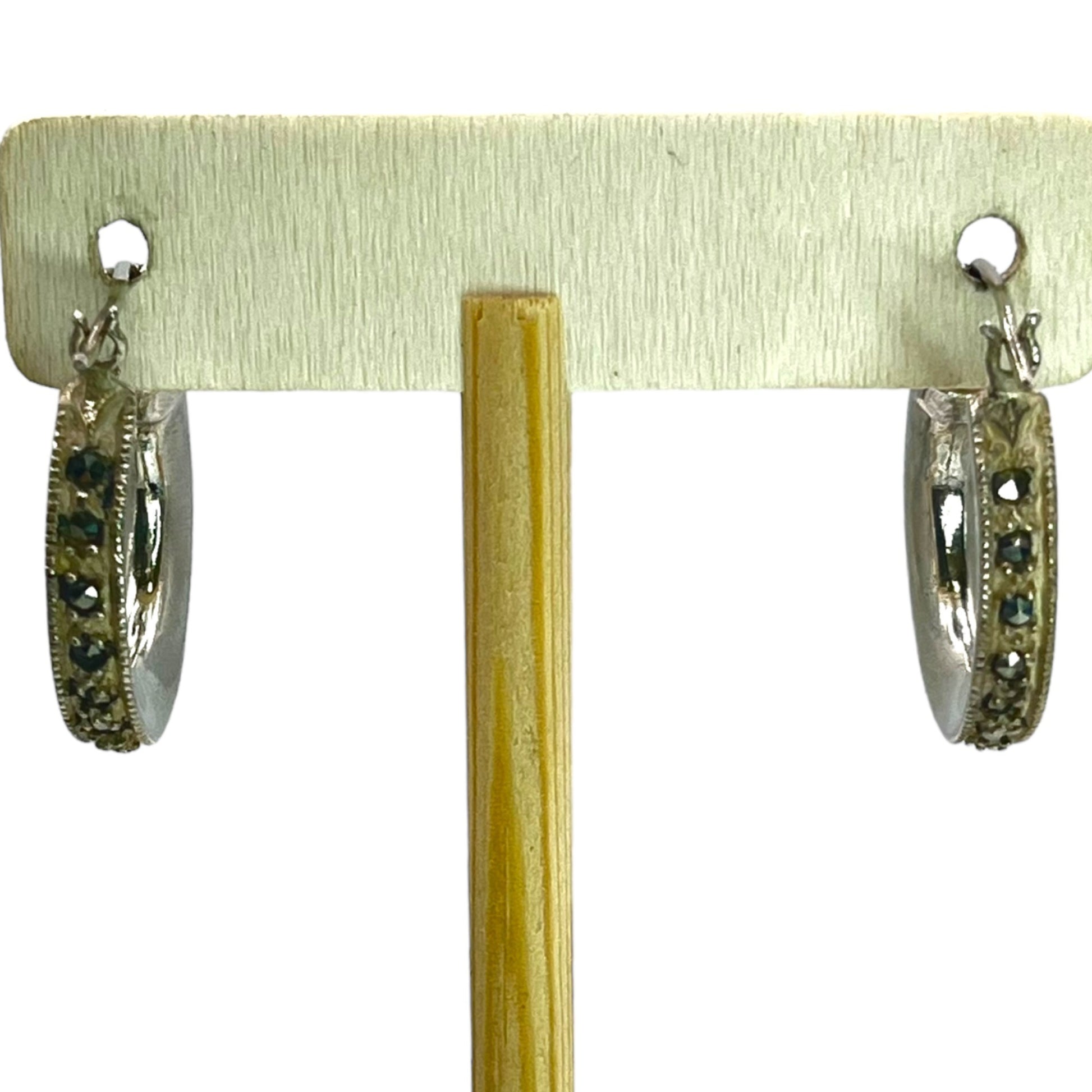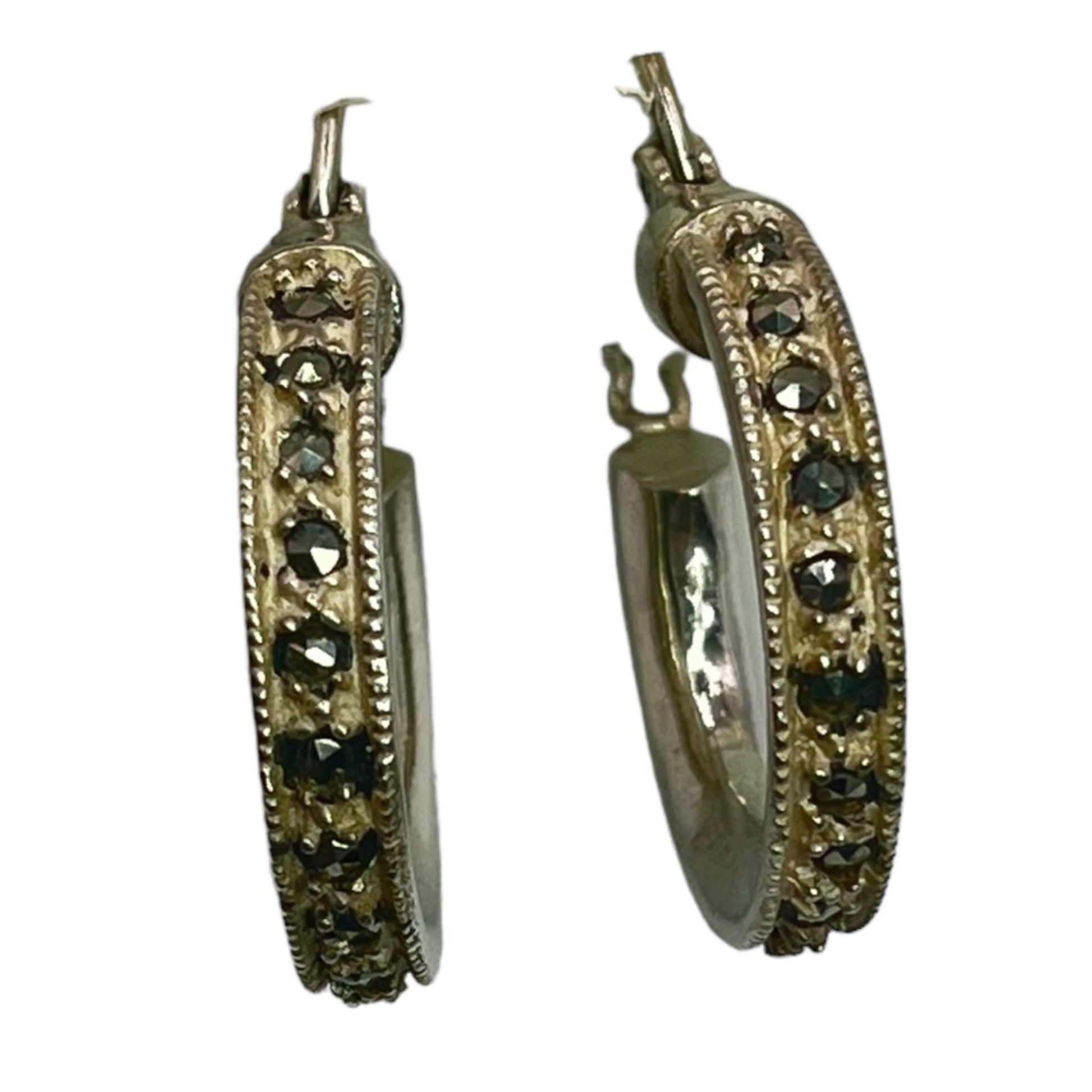 Silver Marcasite Womens Hoop Dangle Earrings Circular Round Classic