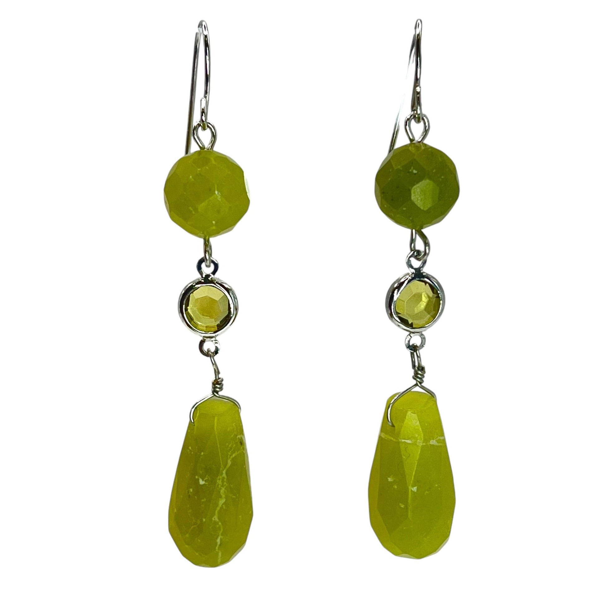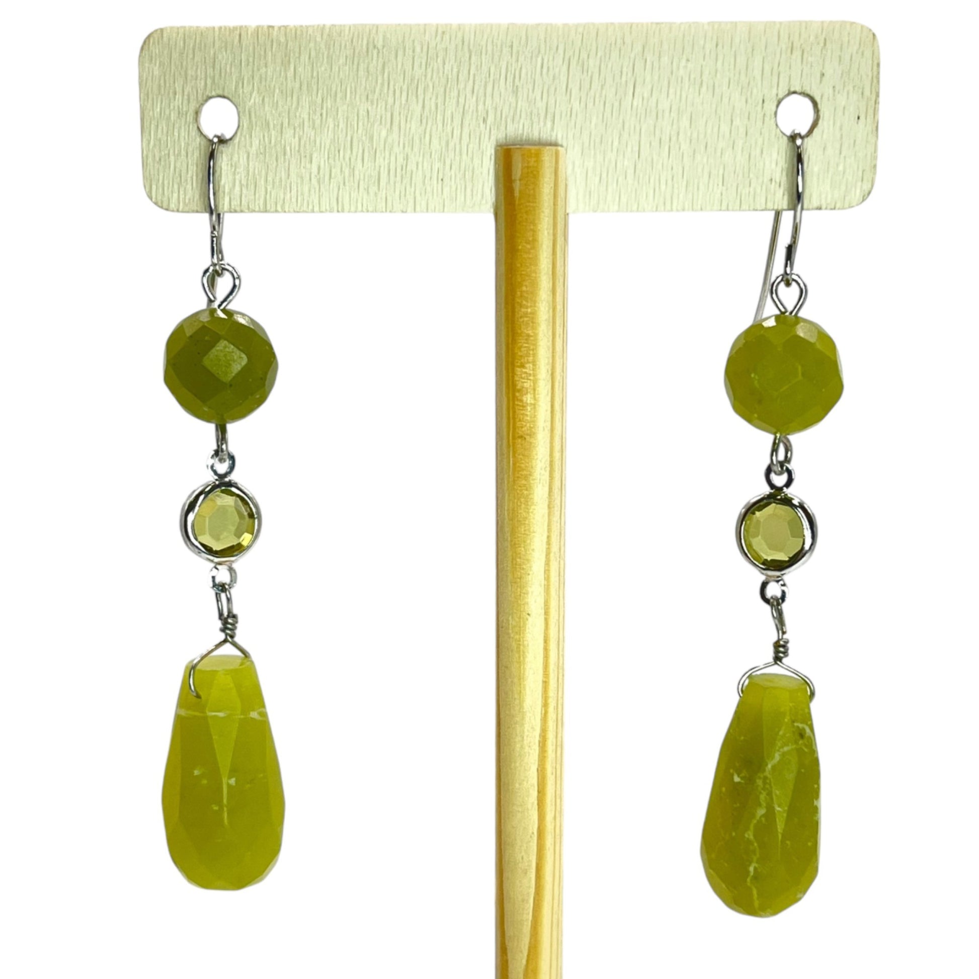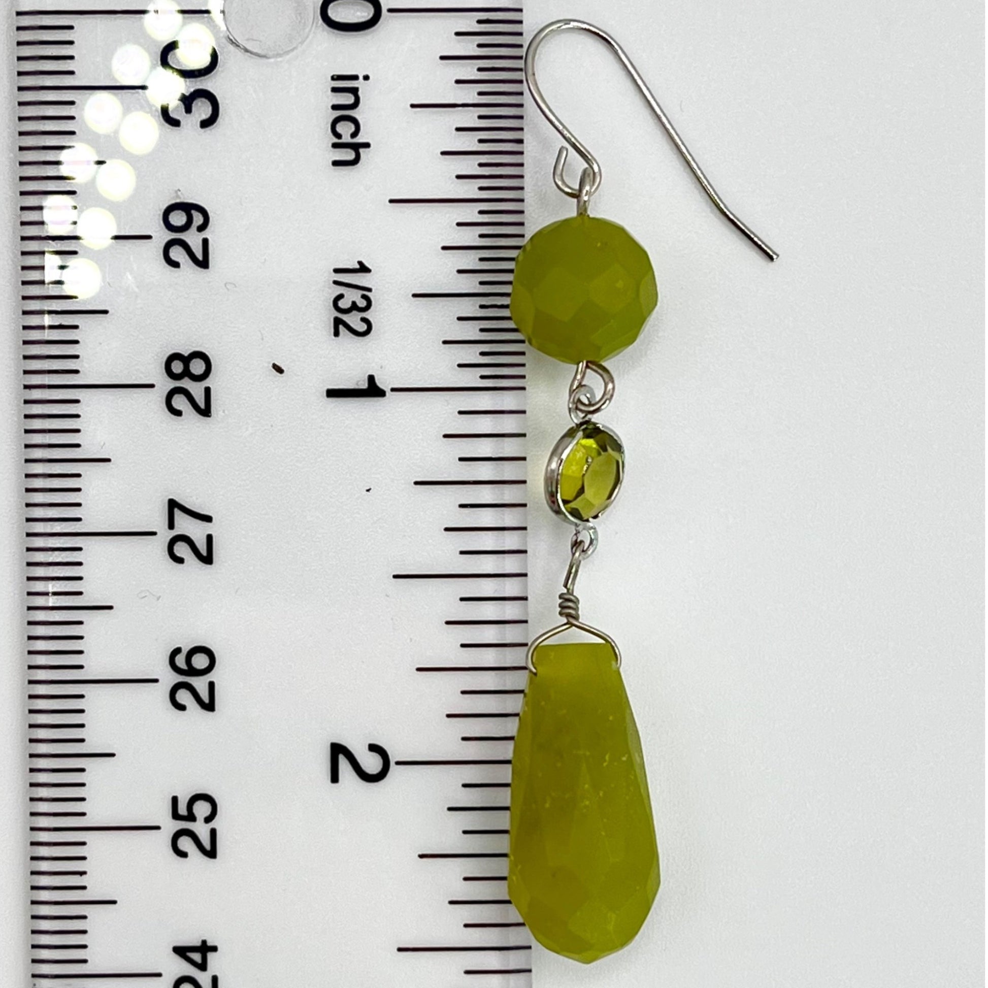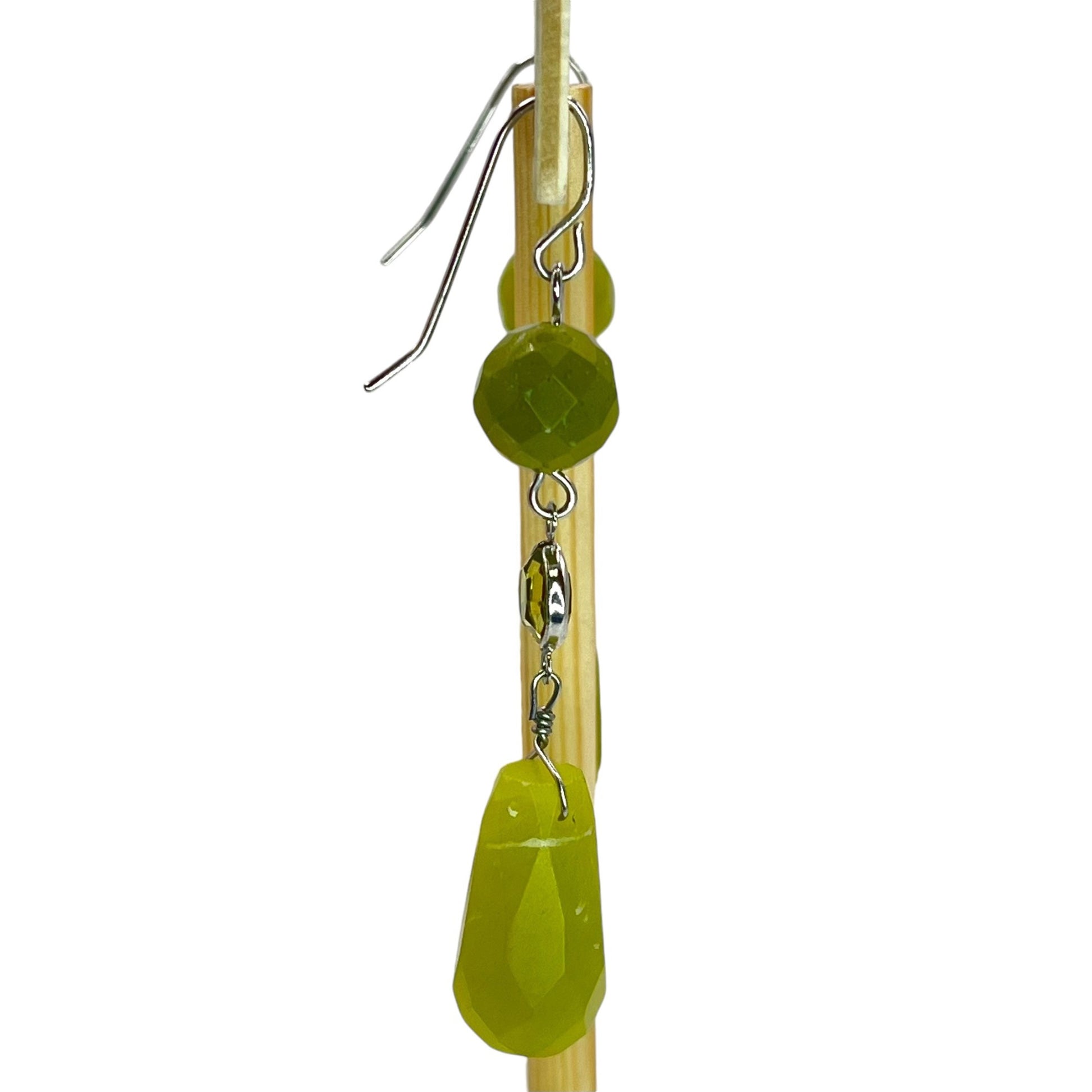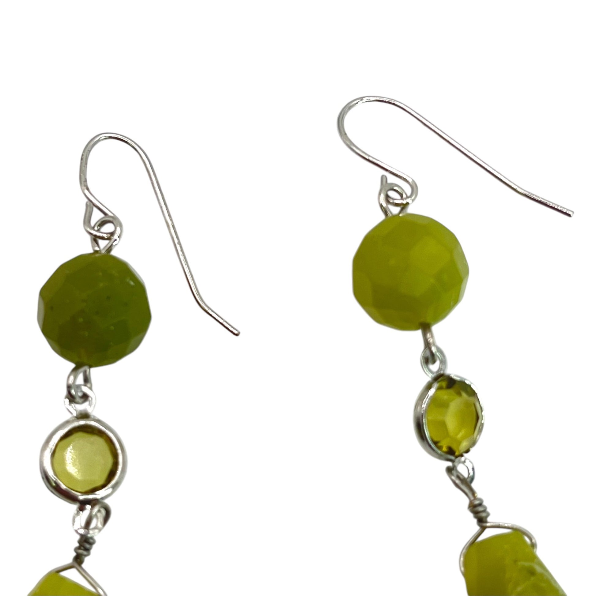 Silver Tone Beaded Drop Dangle Womens Earrings Green Earthy Trendy Bohemian