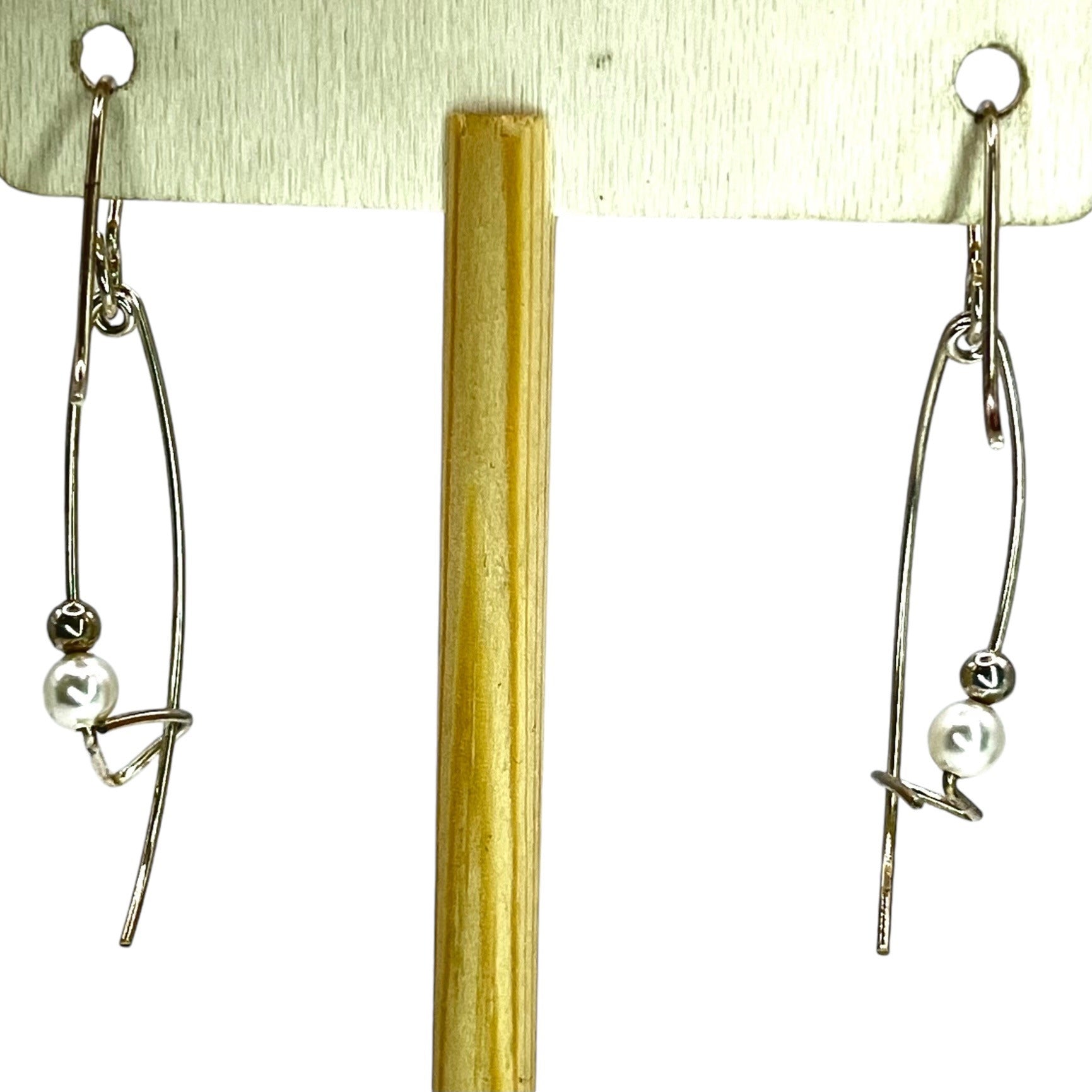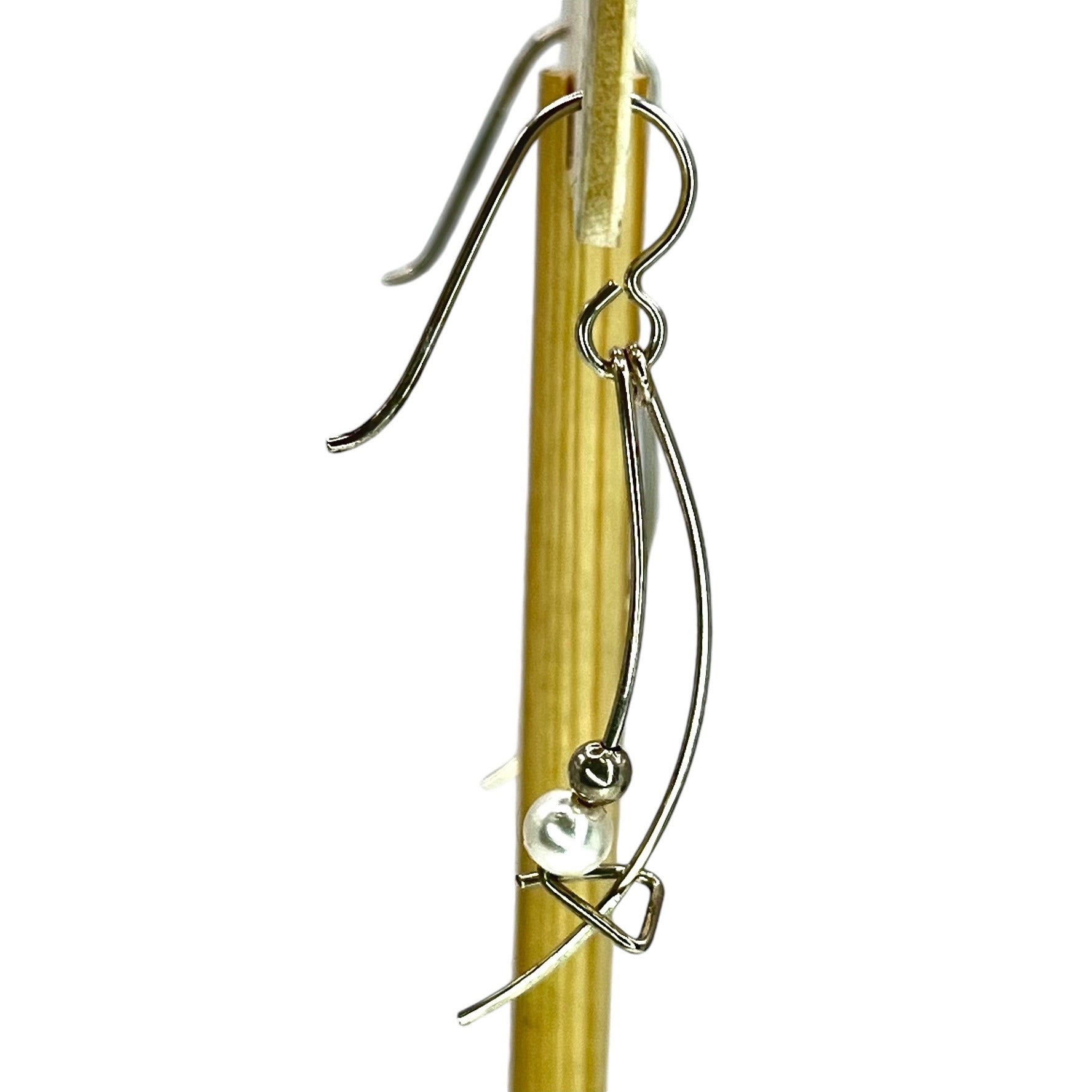 Silver Tone Dangle Drop Earrings Faux Pearl Abstract Geometric Lightweight