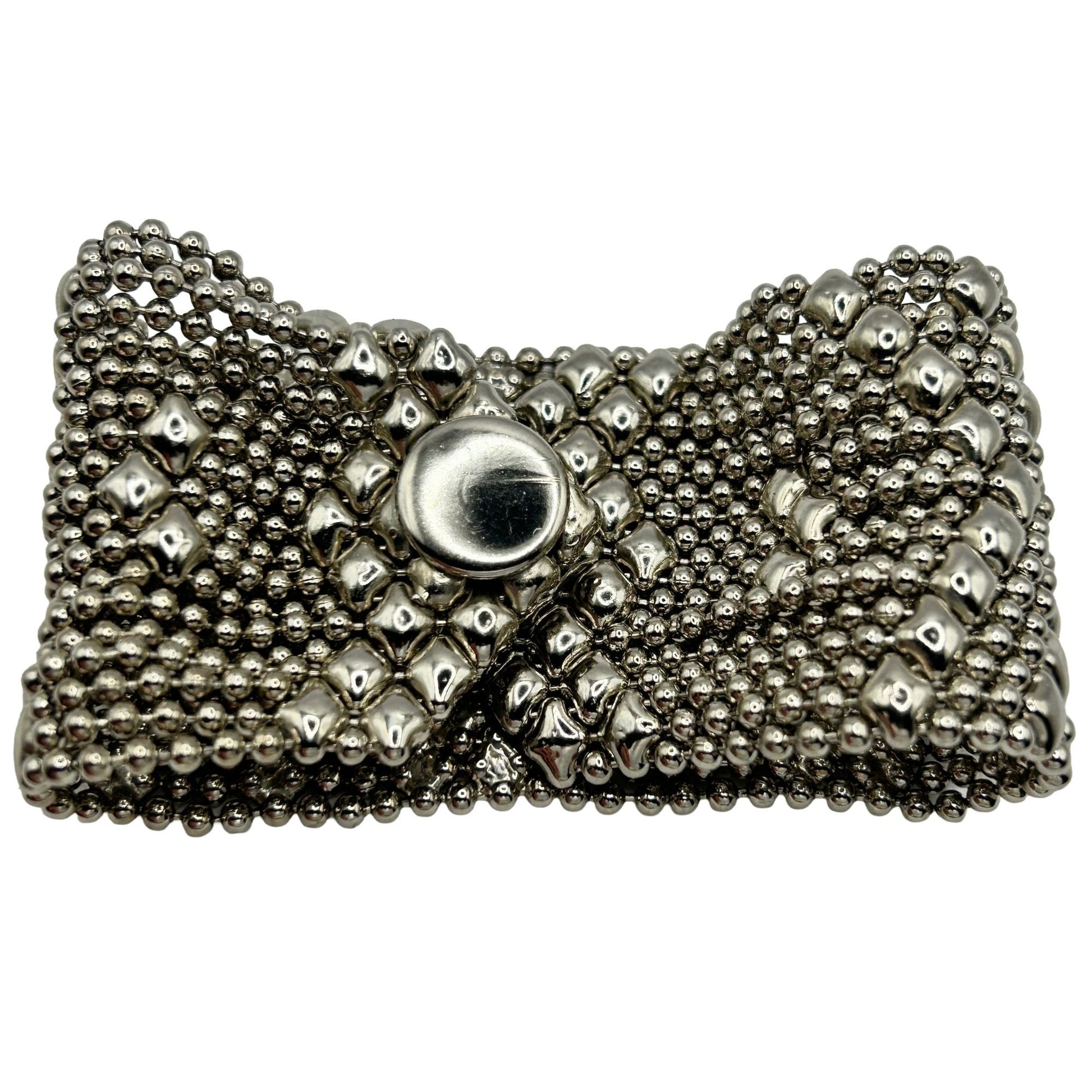 Silver Tone Liquid Metal Bracelet 1.5" Wide Mesh Style X Pattern 7" Skyler White