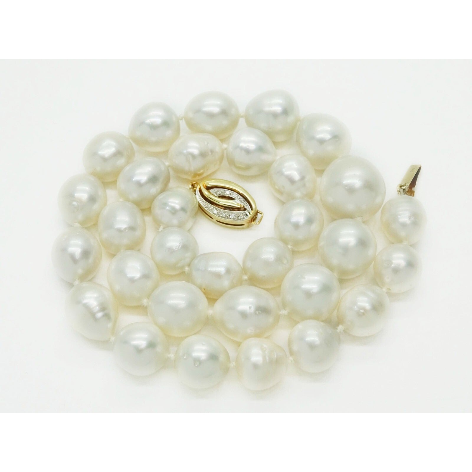 South Sea Pearl Bead Necklace with Diamond 14k Gold Clasp & GIA Report