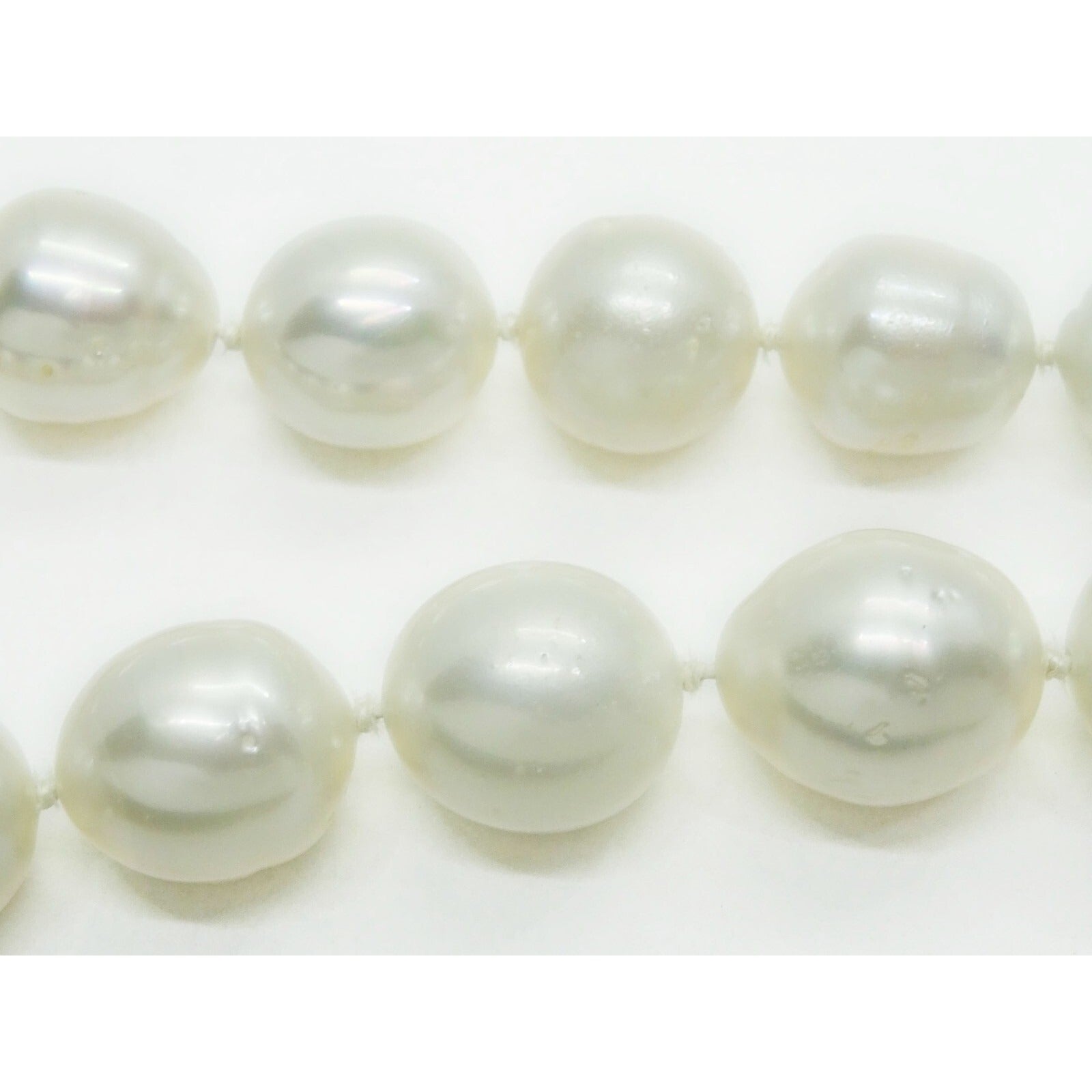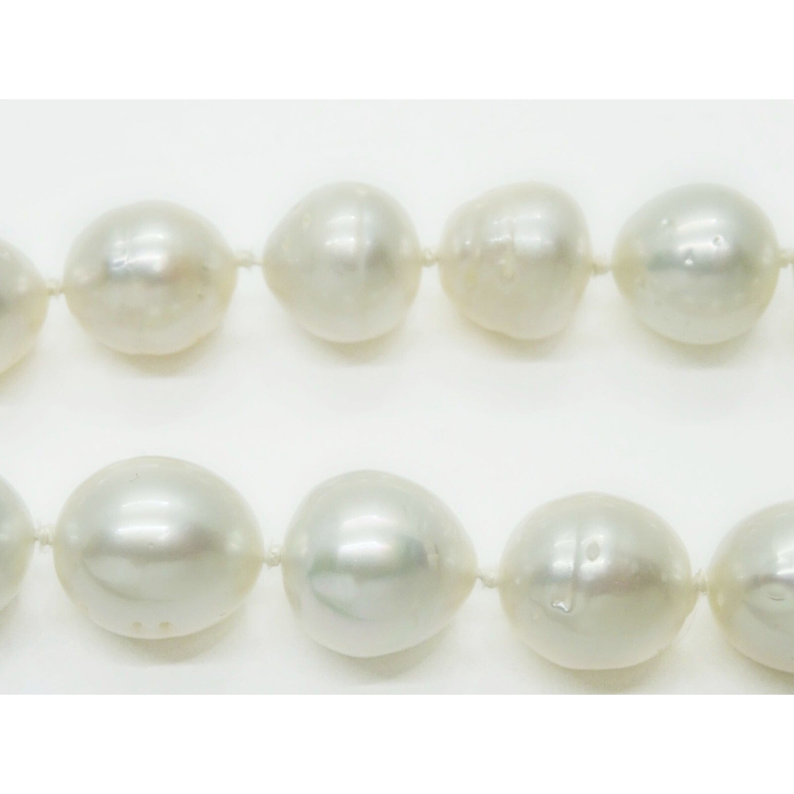 Strung with 31 saltwater South Sea cultured pearl beads, with good luster, heavily spotted surface, and fair matching.