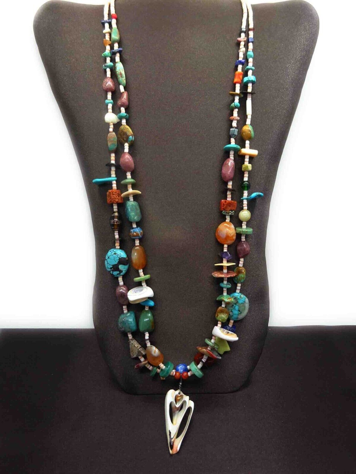 Southwest Heishi Shell & Gemstone Bead Double Strand Treasure Necklace, 30"
