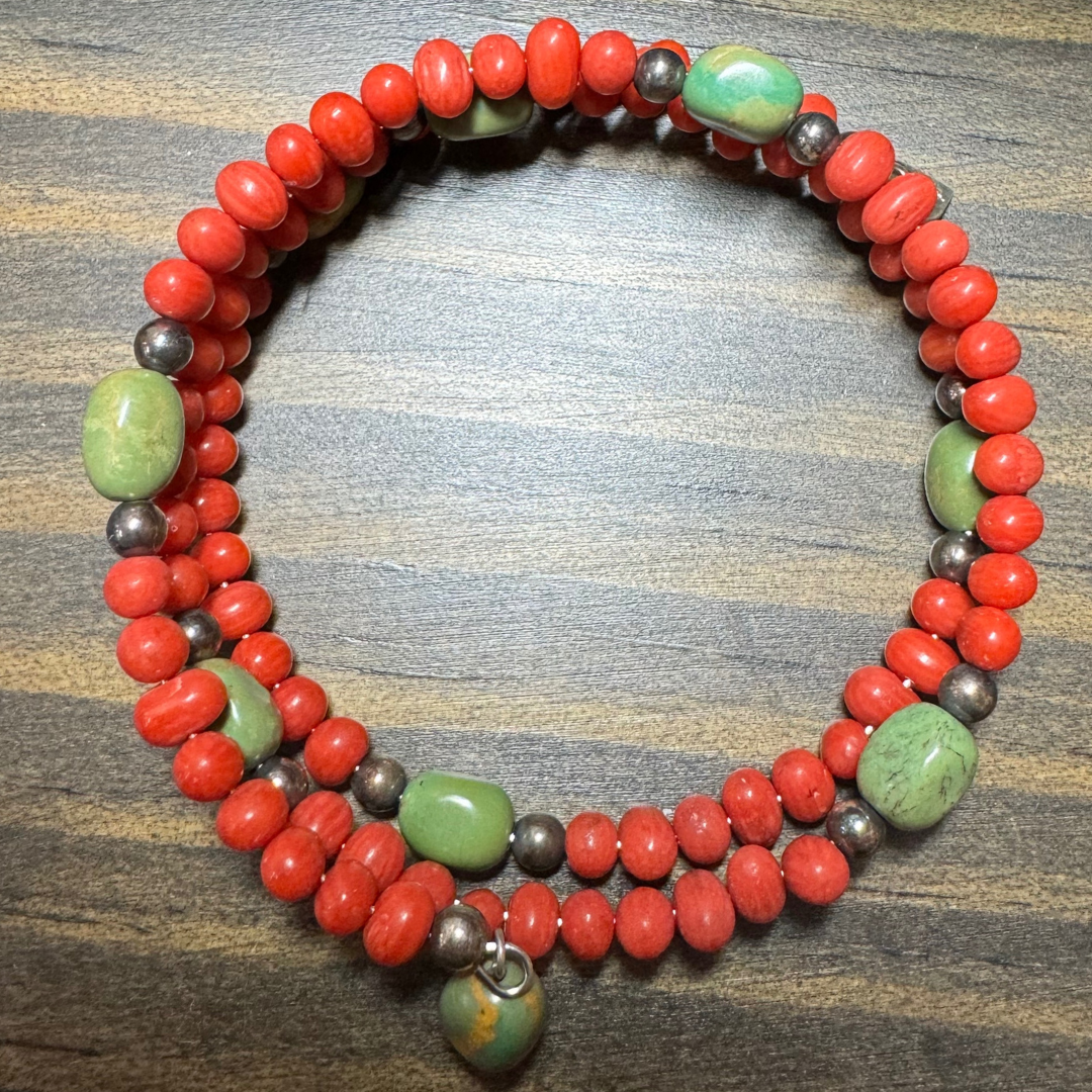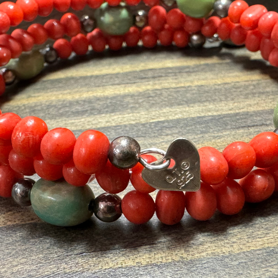 Southwestern Q.T. Coral and Turquoise SS Branch Bracelet