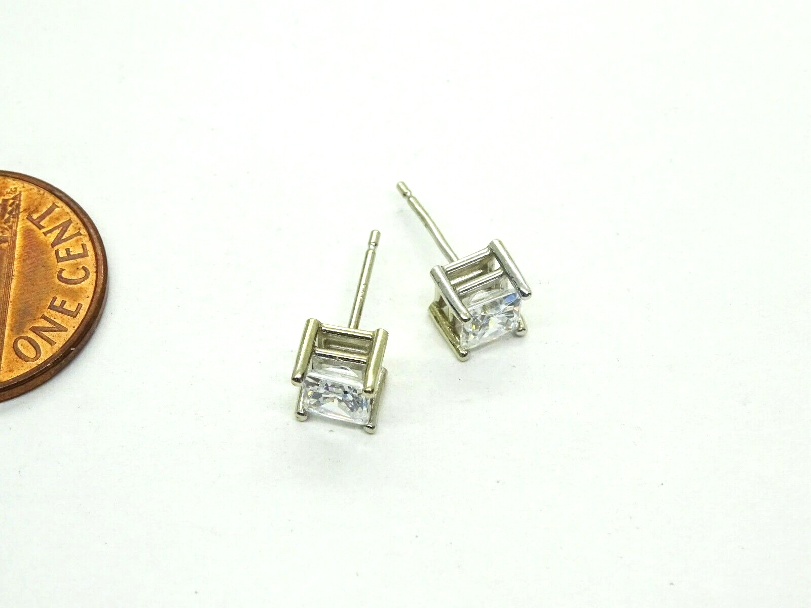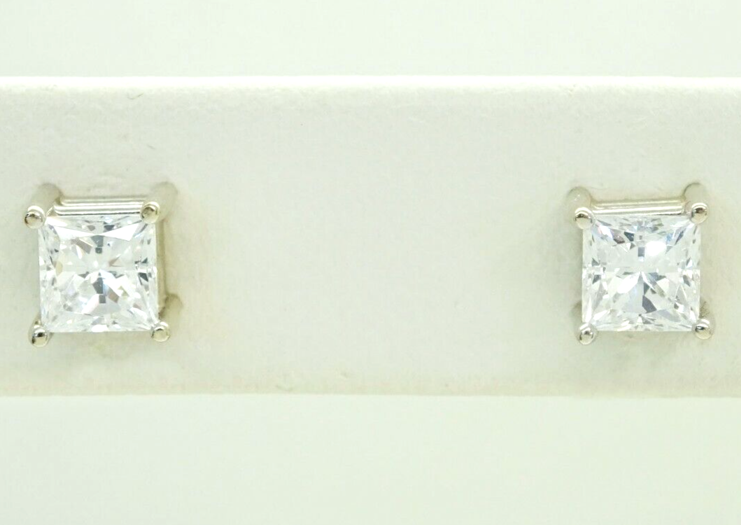 Pair of bright colorless CZ stud earrings in 14k white gold.