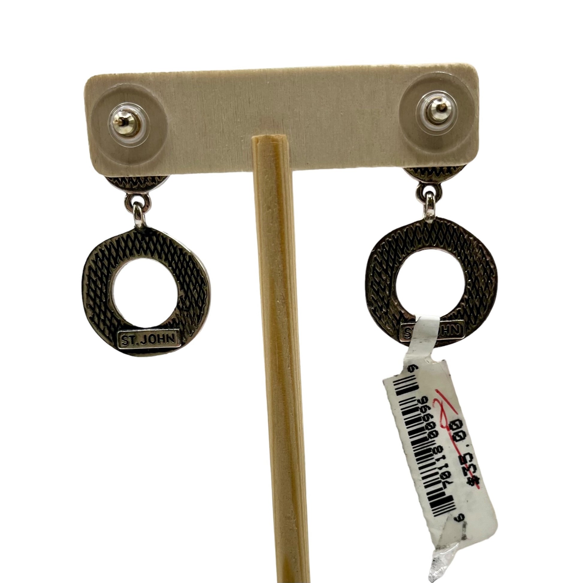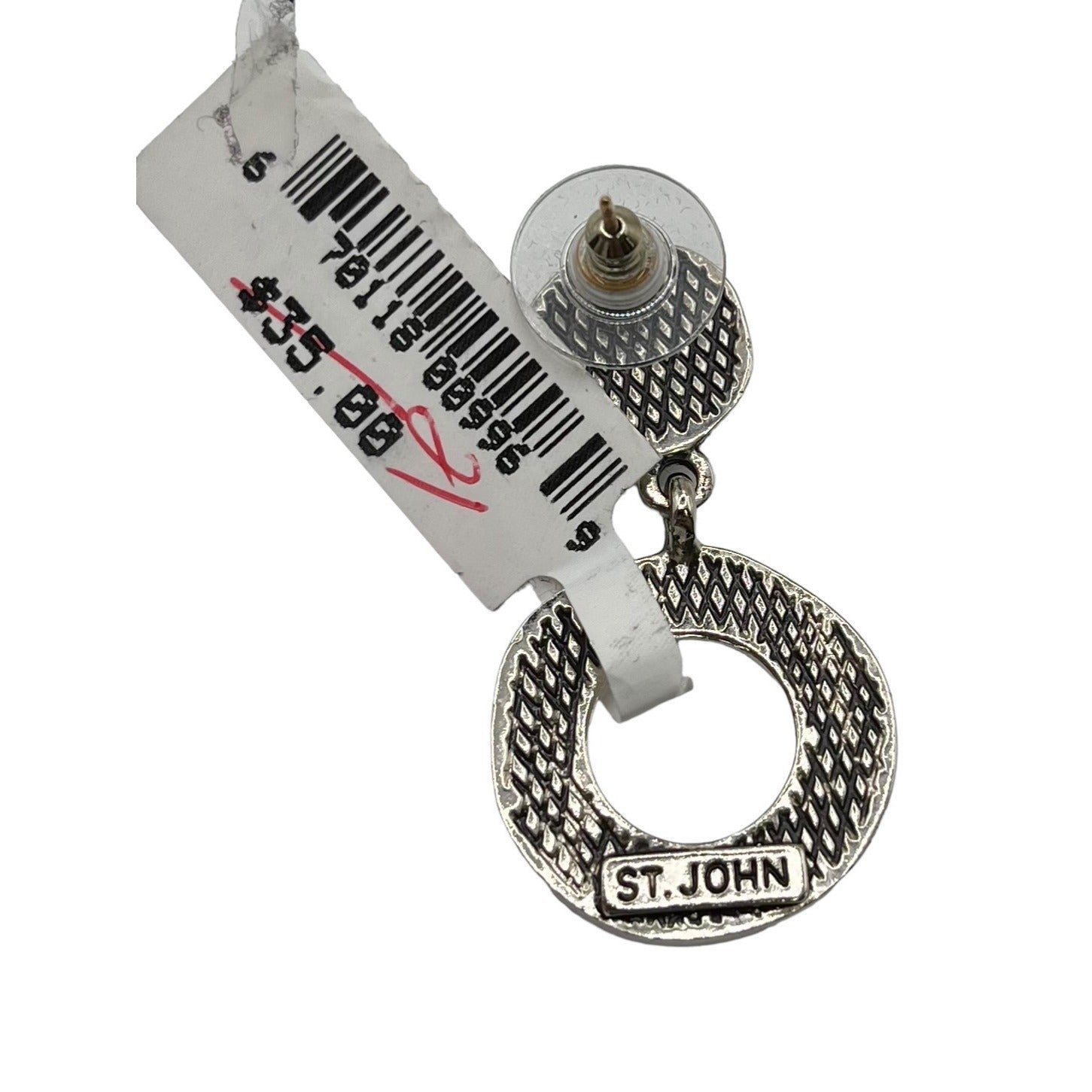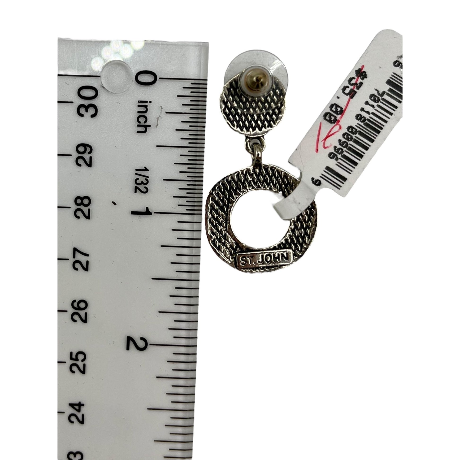 St. John Silver Tone Drop Stud Hammered Hoop Round Earrings Statement