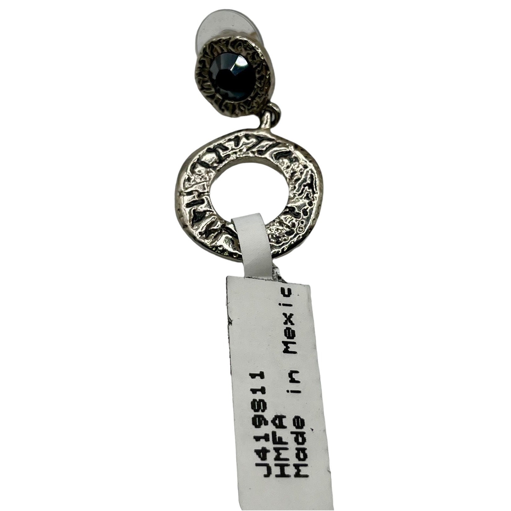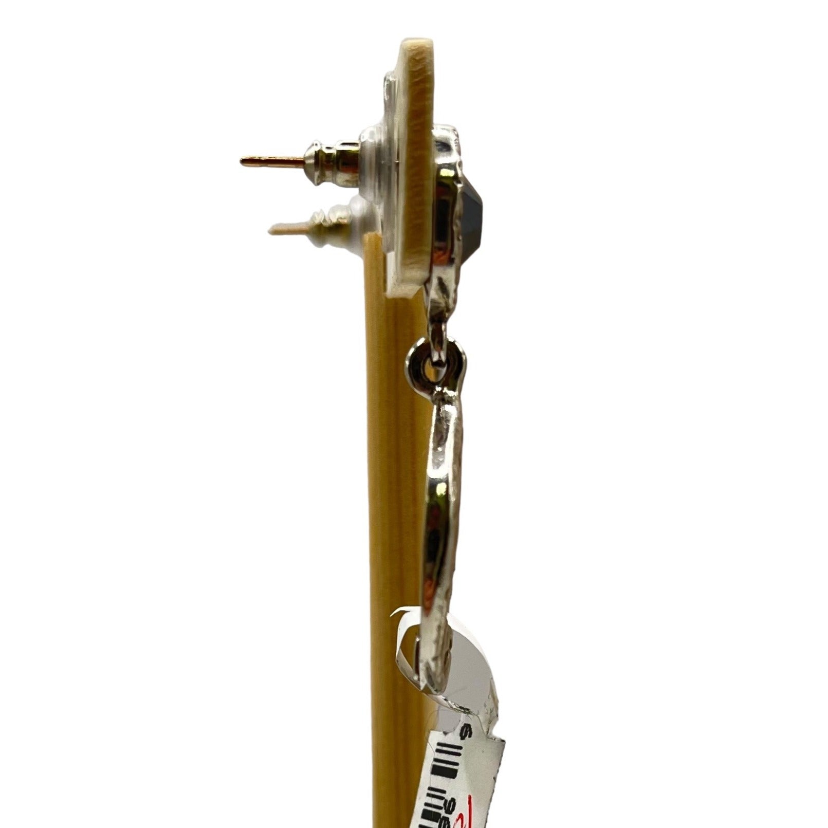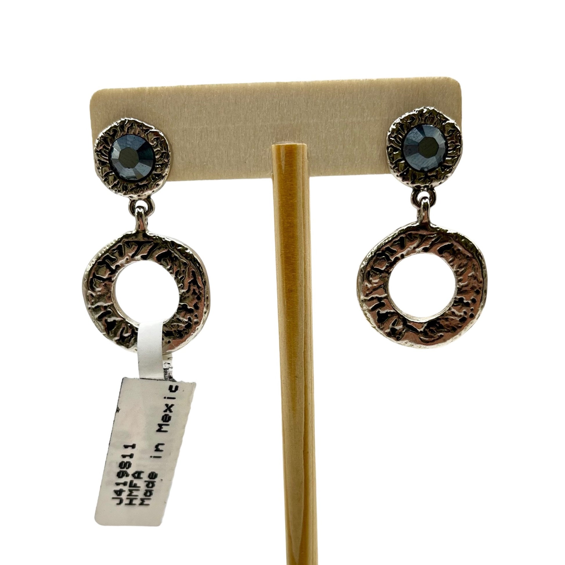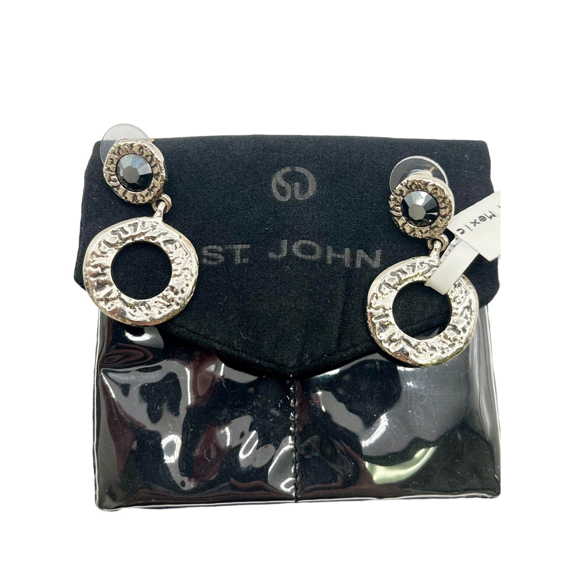 St. John Silver Tone Drop Stud Hammered Hoop Round Earrings Statement