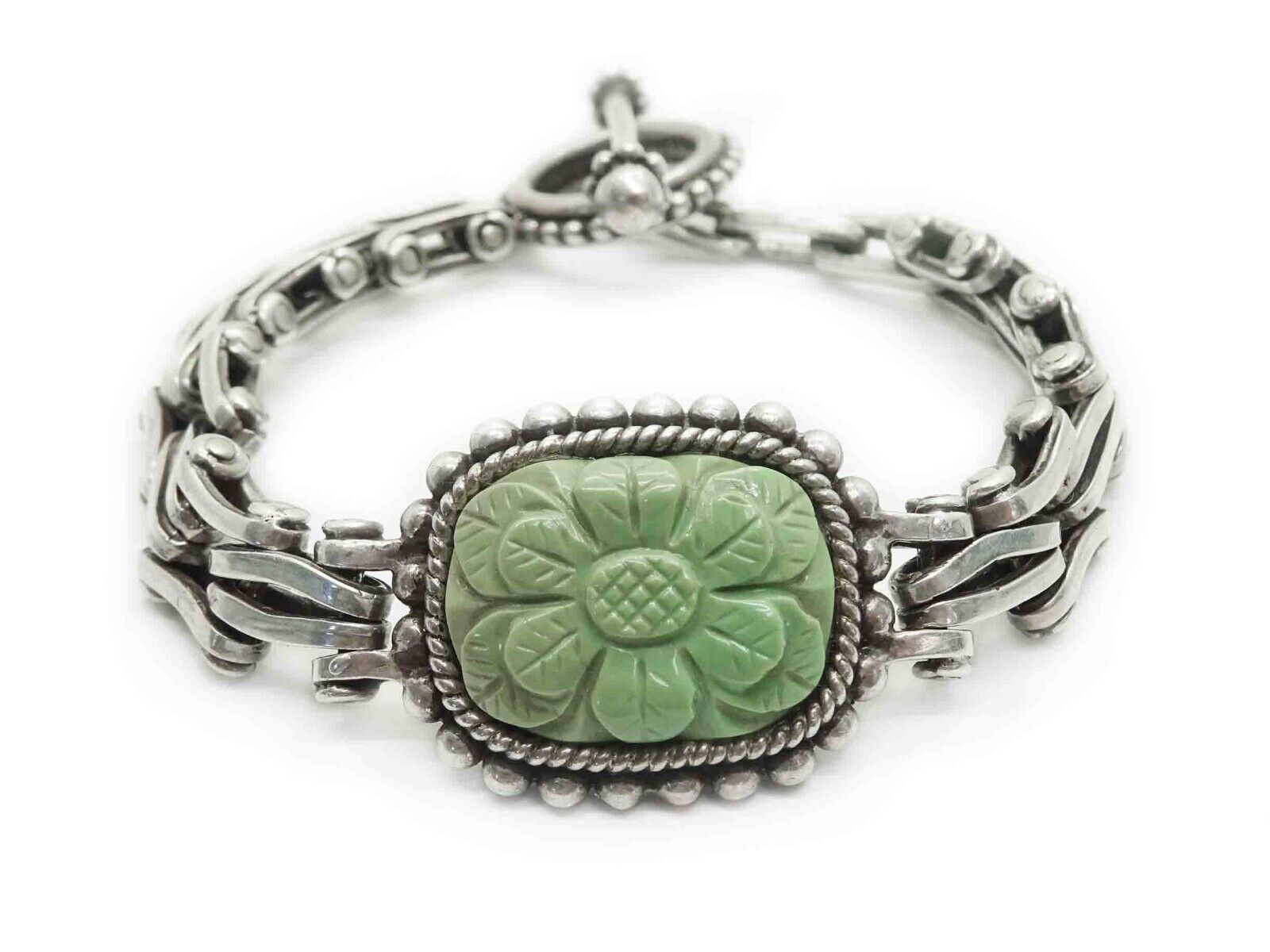 Stephen Dweck Design Carved Turquoise Motorcycle Chain Bracelet Sterling Silver