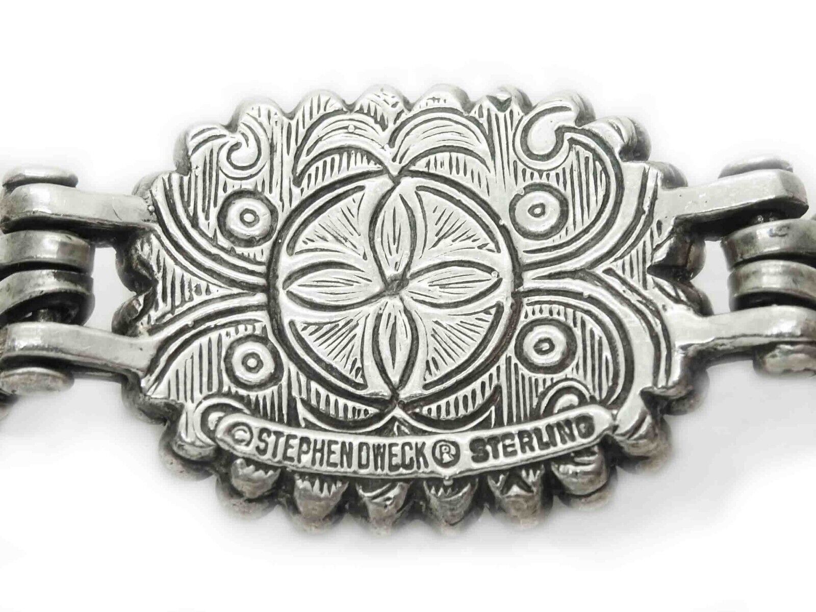 Stephen Dweck Designer Carved Turquoise Motorcycle Chain Bracelet Sterling Silver