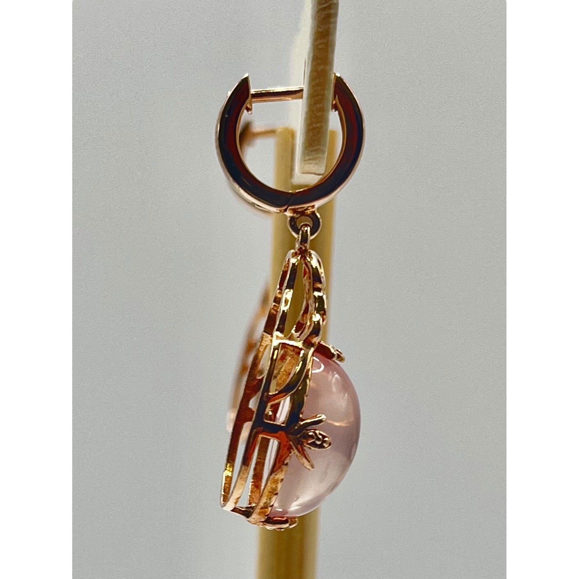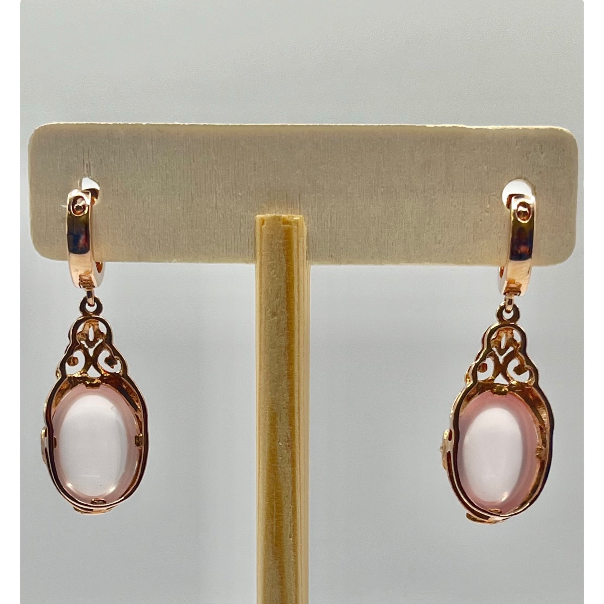 Sterling Plated 14K Rose Gold Vermeil Rose Quartz Filigree Dangle Earrings