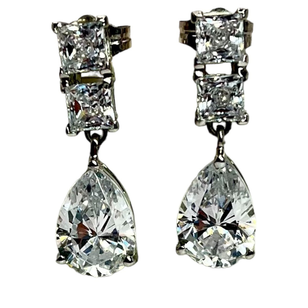Sterling Silver MEDA Cubic Zirconia Drop Dangle Earrings Formal Elegant Bridal