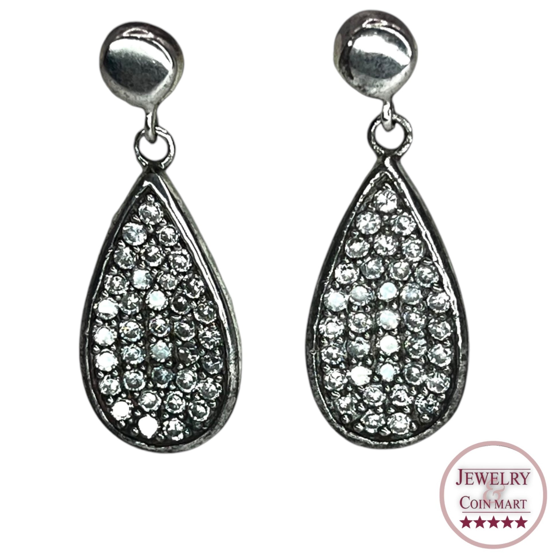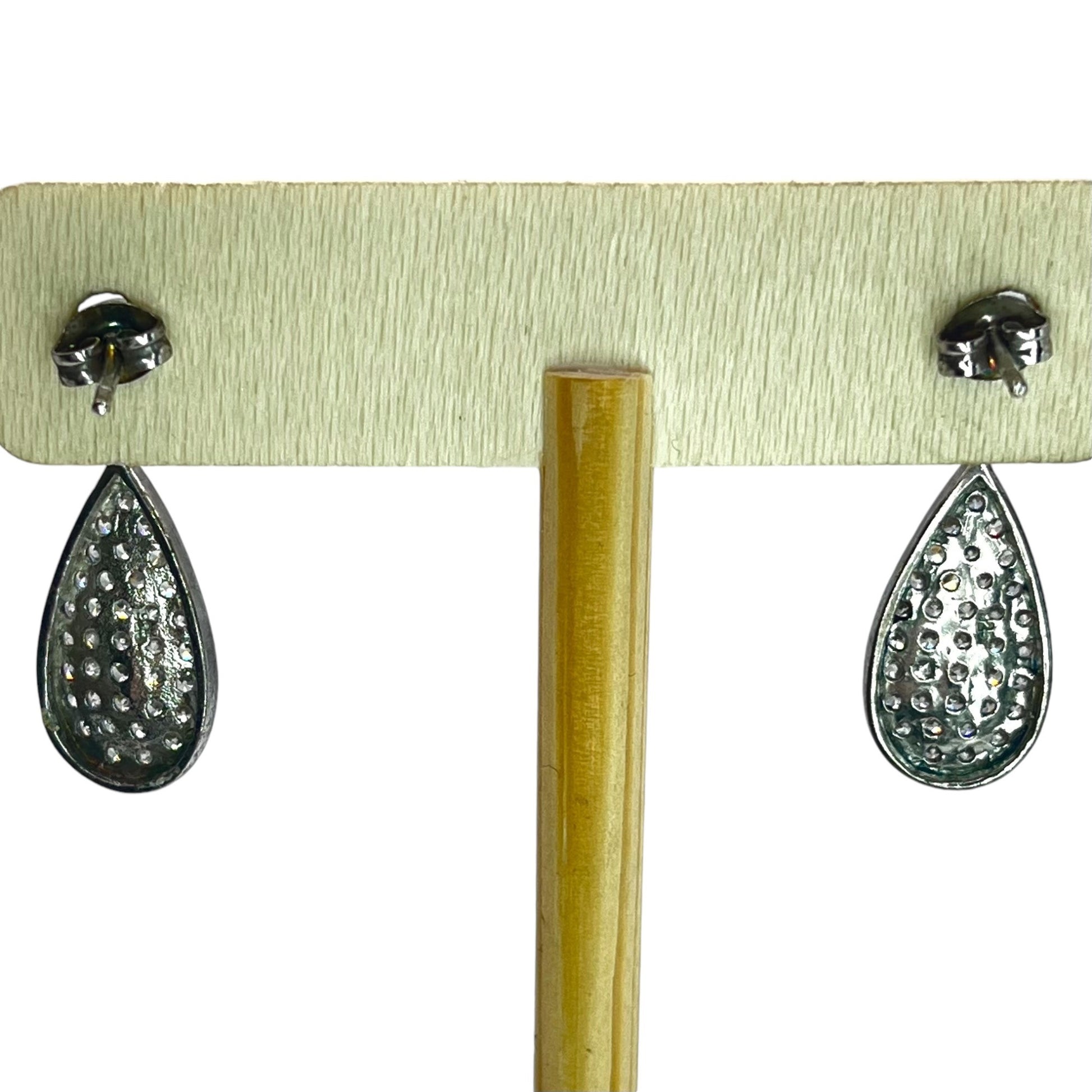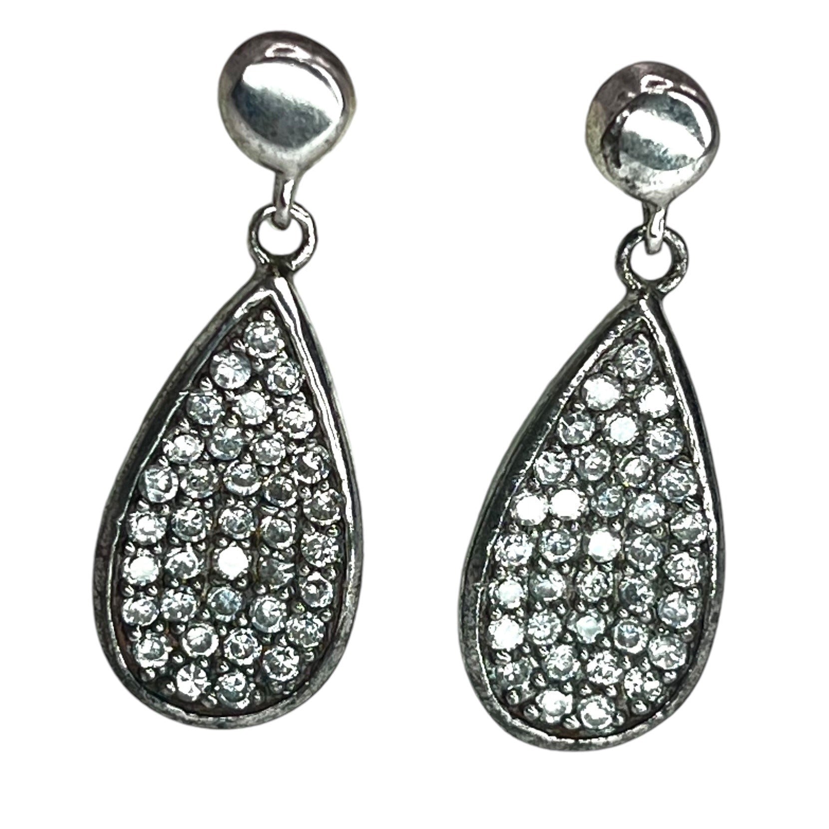 Sterling Silver Pave Cubic Zirconia Stone Drop Earrings Teardrop Formal Elegant