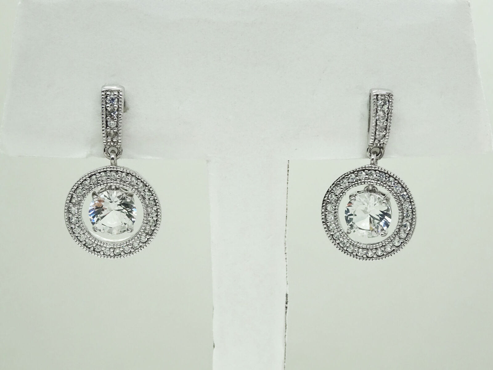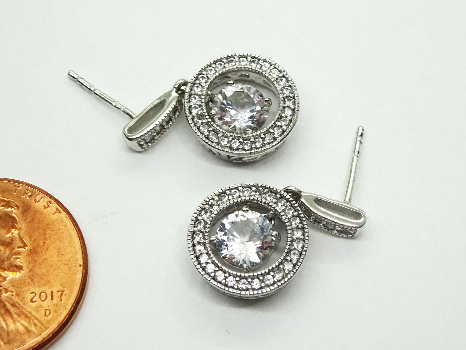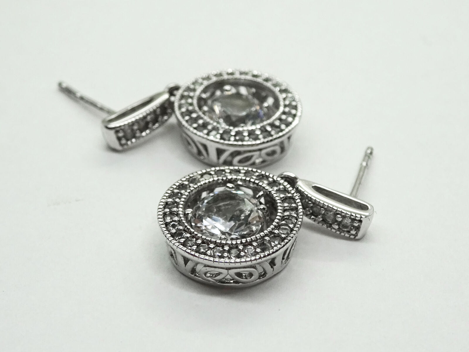 Round CZ Dangle Open Filigree Hoop Ring Drop Earrings Sterling Silver