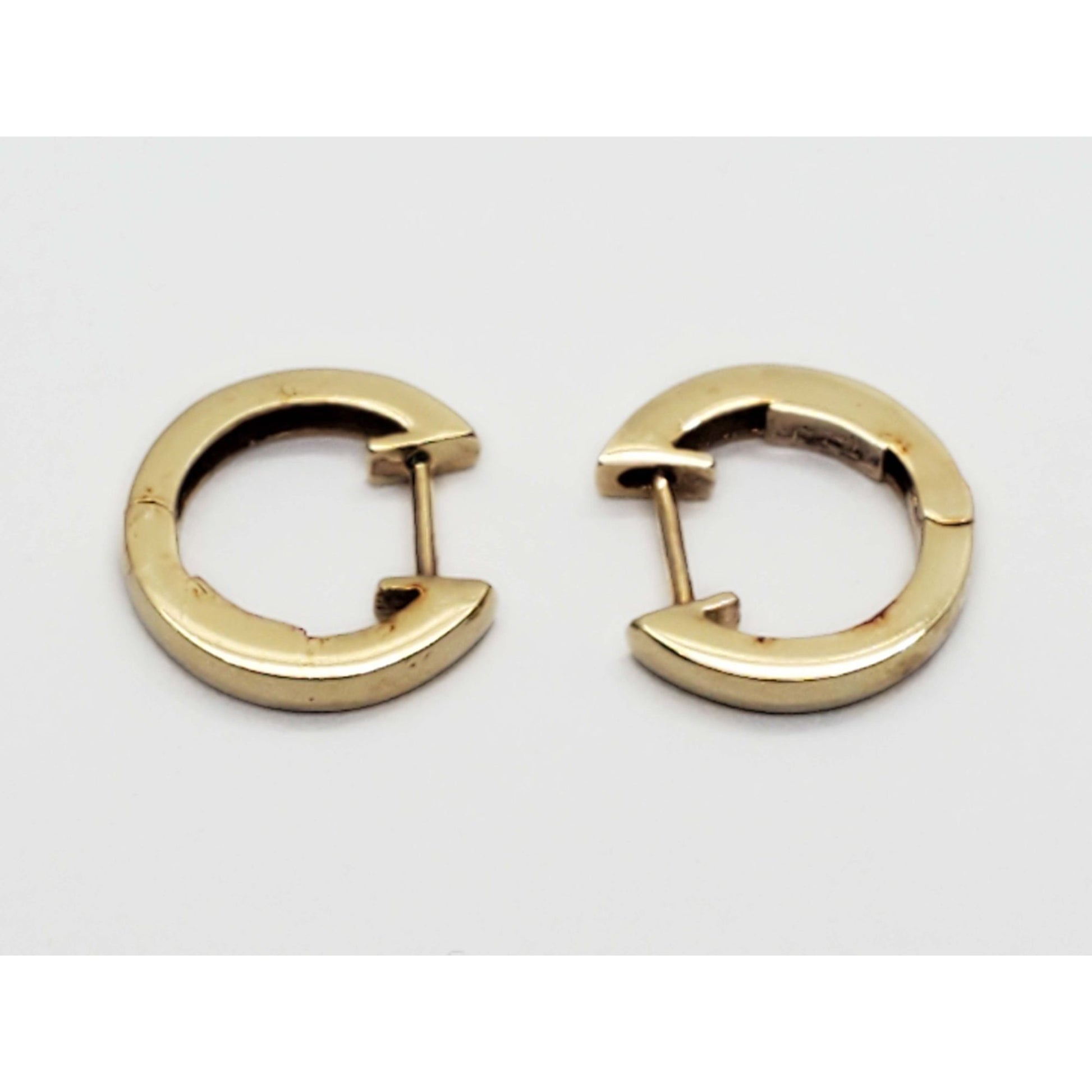 Pair of thin mini huggie hoop earrings in 14k yellow gold.