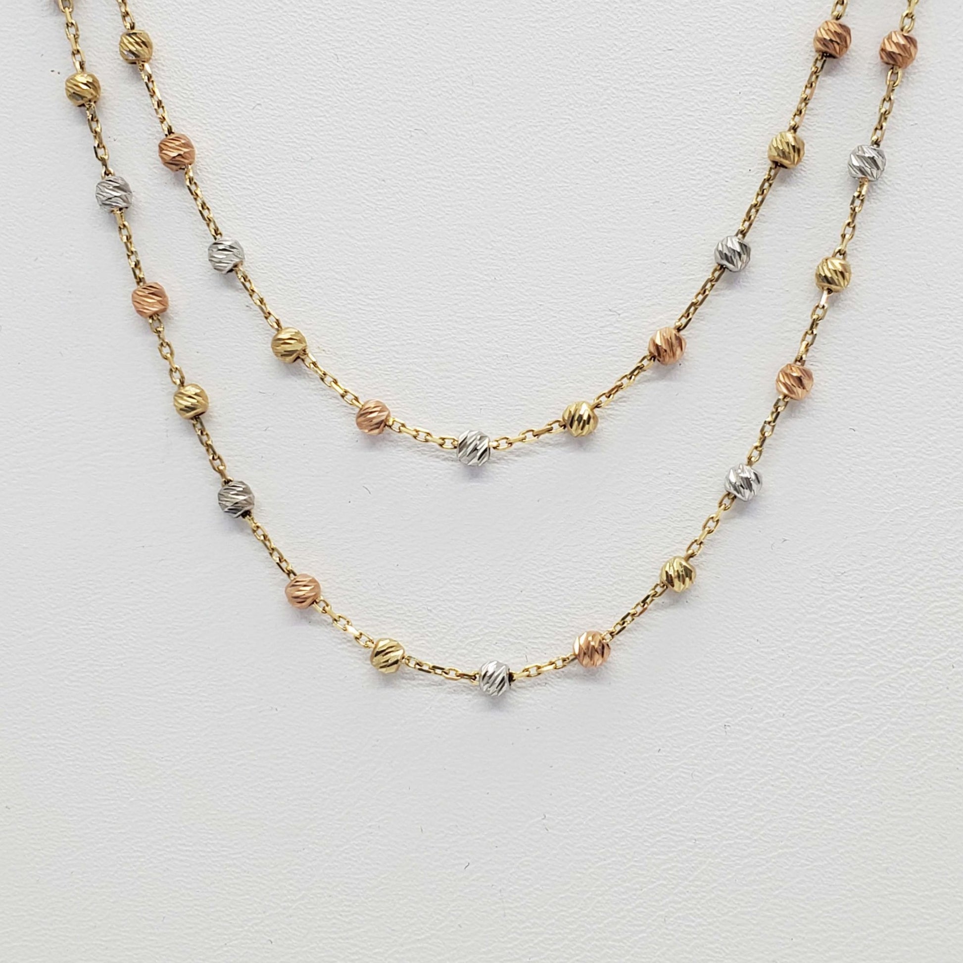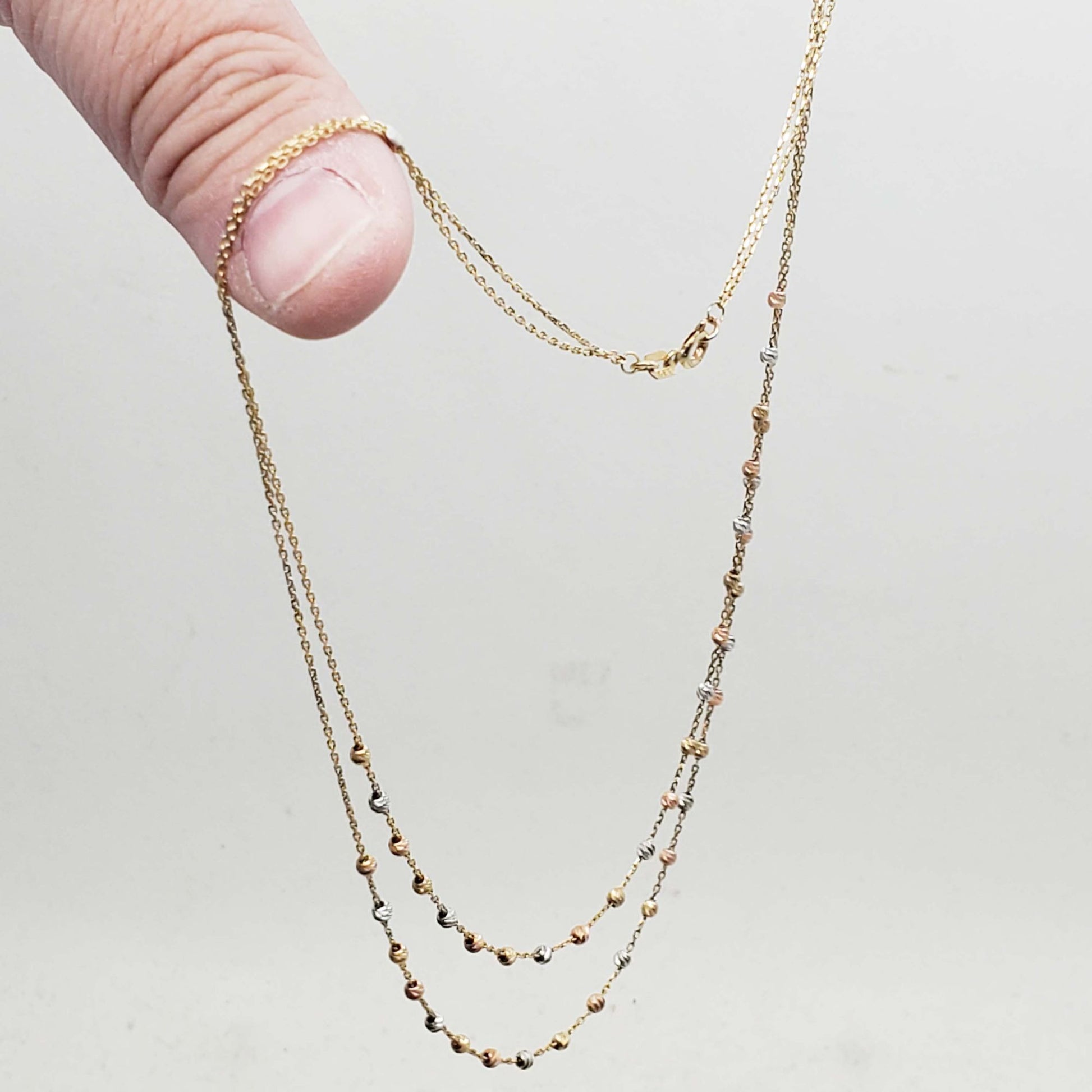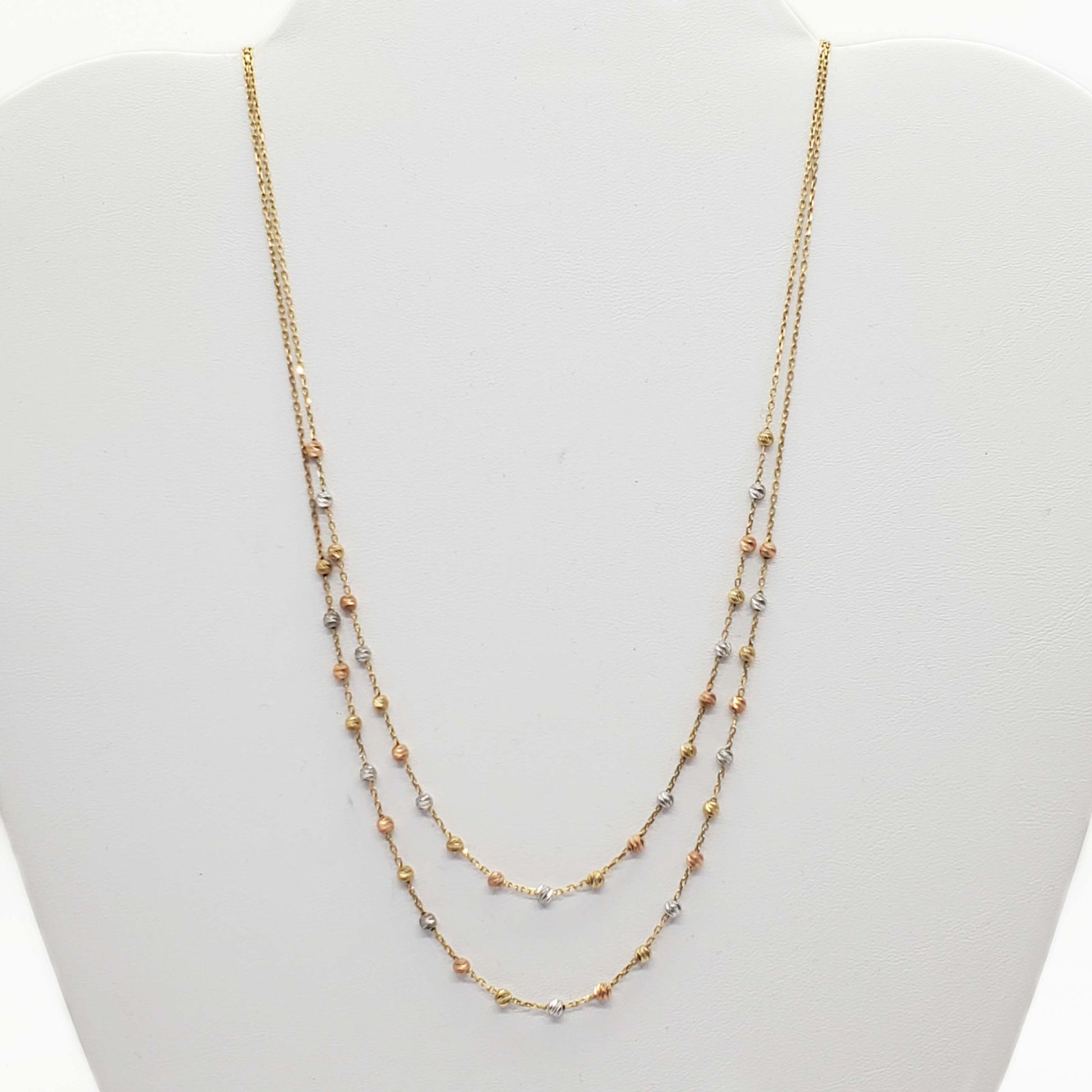 Tri-Color Bead Double Layer Chain Necklace 14k Yellow White Rose Gold