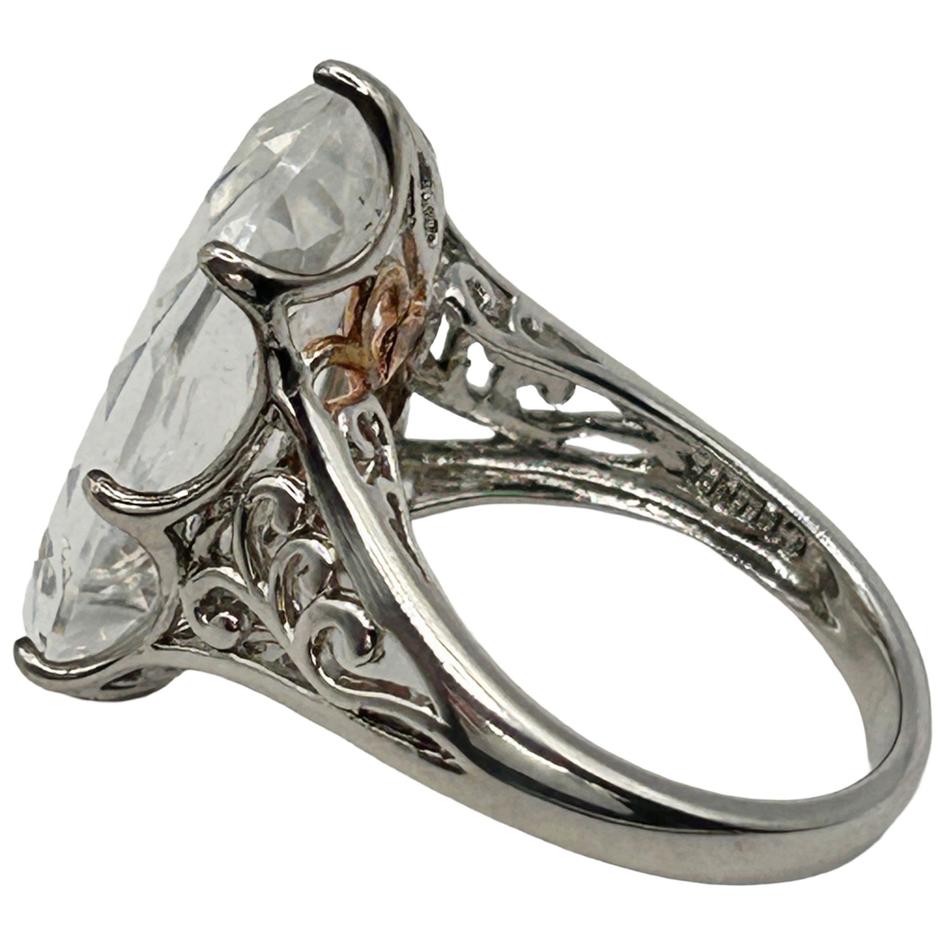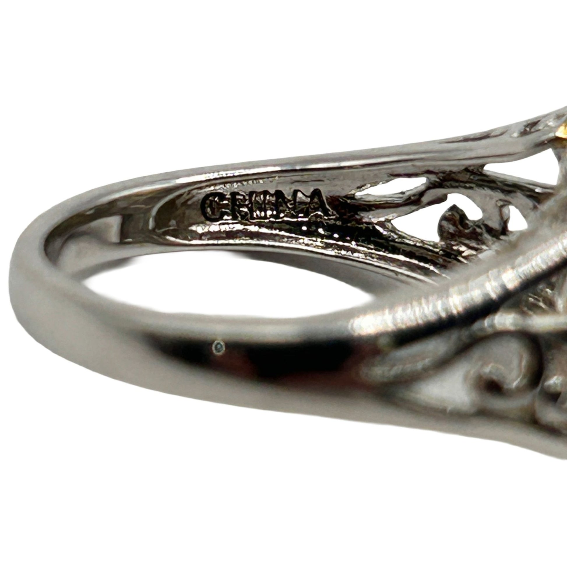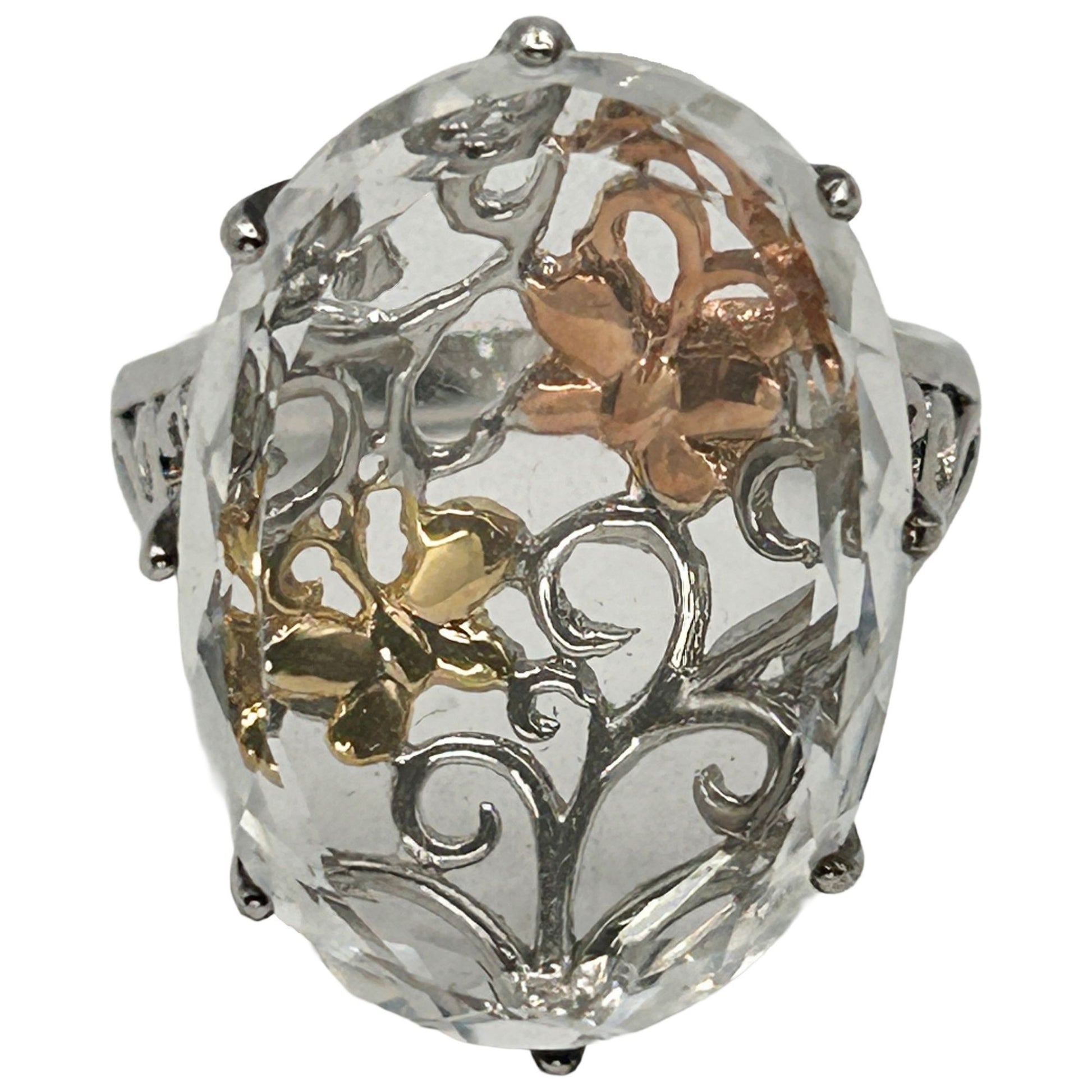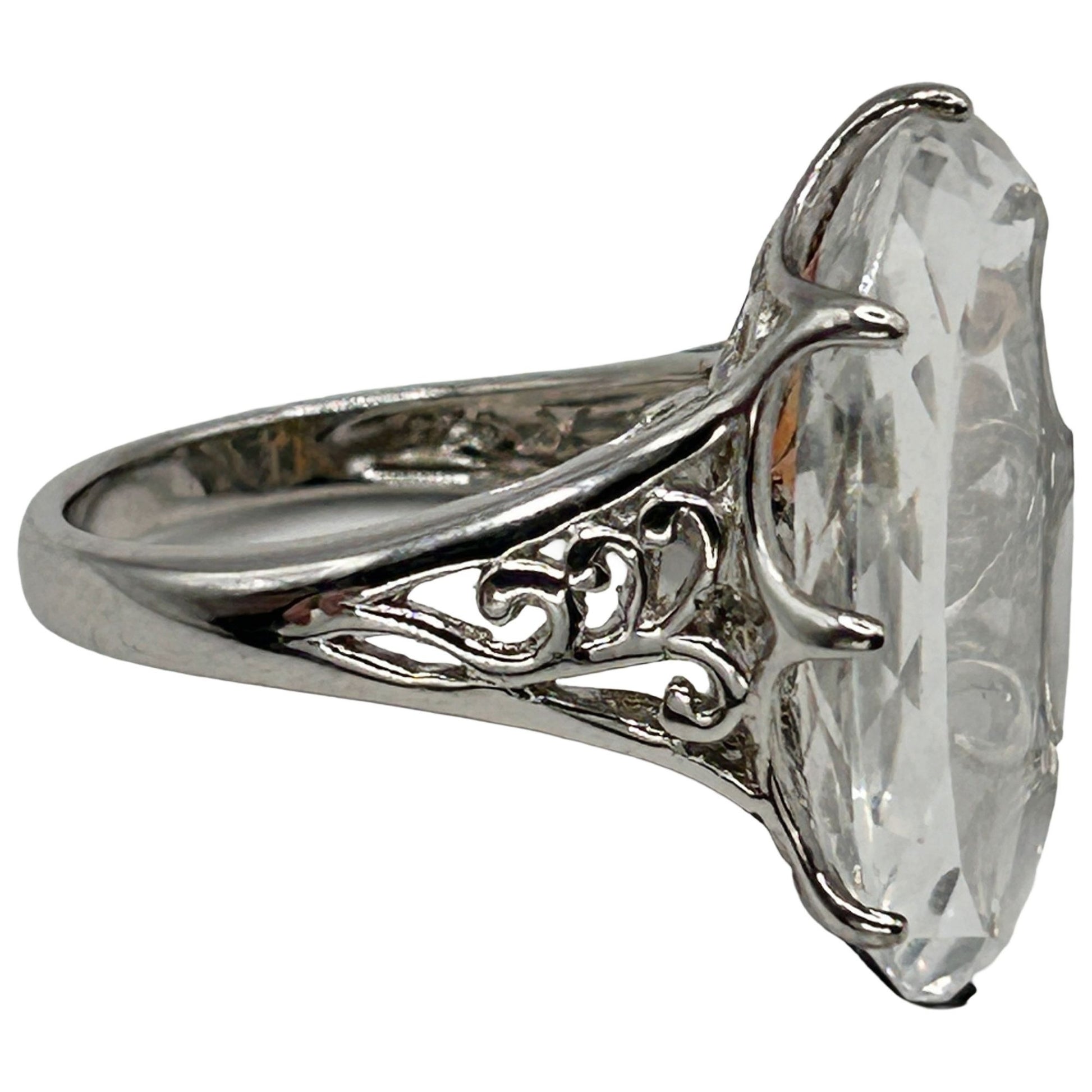 Vintage 925 Sterling Silver Butterfly Scroll Rock Crystal Quartz Ring Size 5.25