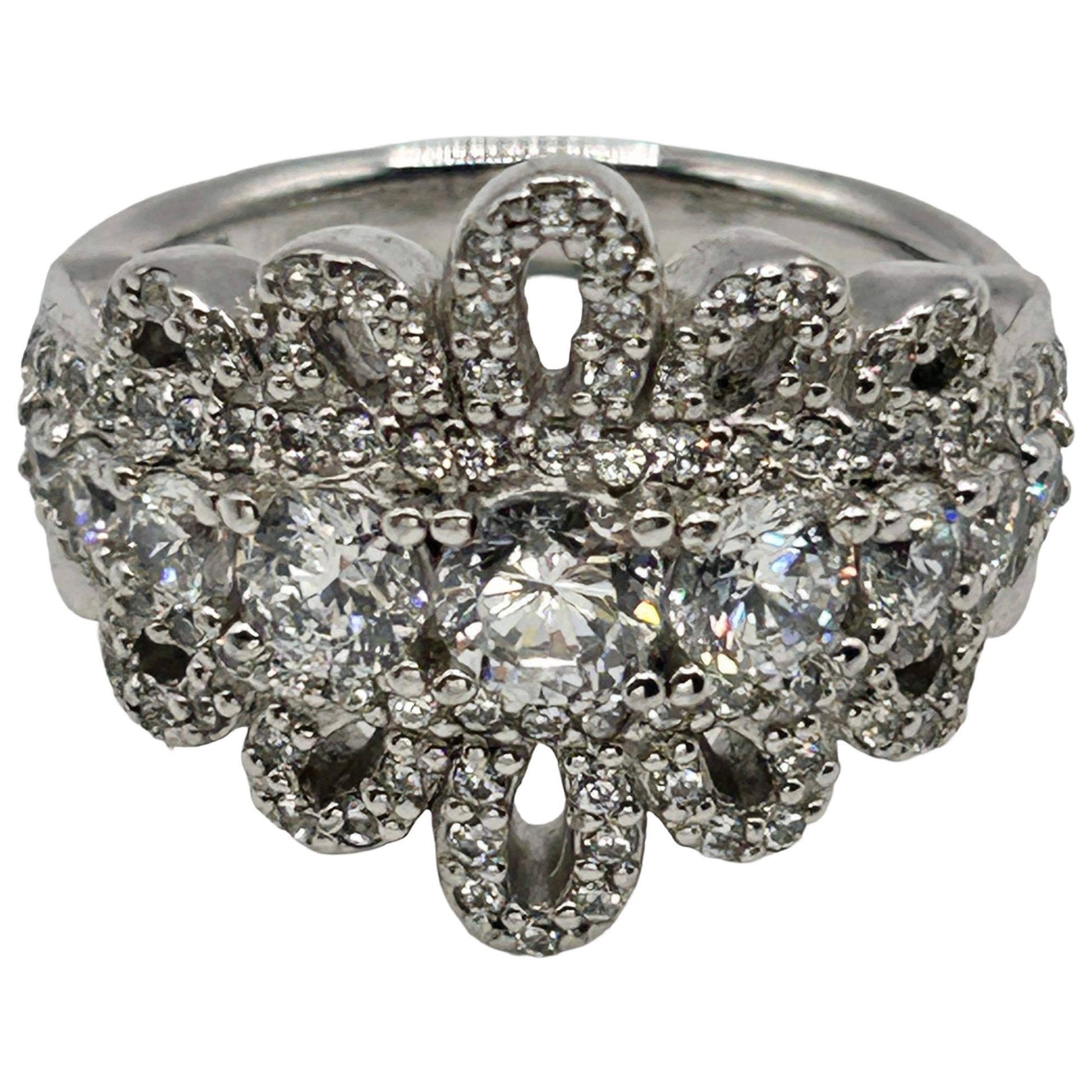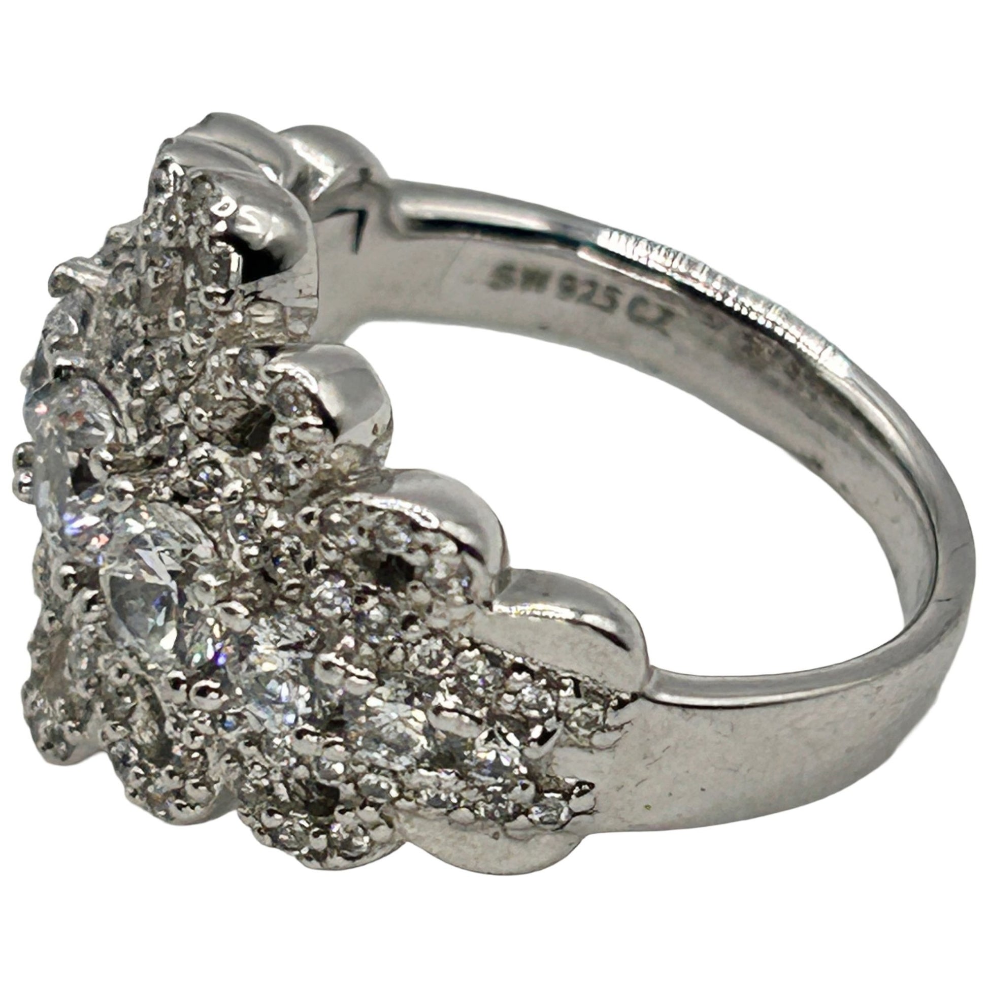 Vintage Designer SW 925 Sterling Silver CZ Pave Ring - Size 6.25