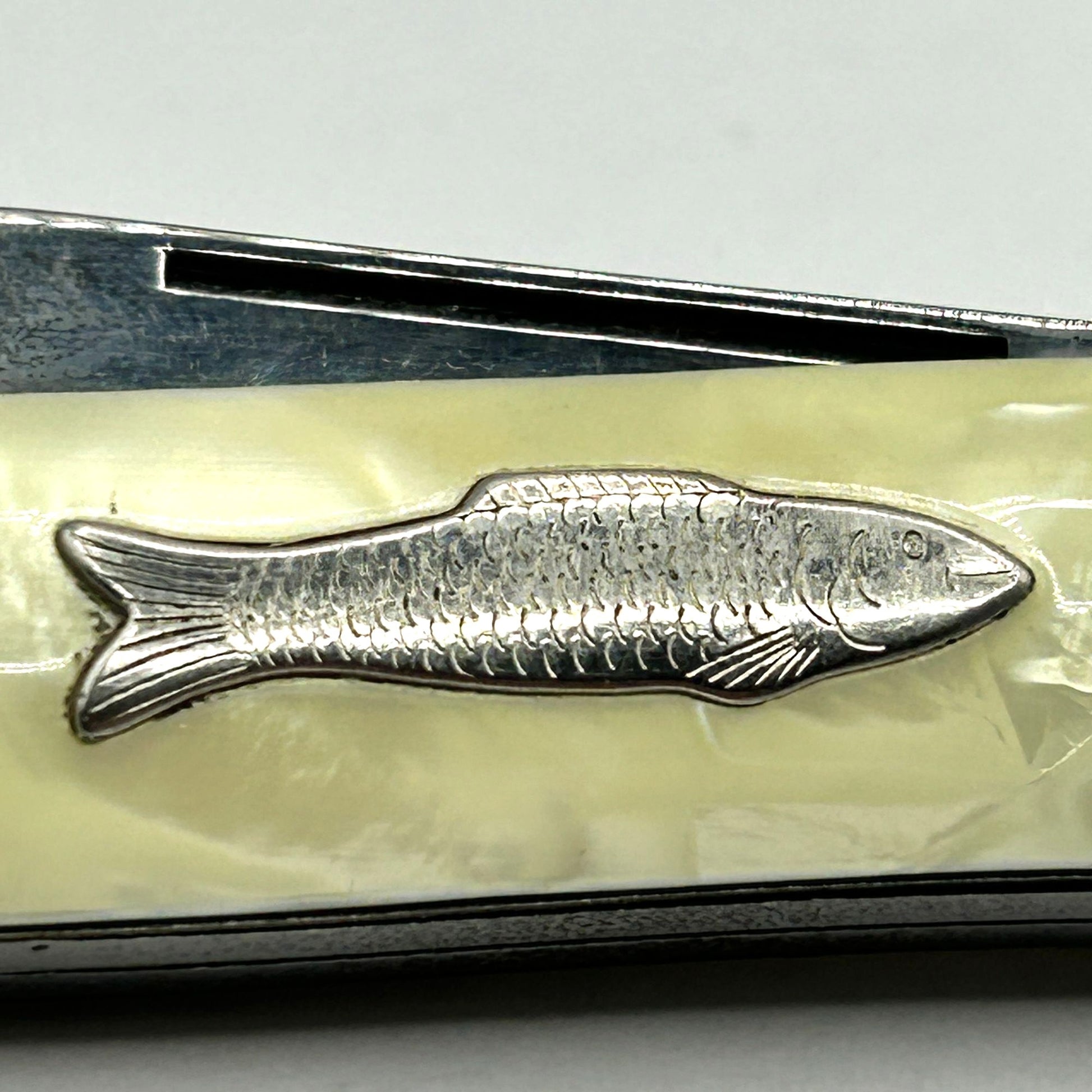 Vintage Imperial USA Pocket Folding Fishing Knife - Mother of Pearl, Fish Handle